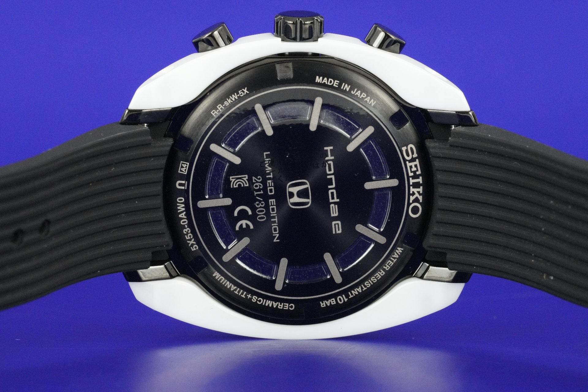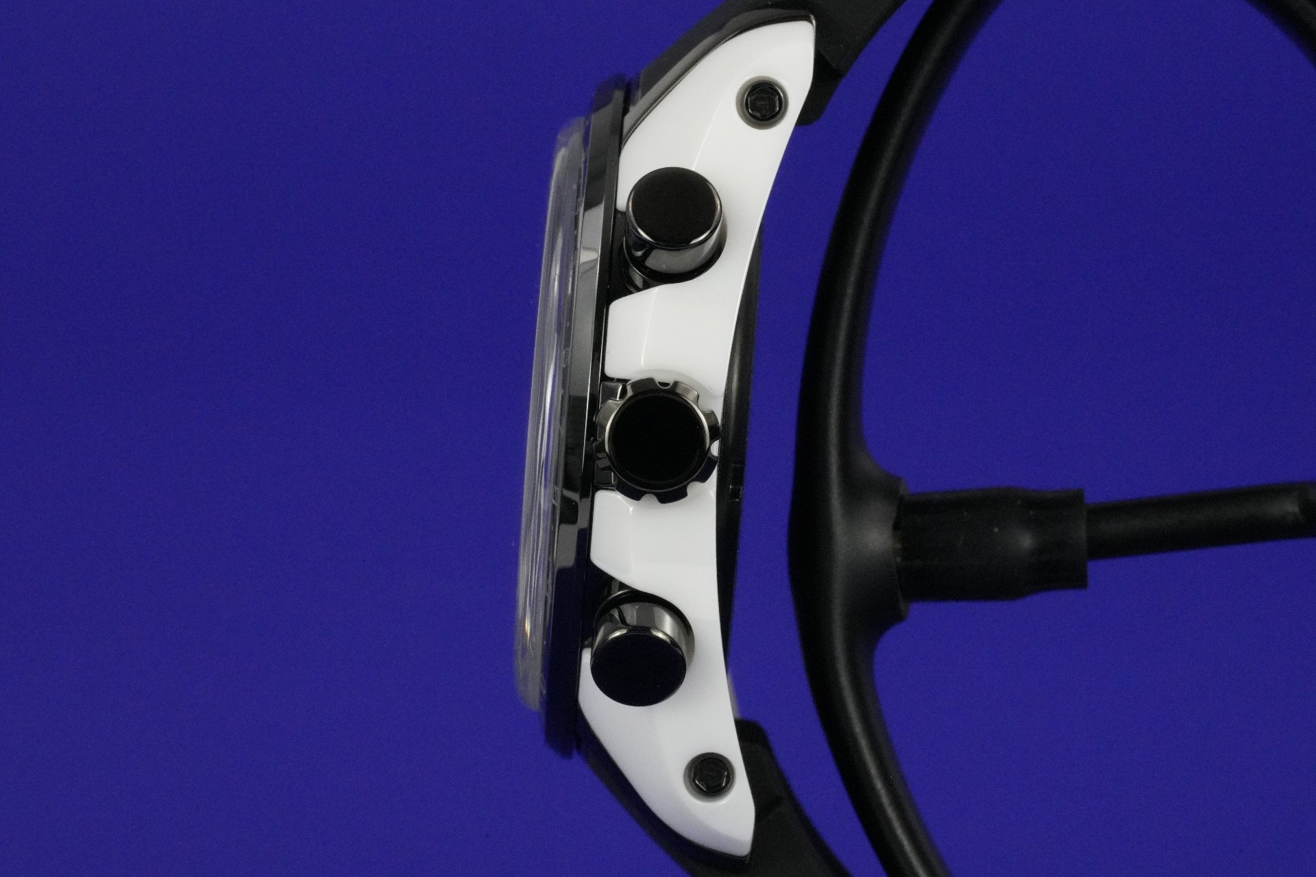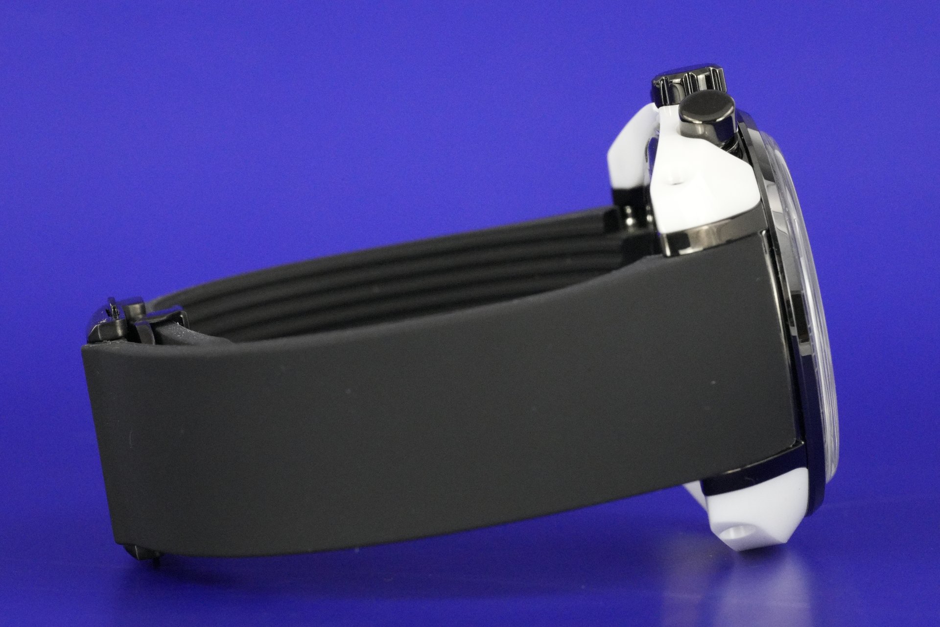 Découvrez la montre Seiko « Revolution Line HONDA E » (Réf. SBXC075), une édition conçue pour l’homme moderne. Son boîtier en céramique, d’un diamètre de 45.3mm et d’une épaisseur de 13.9mm, abrite un mouvement solaire fiable. Le bracelet en caoutchouc noir, original, est complété par une boucle déployante également originale, assurant un confort et un maintien parfaits. Cette pièce, en très bon état général et datant de 2022, est étanche jusqu’à 10 ATM. Livrée complète, elle est accompagnée d’une garantie de 12 mois.