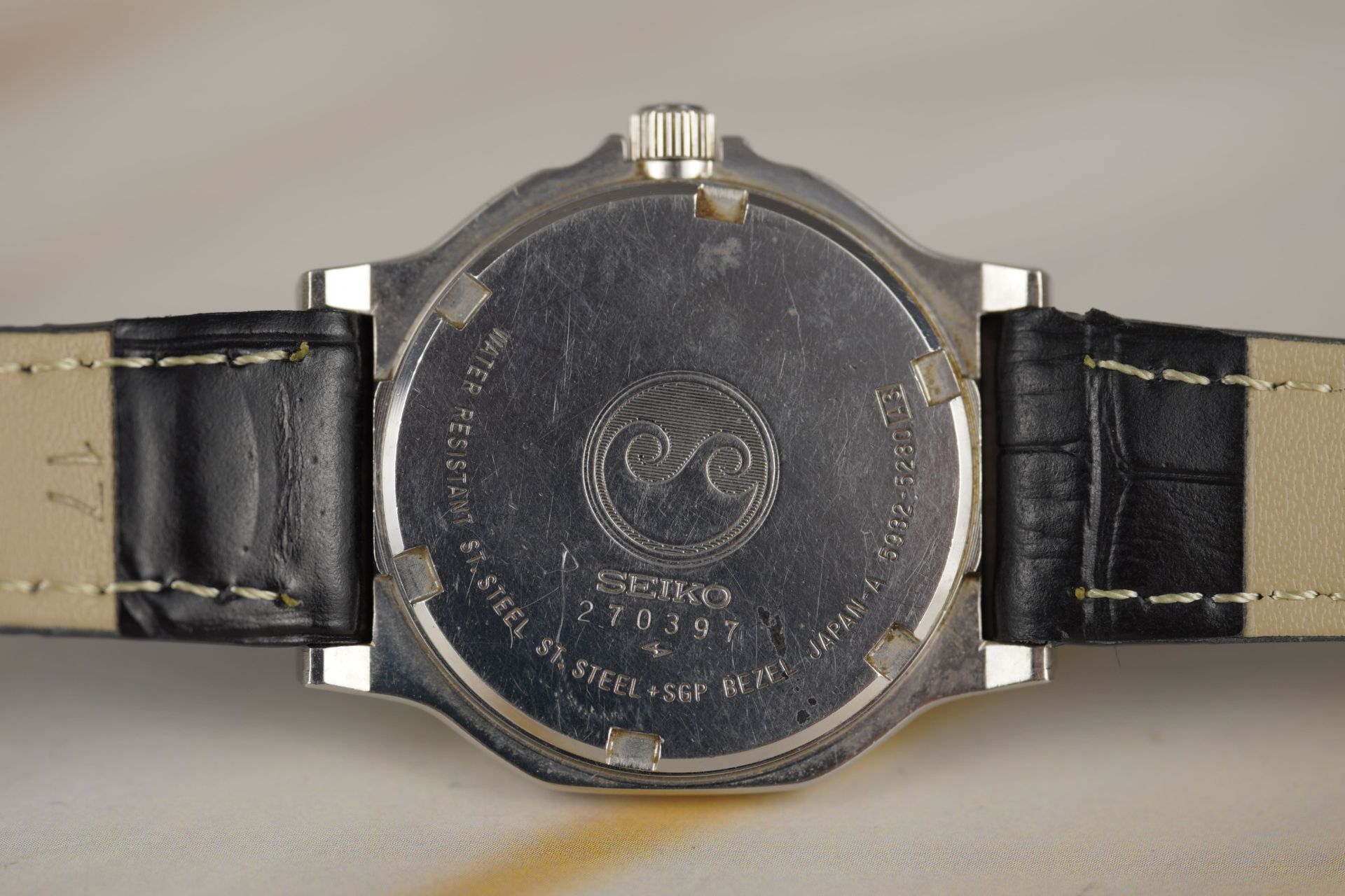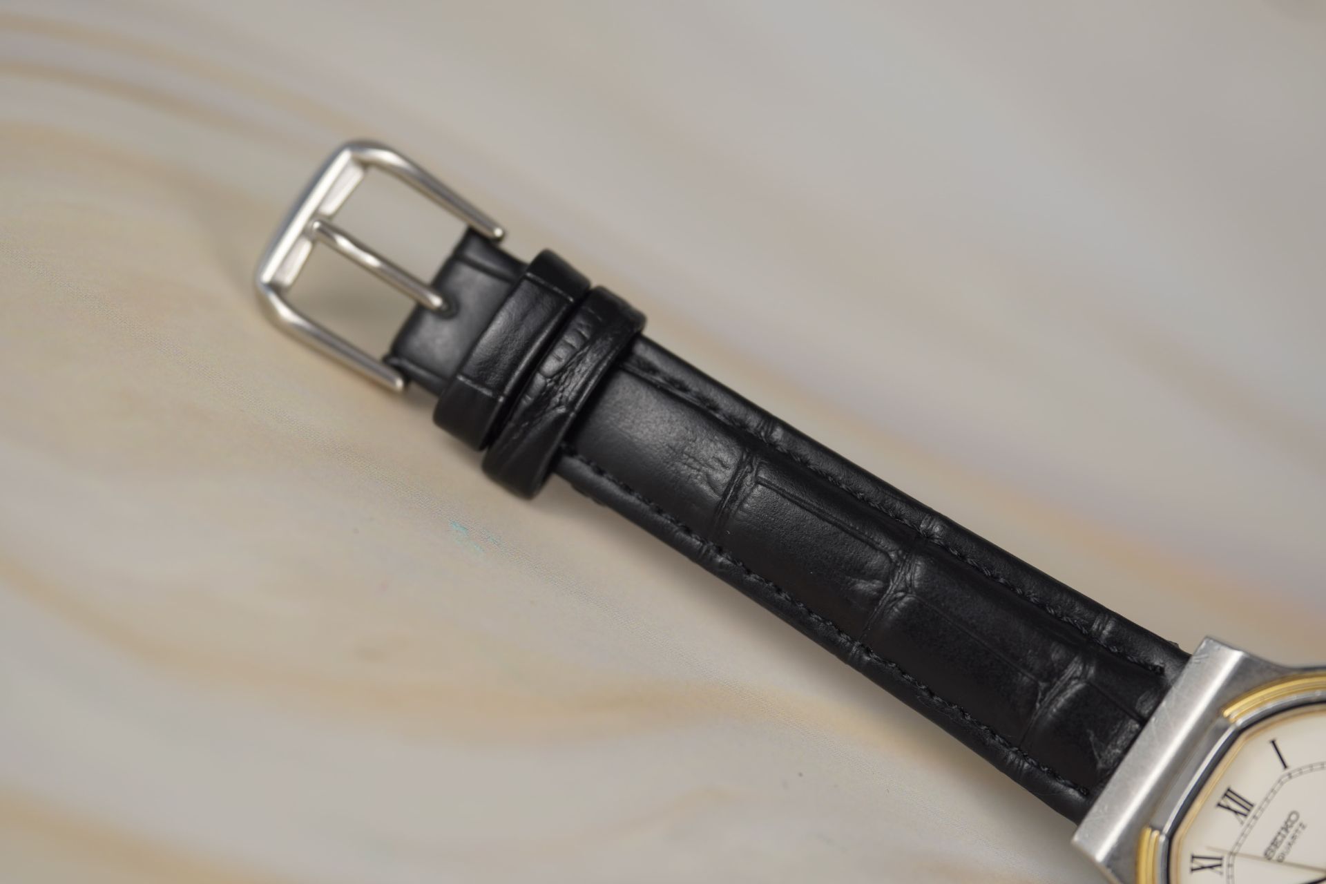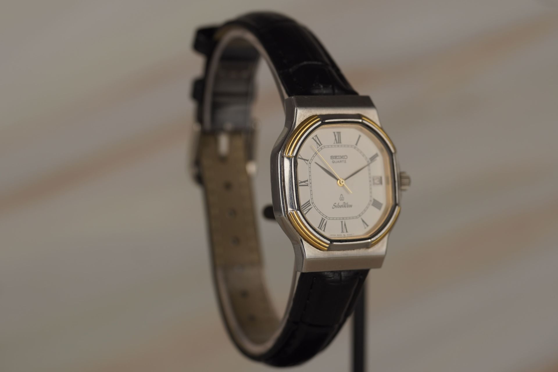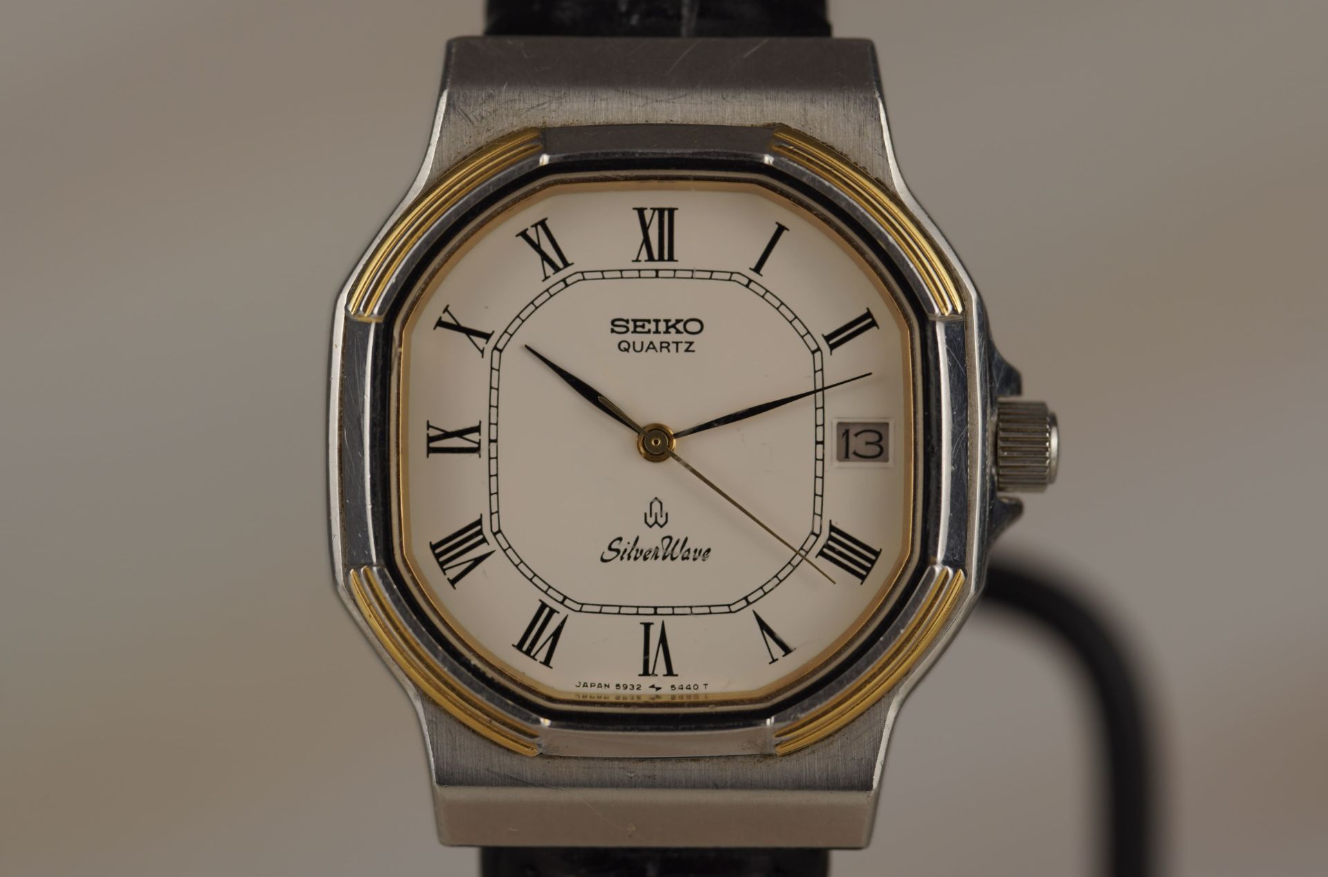 Découvrez cette montre Seiko Silver Wave, référence commerciale 5932-5280, une pièce unisexe de l’année 1982. Ce modèle vintage est animé par un mouvement à Quartz précis. Son boîtier en acier, mesurant 35 mm de diamètre pour une épaisseur de 7.9 mm, offre une discrète élégance. Le bracelet en cuir noir, non-original, est assorti à une boucle ardillon, également non-originale. Cette Seiko assure une étanchéité de 3 ATM, en faisant un accessoire fiable au quotidien. Cette pièce est garantie 12 mois.