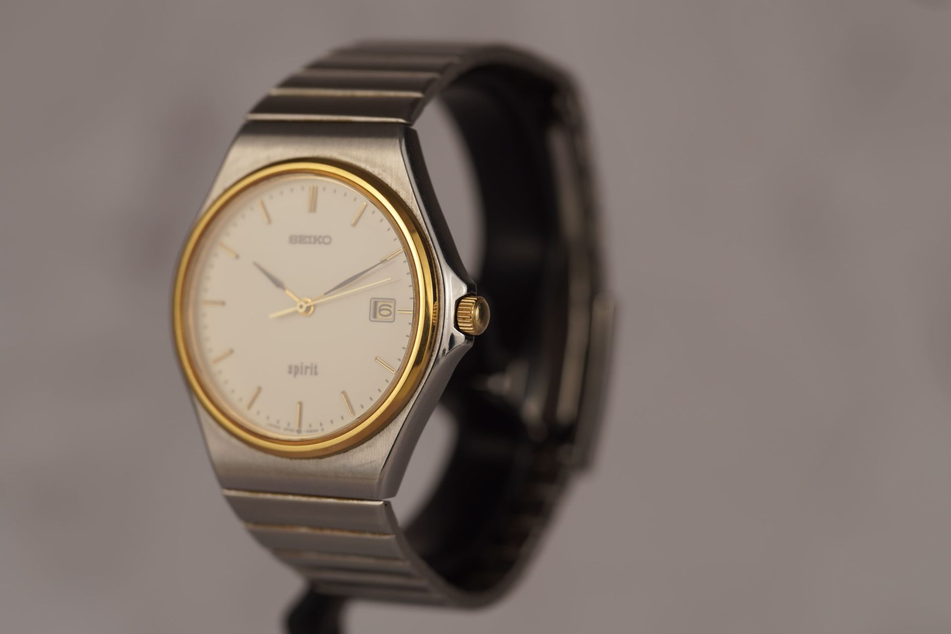 Découvrez la Seiko Spirit, un modèle intemporel de 1987, référence commerciale 5P32-6B30. Ce garde-temps masculin, doté d’un mouvement Quartz précis, arbore un boîtier en acier de 34 mm de diamètre et une épaisseur remarquablement fine de 6.9 mm. Son bracelet original en acier, complété par une boucle ardillon originale, assure un port élégant et confortable. Avec une étanchéité de 10 ATM, cette pièce allie fonctionnalité et esthétique classique. Livrée seule, elle bénéficie d’une garantie de 12 mois.
