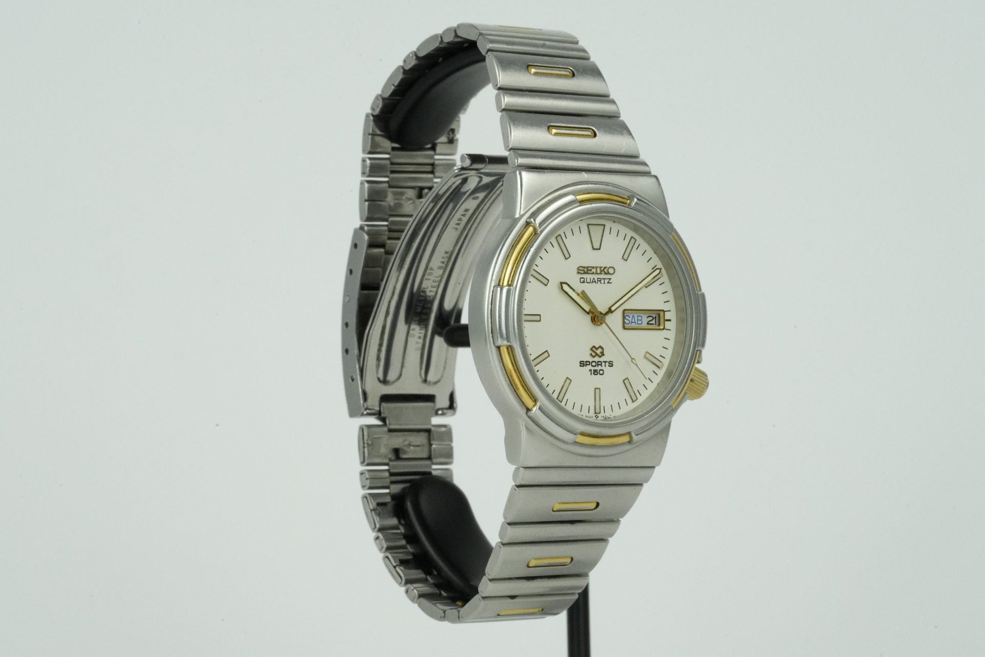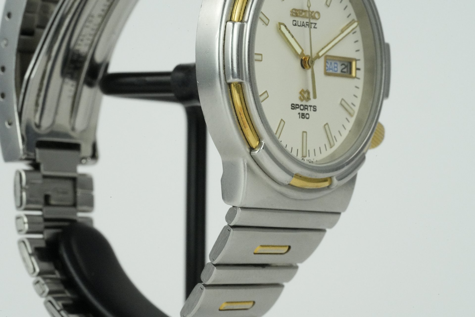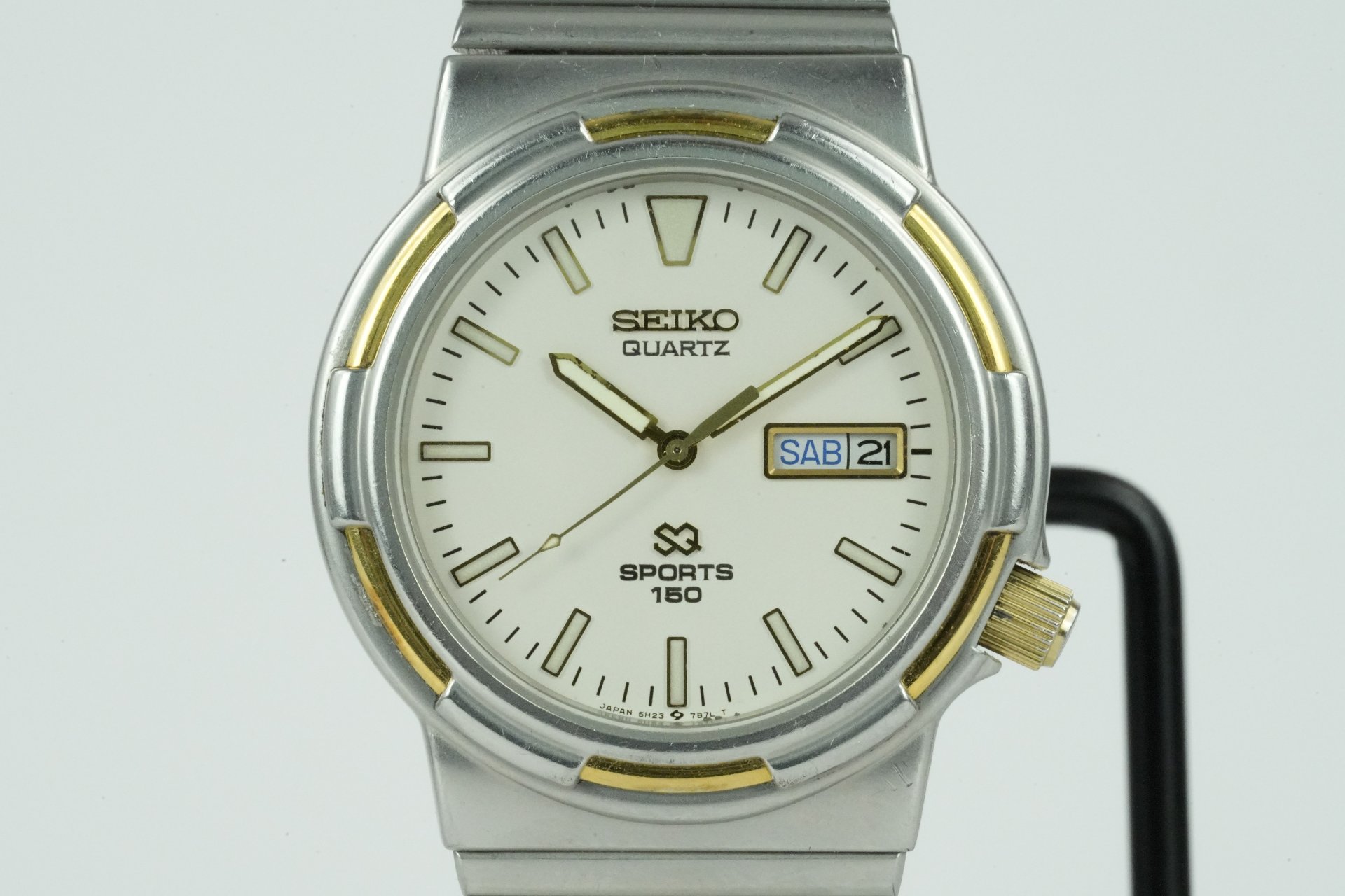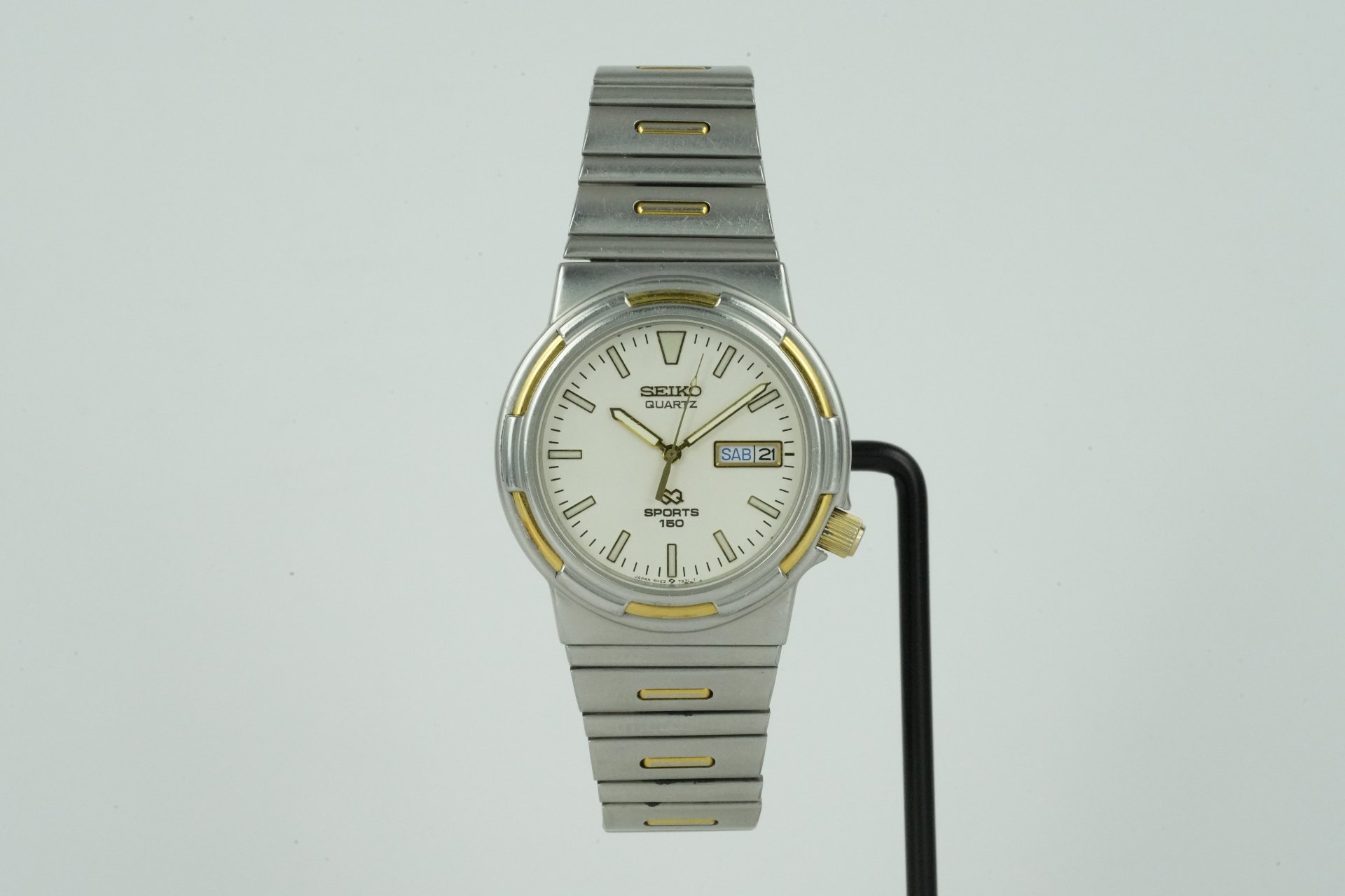 Découvrez la Seiko « SQ » Sports 150, référence 5H23-7B40, une montre unisexe au design intemporel. Son boîtier en acier de 37 mm de diamètre et 8,2 mm d’épaisseur abrite un mouvement à Quartz d’une fiabilité éprouvée. Le bracelet original en acier bicolore est sécurisé par une boucle déployante originale, complétant ainsi son allure élégante. Ce modèle est livré seul et bénéficie d’une garantie de 12 mois. Son bon état général en fait un choix distingué pour les amateurs d’horlogerie.