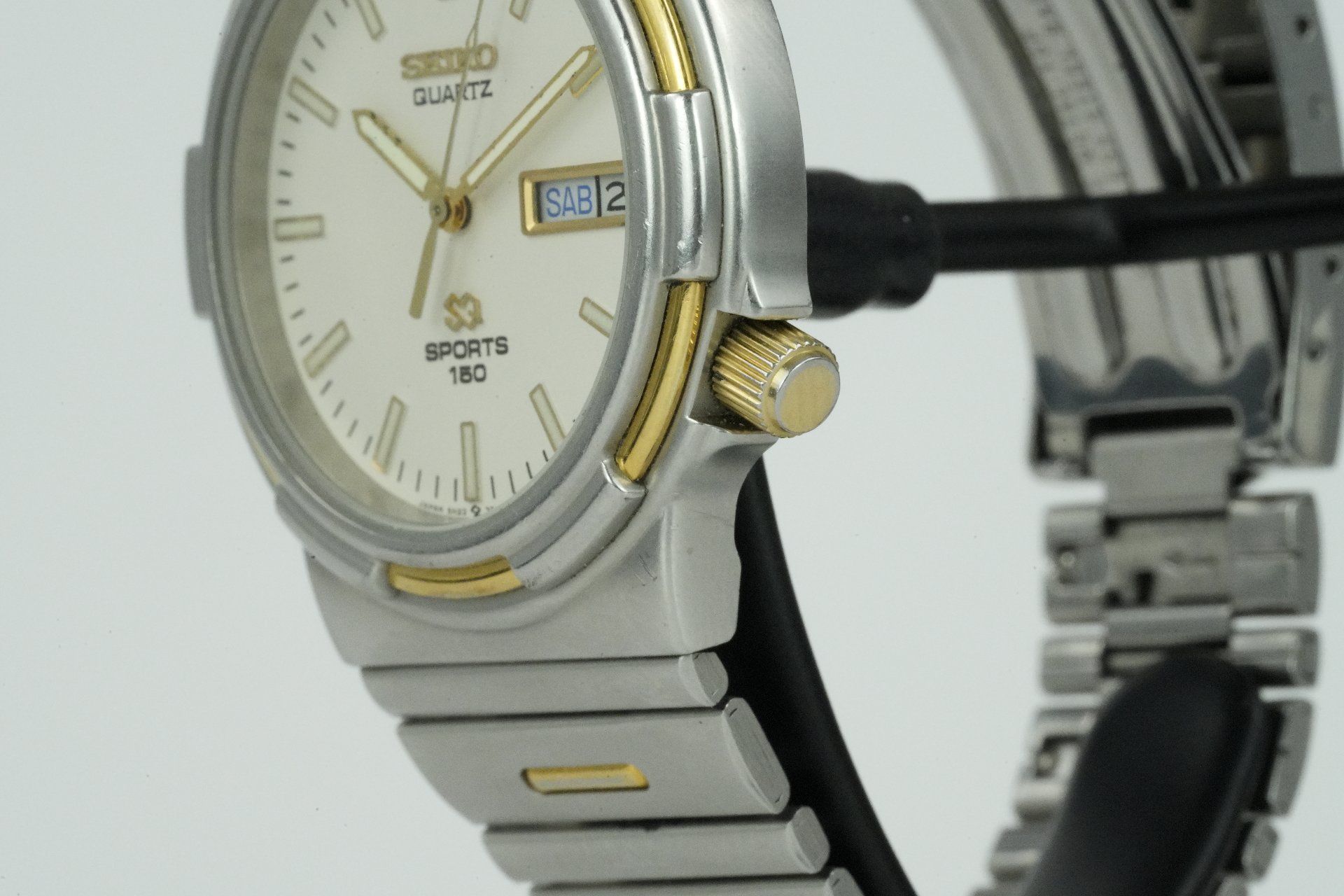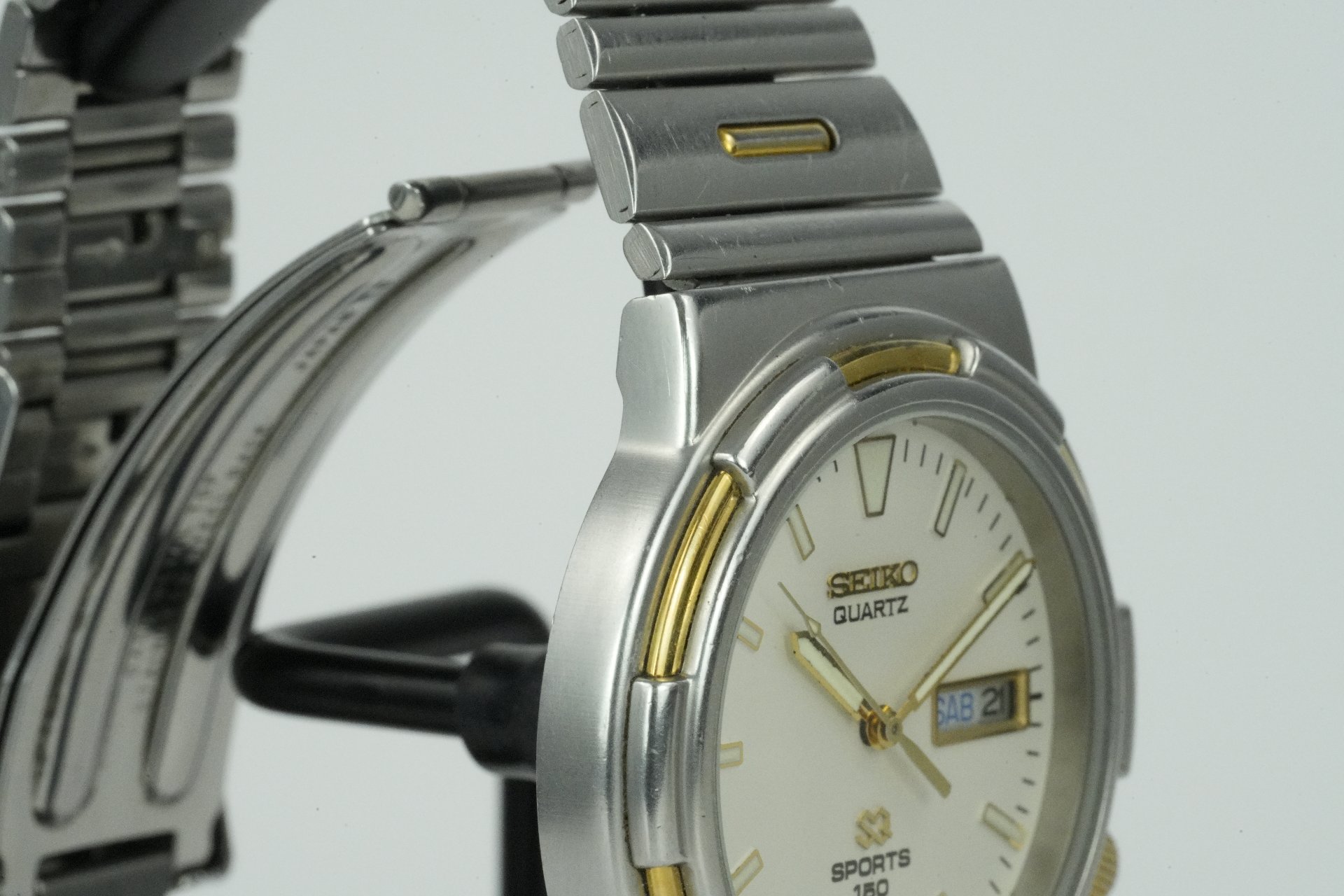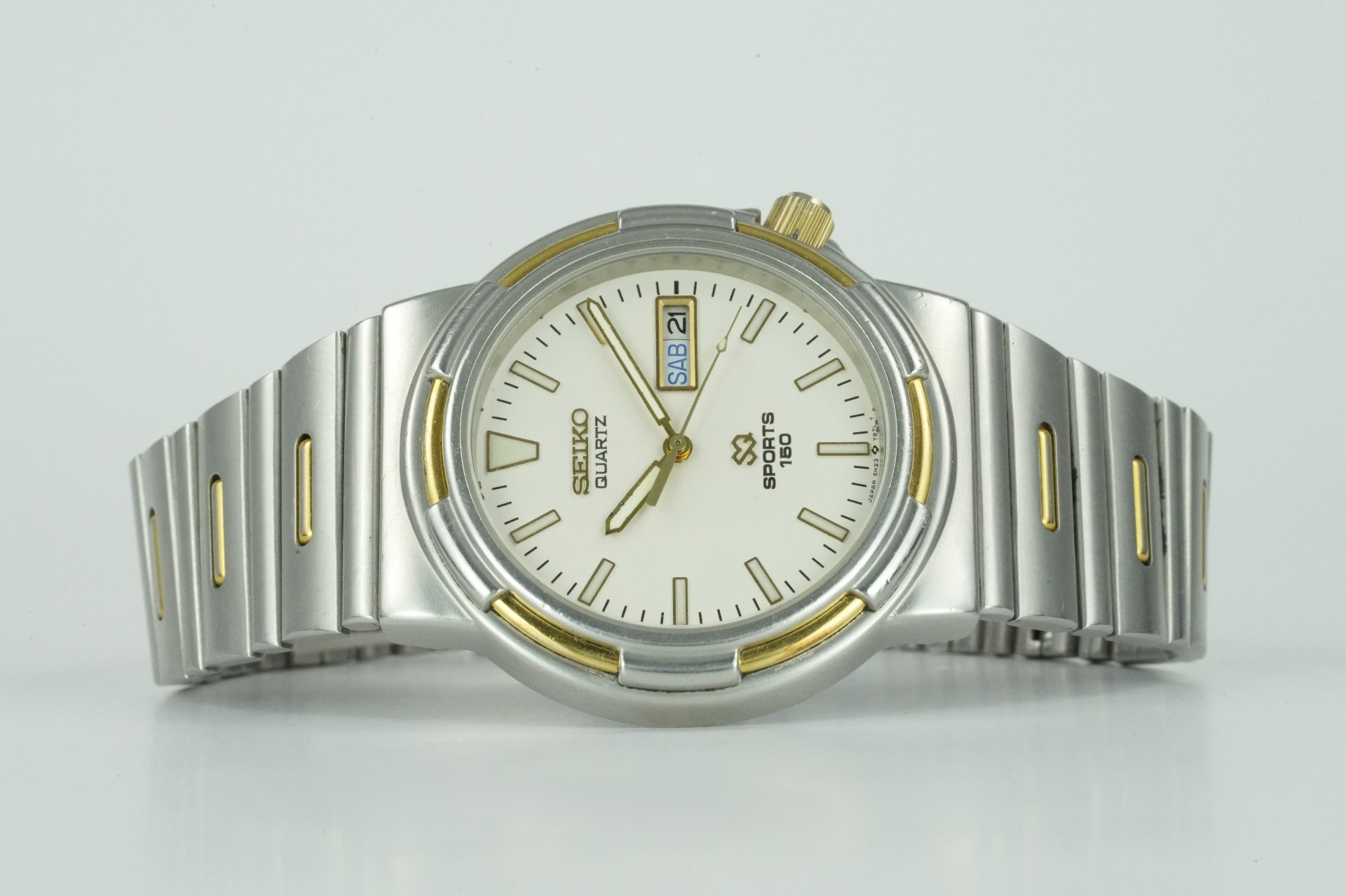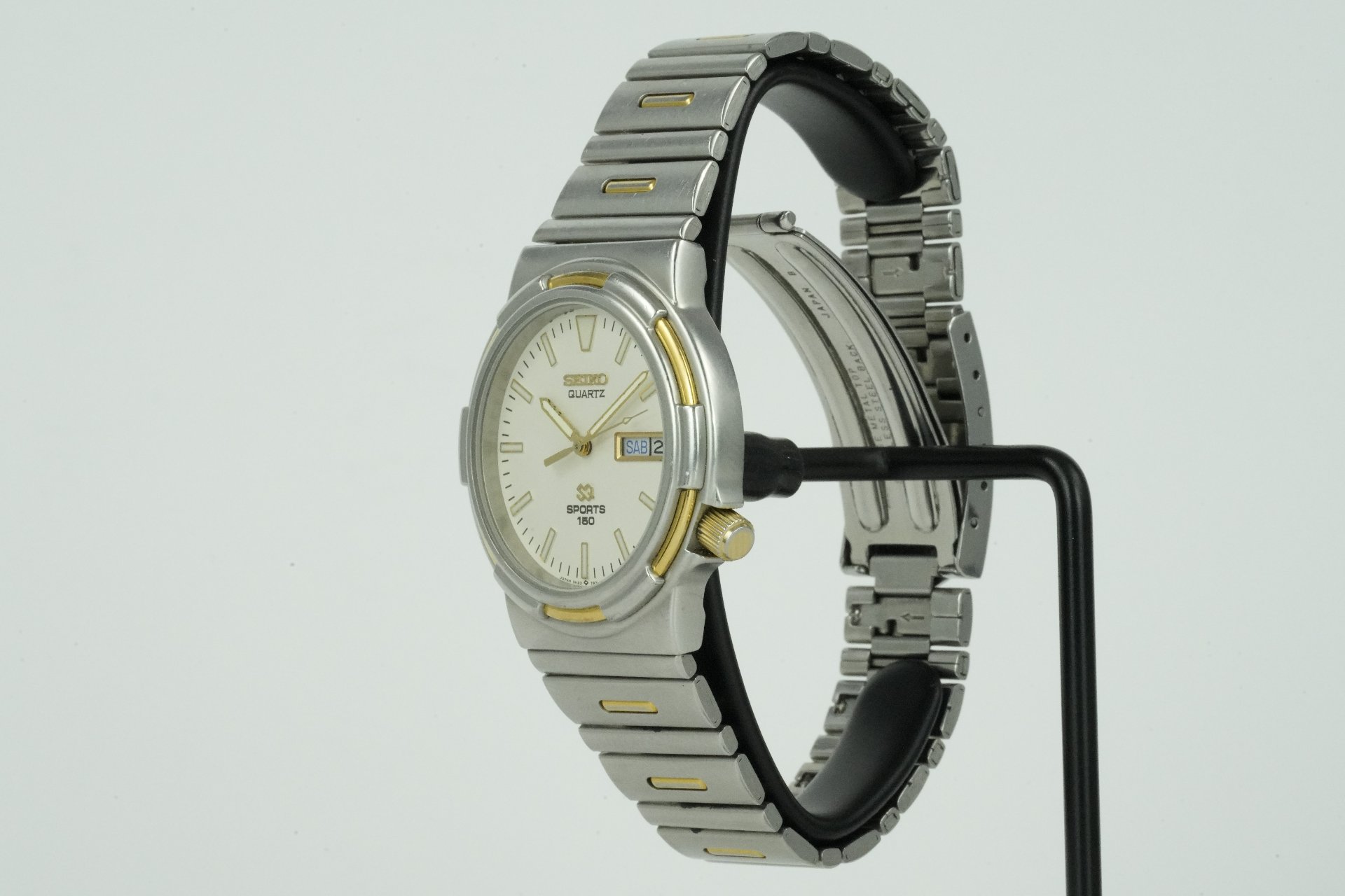 Découvrez la Seiko « SQ » Sports 150, référence 5H23-7B40, une montre unisexe au design intemporel. Son boîtier en acier de 37 mm de diamètre et 8,2 mm d’épaisseur abrite un mouvement à Quartz d’une fiabilité éprouvée. Le bracelet original en acier bicolore est sécurisé par une boucle déployante originale, complétant ainsi son allure élégante. Ce modèle est livré seul et bénéficie d’une garantie de 12 mois. Son bon état général en fait un choix distingué pour les amateurs d’horlogerie.