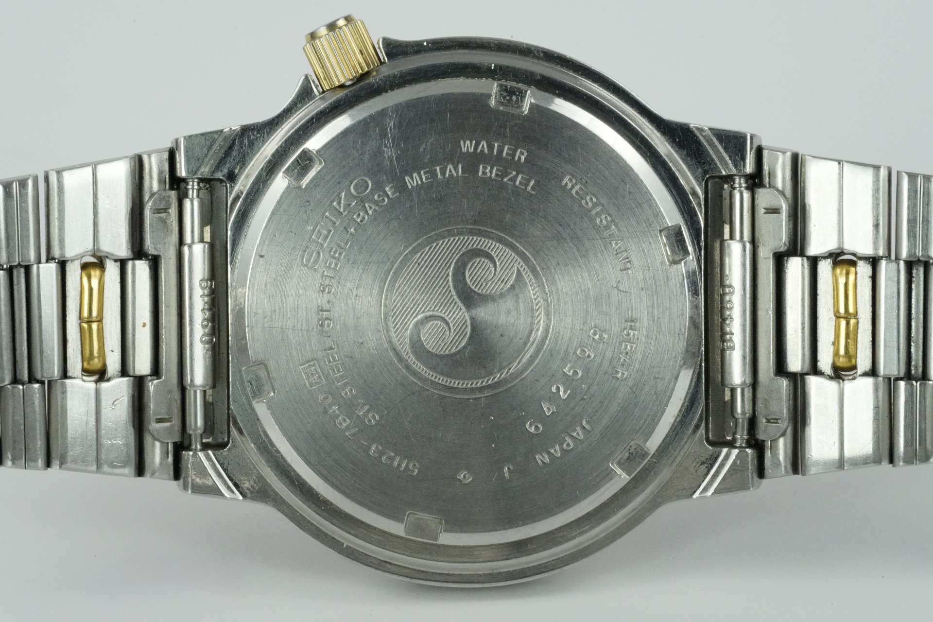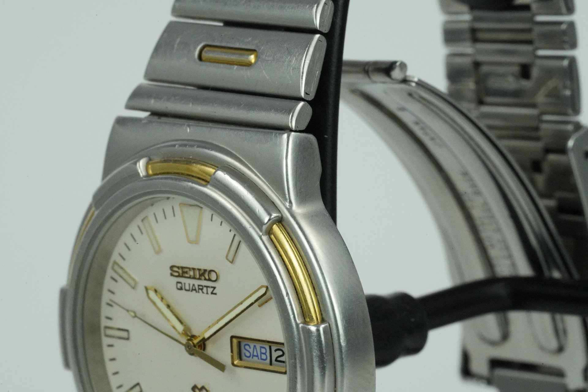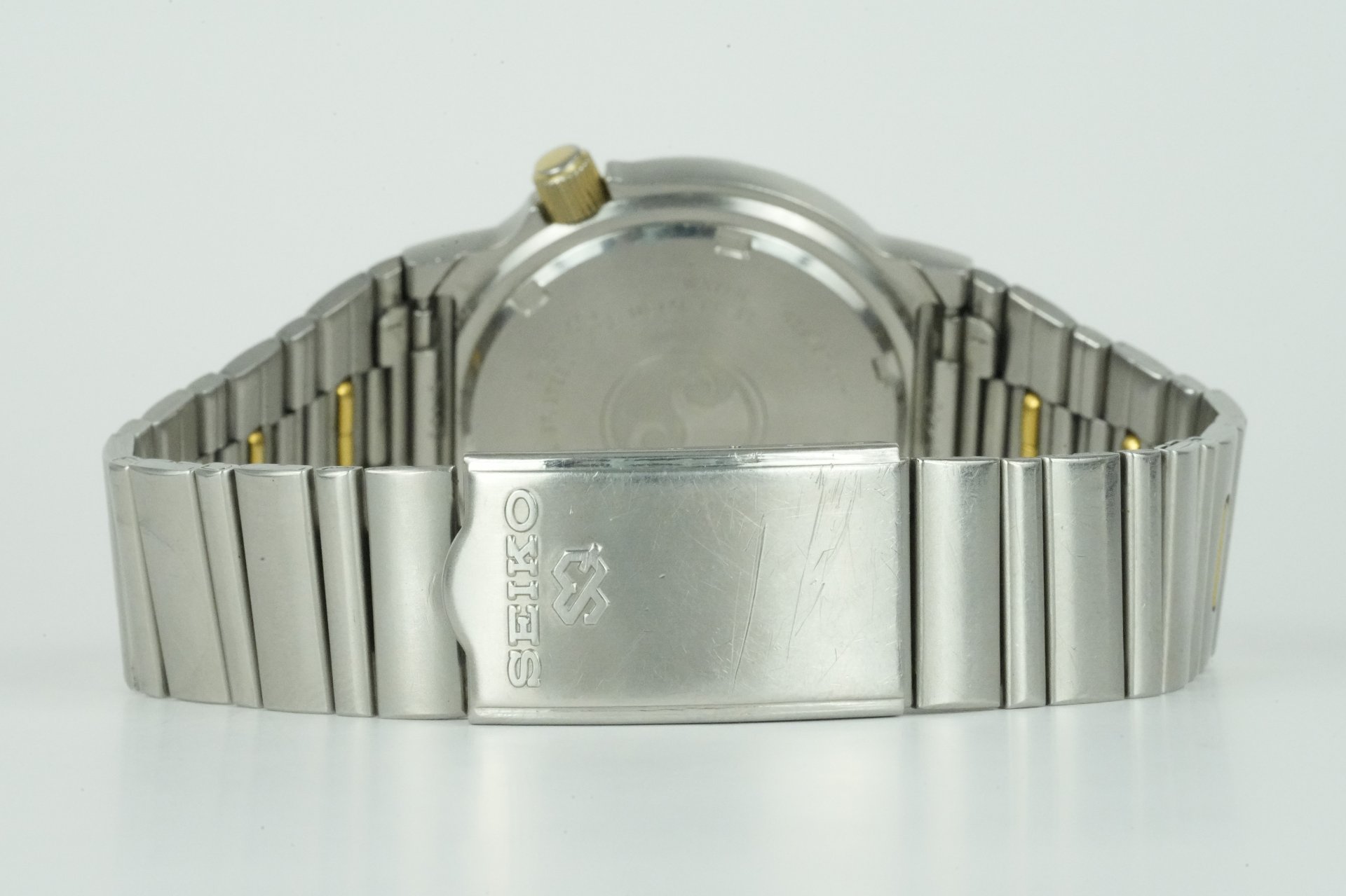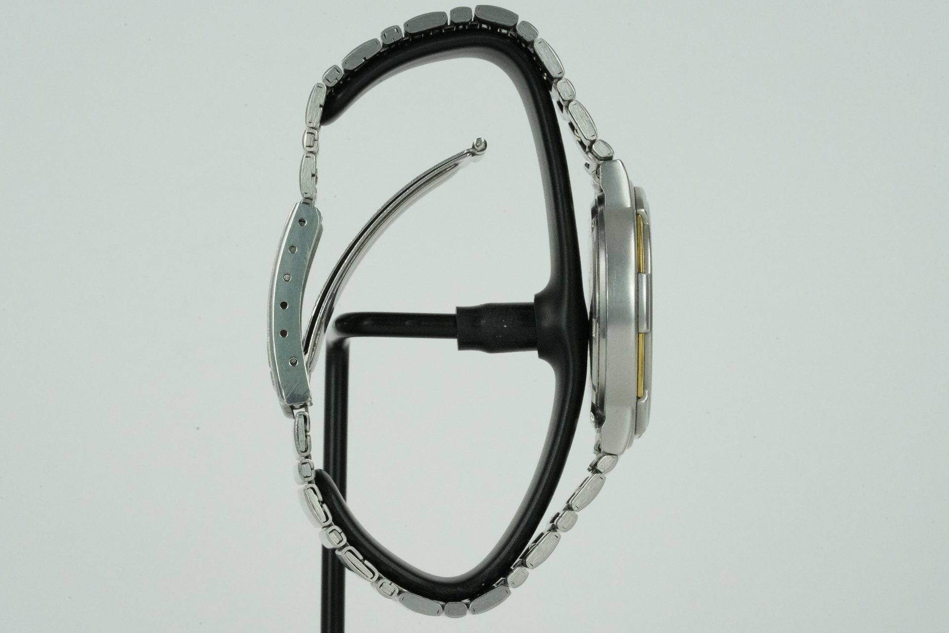 Découvrez la Seiko « SQ » Sports 150, référence 5H23-7B40, une montre unisexe au design intemporel. Son boîtier en acier de 37 mm de diamètre et 8,2 mm d’épaisseur abrite un mouvement à Quartz d’une fiabilité éprouvée. Le bracelet original en acier bicolore est sécurisé par une boucle déployante originale, complétant ainsi son allure élégante. Ce modèle est livré seul et bénéficie d’une garantie de 12 mois. Son bon état général en fait un choix distingué pour les amateurs d’horlogerie.