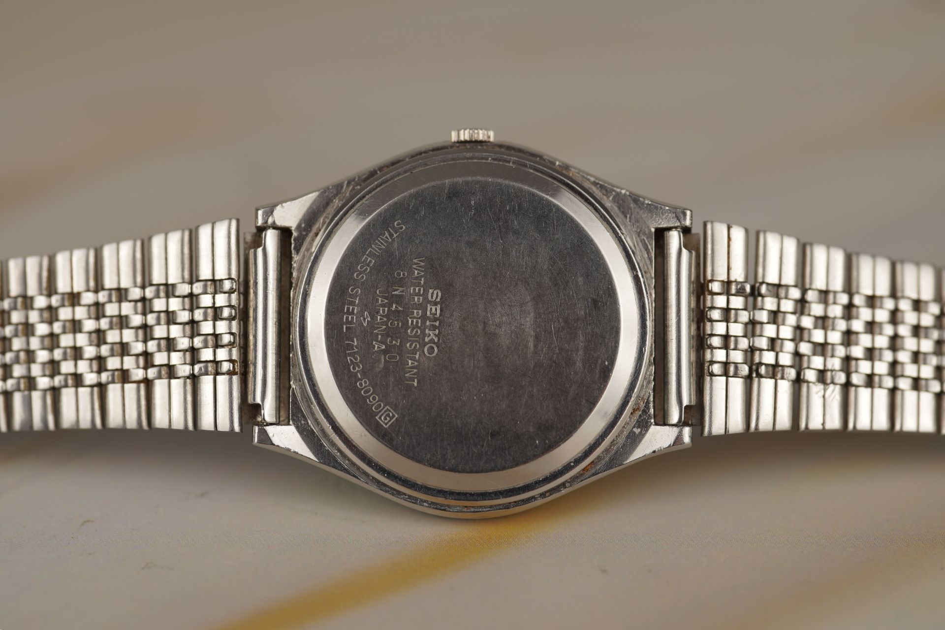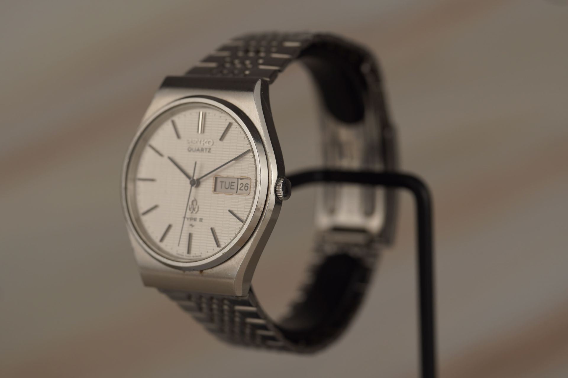 Découvrez la Seiko Type II Quartz (Réf. 7123-8090), une montre unisexe qui incarne l’élégance discrète et la précision horlogère des années 70. Son boîtier en acier de 35 mm de diamètre et de seulement 8.4 mm d’épaisseur abrite un mouvement Quartz fiable. Le cadran, d’une sobriété intemporelle, est protégé par un verre minéral. La montre est complétée par un bracelet en acier non-original, de couleur acier, fermé par une boucle plis également non-originale. Affichant un bon état général pour son année 1978, ce garde-temps offre une étanchéité de 3 ATM. Elle est livrée en montre seule et bénéficie d’une garantie de 12 mois.