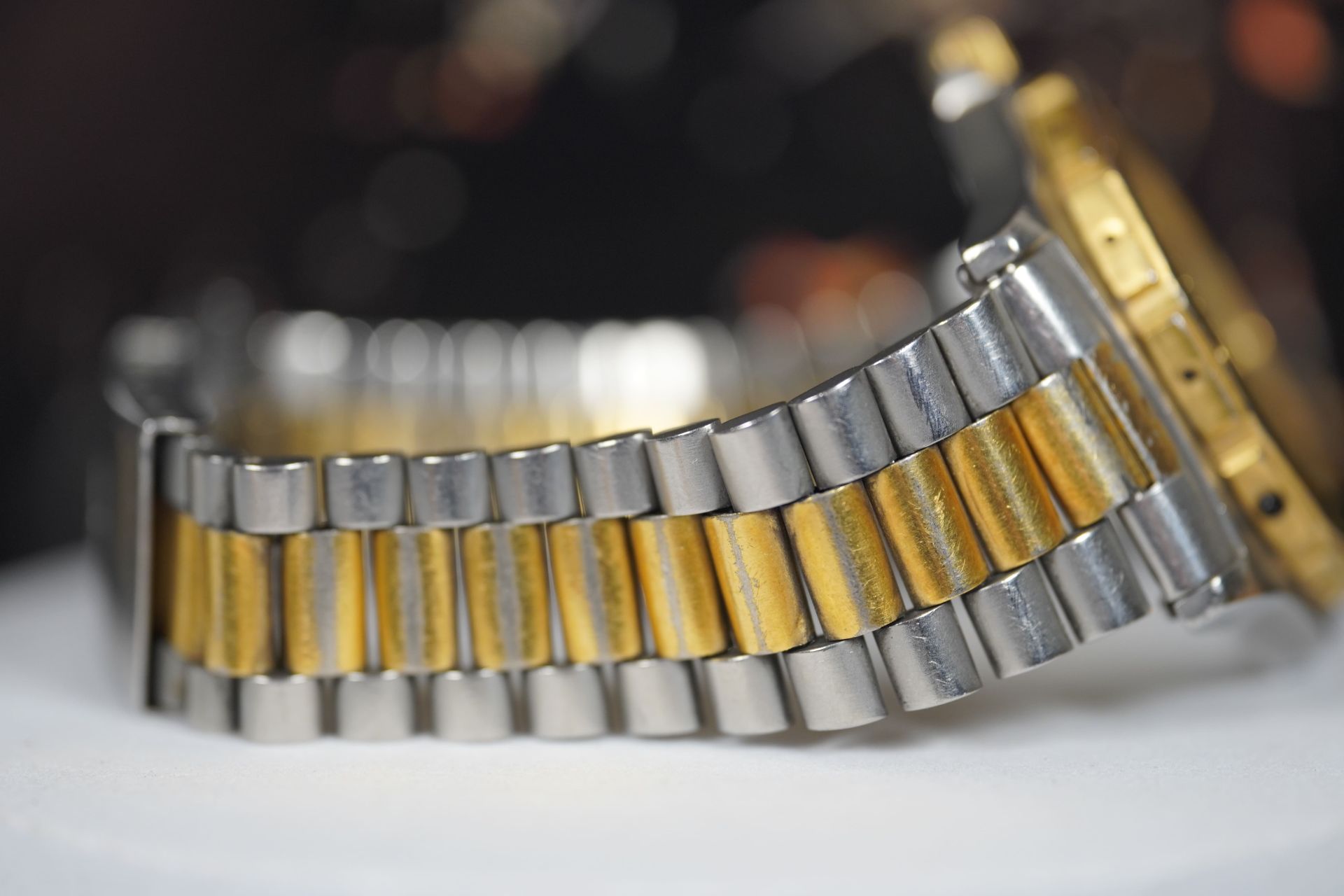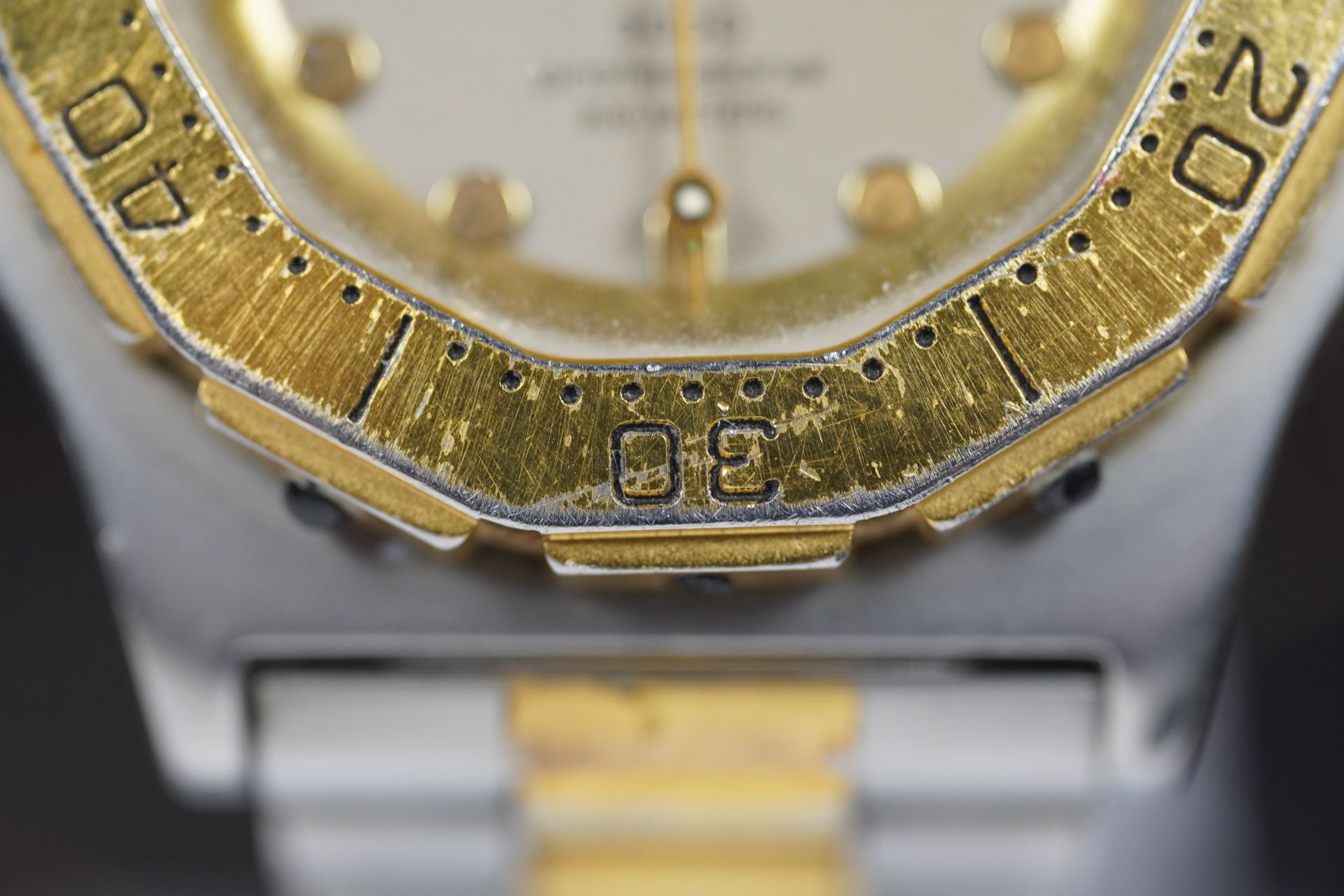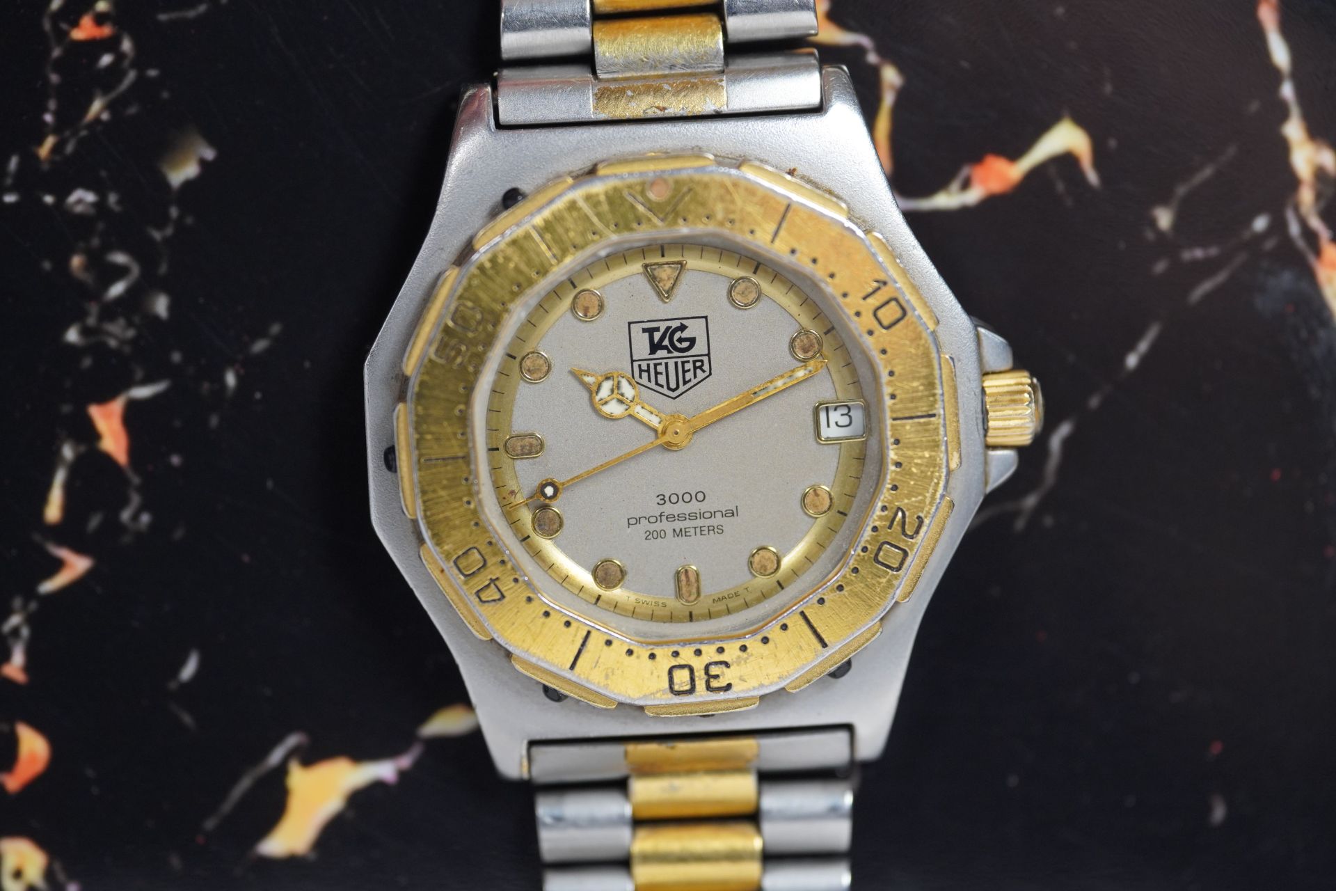 Découvrez l’élégance intemporelle de la TAG Heuer 3000 Series, référence commerciale 934.206, une pièce masculine emblématique. Son boîtier en acier de 38mm de diamètre et 9mm d’épaisseur, associé à un bracelet original en acier bicolore doré et acier, confère à cette montre un charme distinctif. Le mouvement à Quartz garantit une précision fiable. Dotée d’une étanchéité de 20 ATM, elle allie robustesse et sophistication. La boucle déployante originale assure un maintien parfait au poignet. Cette montre, en bon état, est couverte par une garantie de 12 mois.