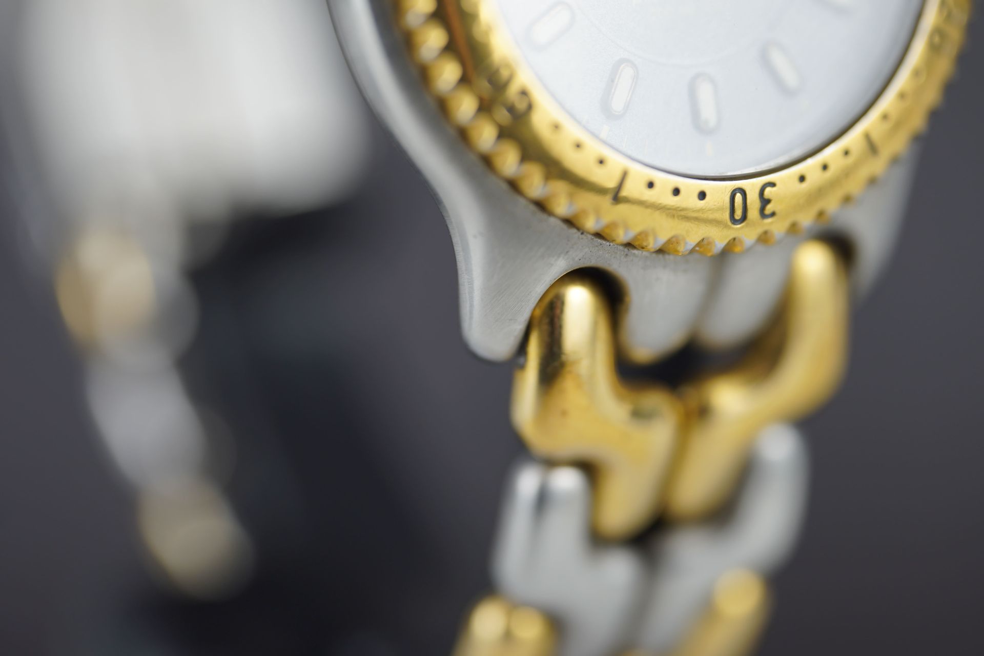 Découvrez l’élégance intemporelle de cette montre unisexe TAG Heuer Professional, référence commerciale WG1220-K0. Son boîtier en acier de 34 mm de diamètre et de 8.8 mm d’épaisseur abrite un mouvement à quartz précis, gage de fiabilité. Le bracelet original en acier, bicolore or et acier, se prolonge par une boucle déployante couverte également originale, assurant un porté confortable et sécurisé. Conçue pour l’action comme pour la ville, elle offre une étanchéité remarquable de 20 ATM. Ce modèle est livré montre seule et bénéficie d’une garantie de 12 mois.