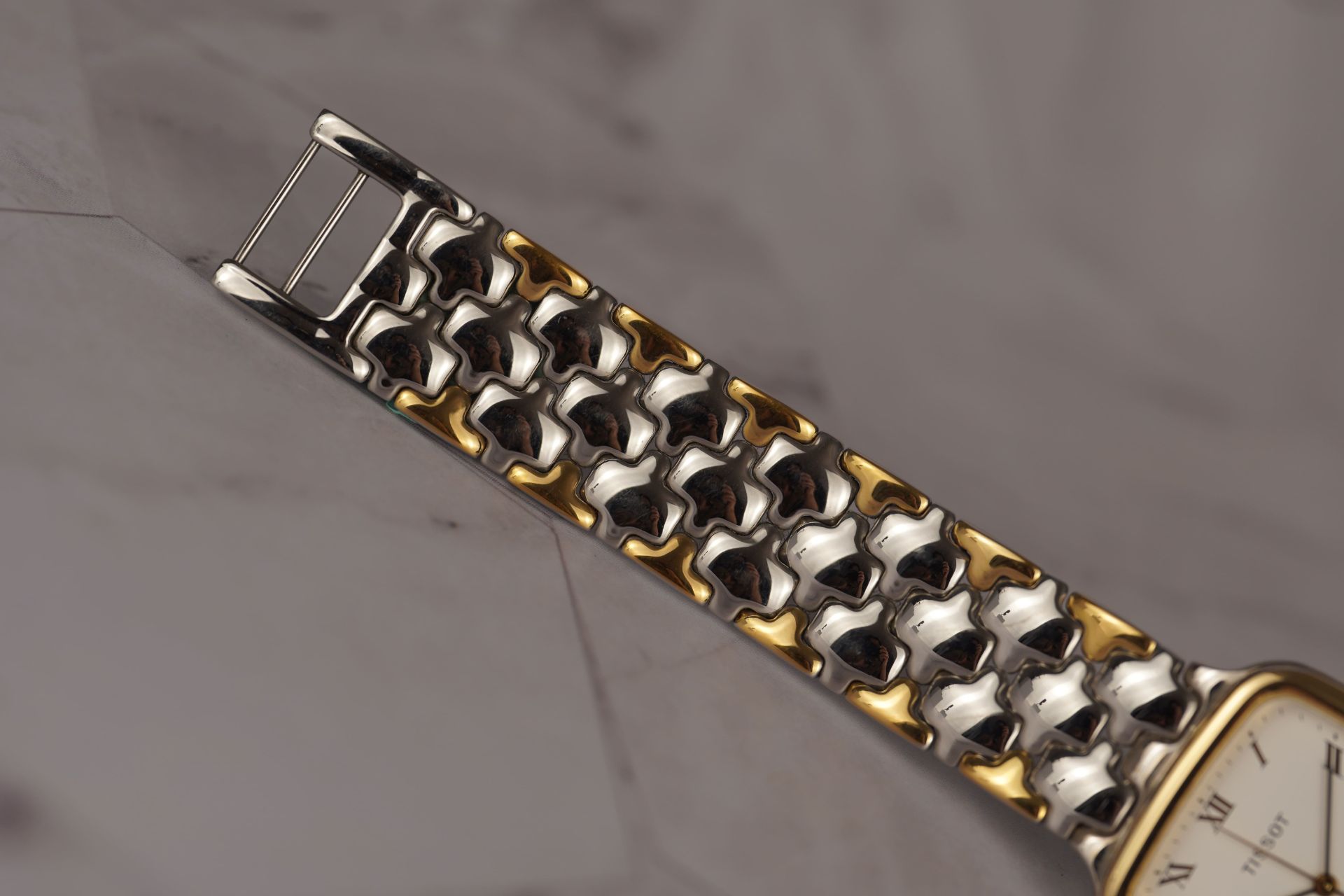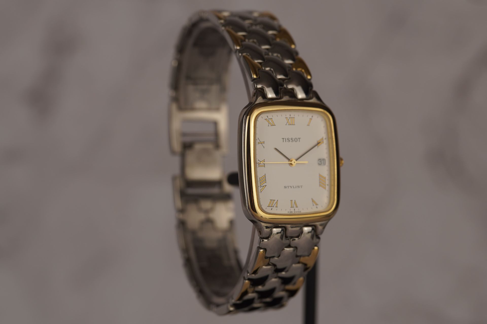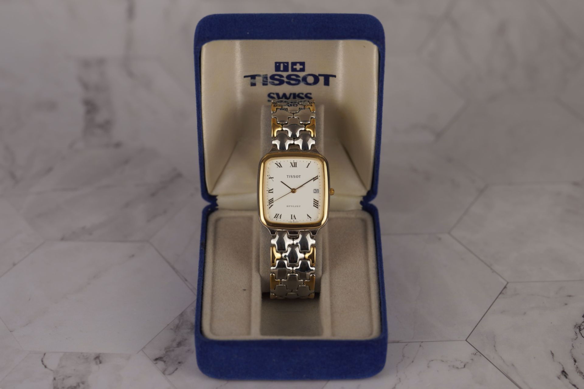 Découvrez l’élégance intemporelle de cette montre Tissot Stylist « Tank », référence commerciale K281, une pièce unisexe au design raffiné. Son boîtier en acier de 29.4 mm de diamètre et de seulement 6.2 mm d’épaisseur abrite un mouvement Quartz précis. Le bracelet original en acier bicolore Or/Acier est sublimé par son fermoir bijoux, également original. Cette montre est livrée avec son coffret, garantissant son histoire et son authenticité. Dans un bon état général, elle est couverte par une garantie de 12 mois.