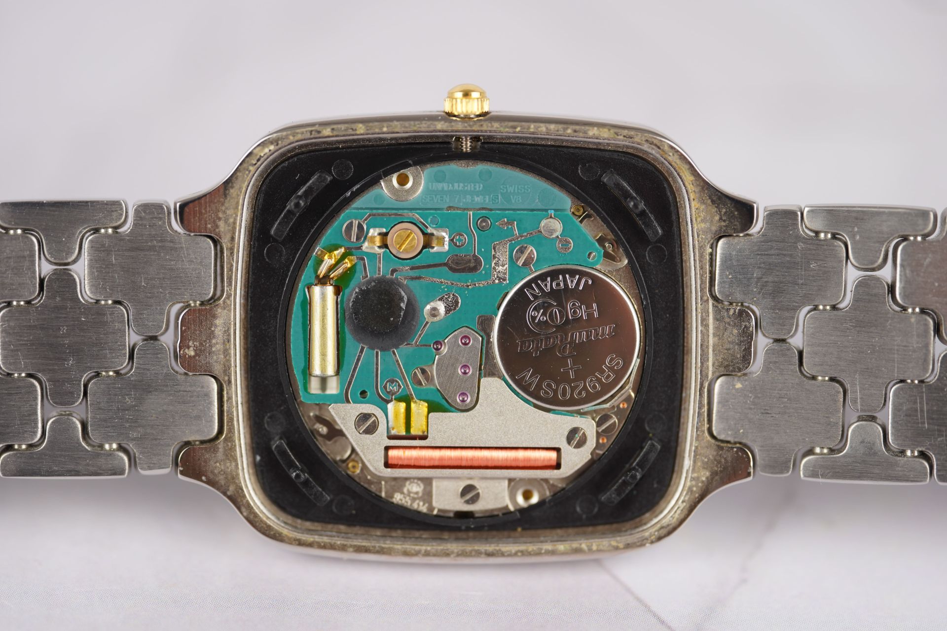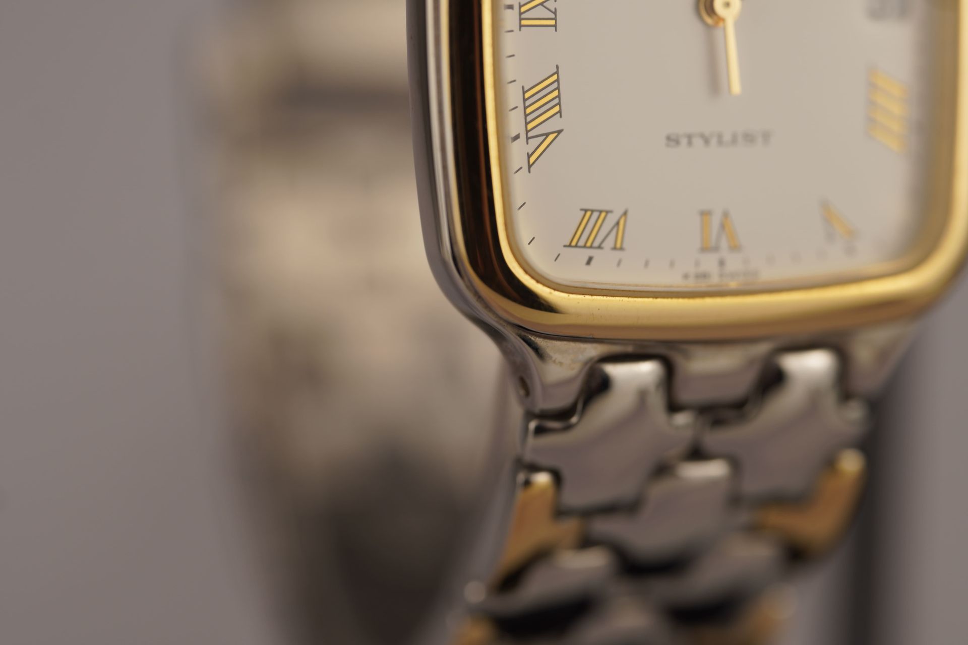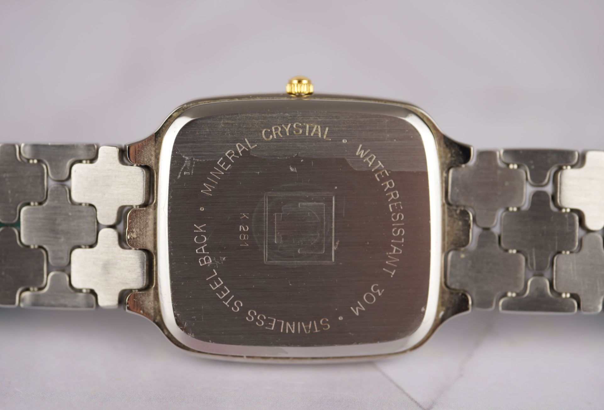 Découvrez l’élégance intemporelle de cette montre Tissot Stylist « Tank », référence commerciale K281, une pièce unisexe au design raffiné. Son boîtier en acier de 29.4 mm de diamètre et de seulement 6.2 mm d’épaisseur abrite un mouvement Quartz précis. Le bracelet original en acier bicolore Or/Acier est sublimé par son fermoir bijoux, également original. Cette montre est livrée avec son coffret, garantissant son histoire et son authenticité. Dans un bon état général, elle est couverte par une garantie de 12 mois.