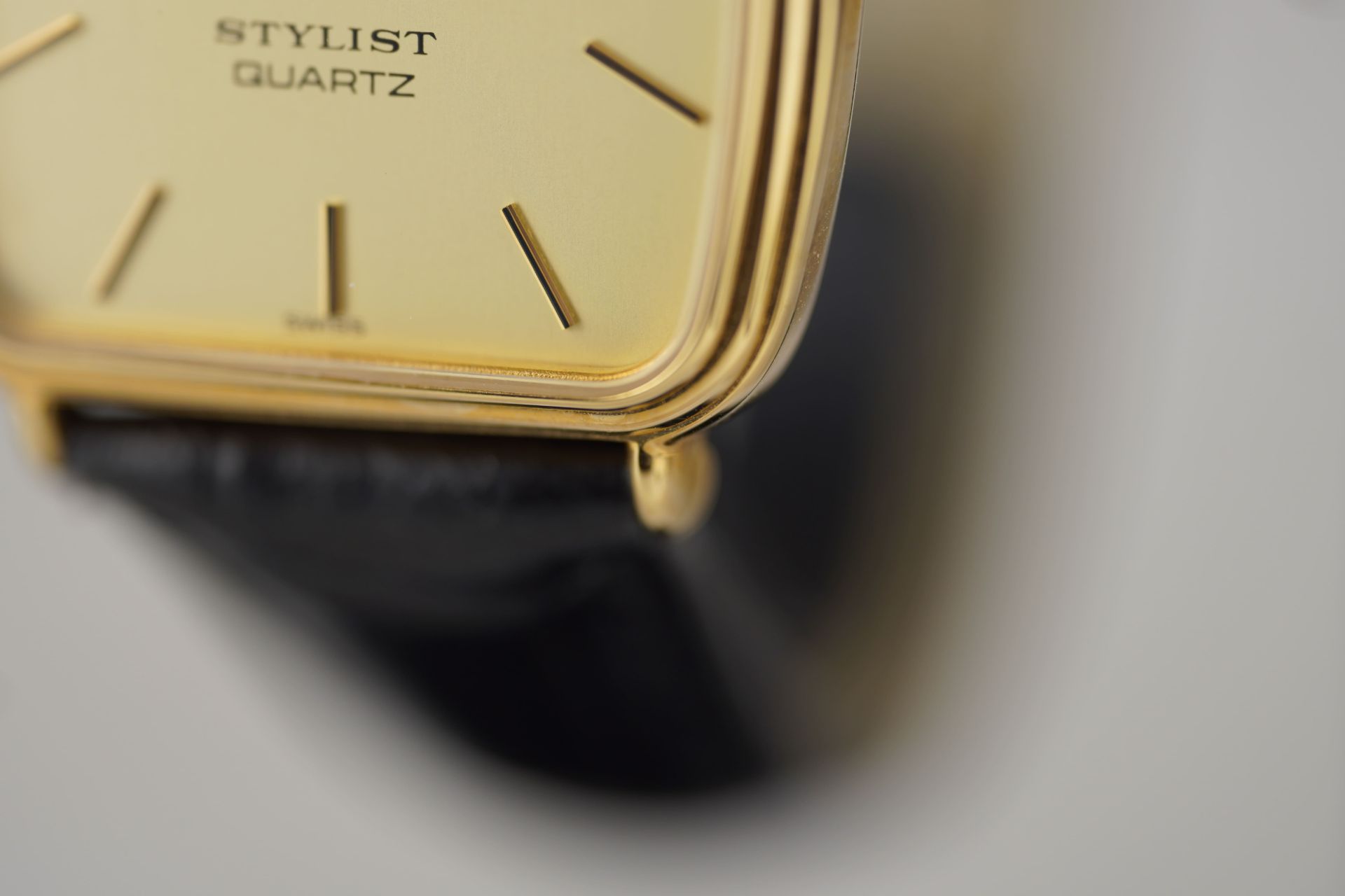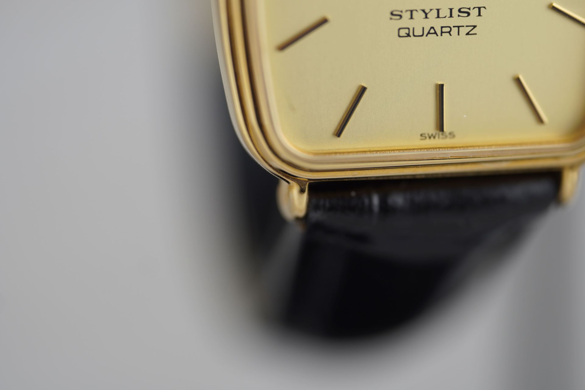 Découvrez la Tissot Stylist, une montre unisexe d’une élégance intemporelle, référence A185. Son boîtier plaqué or de 27.6mm de diamètre et 5.9mm d’épaisseur abrite un mouvement à Quartz précis. L’année de production, 1982, lui confère une touche de vintage authentique. Le bracelet en cuir noir et la boucle ardillon sont non-originaux, mais complètent harmonieusement son design raffiné. Cette montre est livrée seule. Elle bénéficie d’une garantie de 12 mois.
