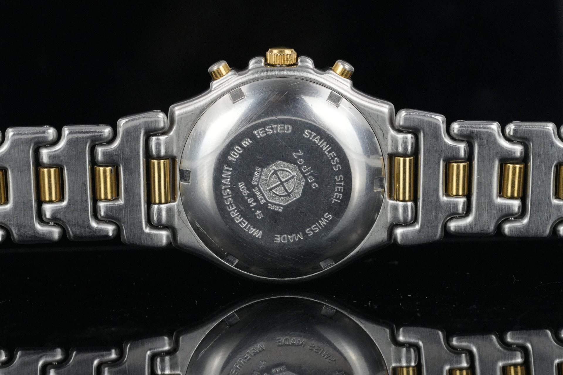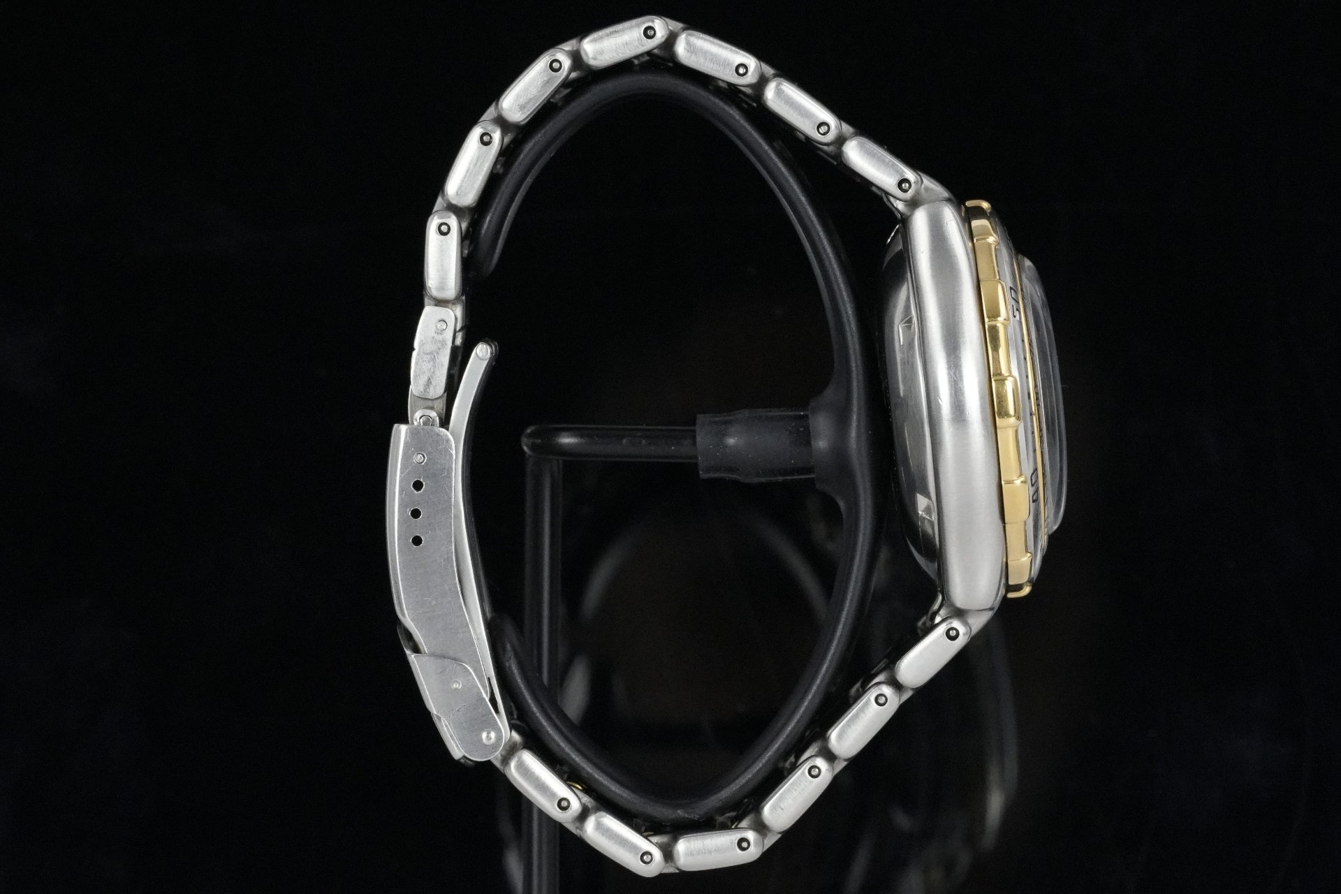 Plongez dans l’héritage horloger avec ce chronographe Zodiac « Gold Dot », référence commerciale 406.41.15. Cette pièce unisexe, identifiable par sa référence TOT-10248, est animée par un mouvement à remontage automatique, gage de précision et de fiabilité. Son boîtier en acier de 39mm de diamètre et 16.6mm d’épaisseur abrite un cadran qui capture le regard. Le bracelet original en acier bicolore Or/Acier, d’une longueur de 19.5 cm, s’harmonise parfaitement avec la boucle déployante couverte, également originale, offrant un confort inégalé. Ce modèle présente une étanchéité de 10 ATM (0 ATM testée en atelier). Livrée avec son coffret, cette montre a été révisée en décembre 2024 et bénéficie d’une garantie de 12 mois.