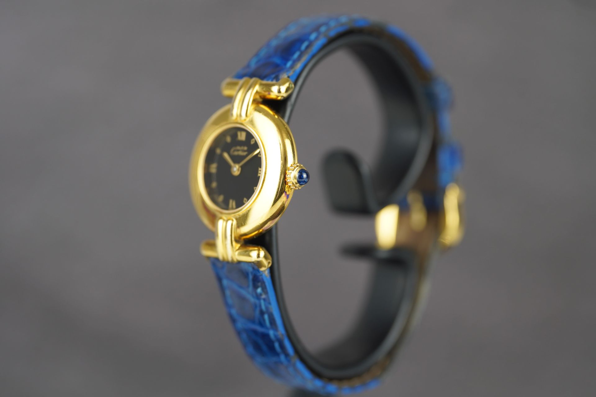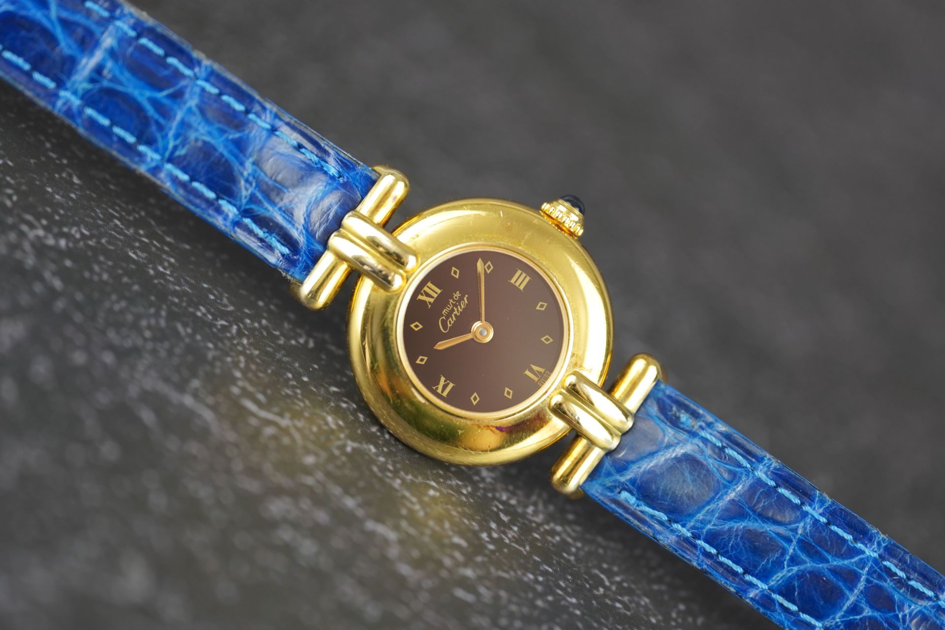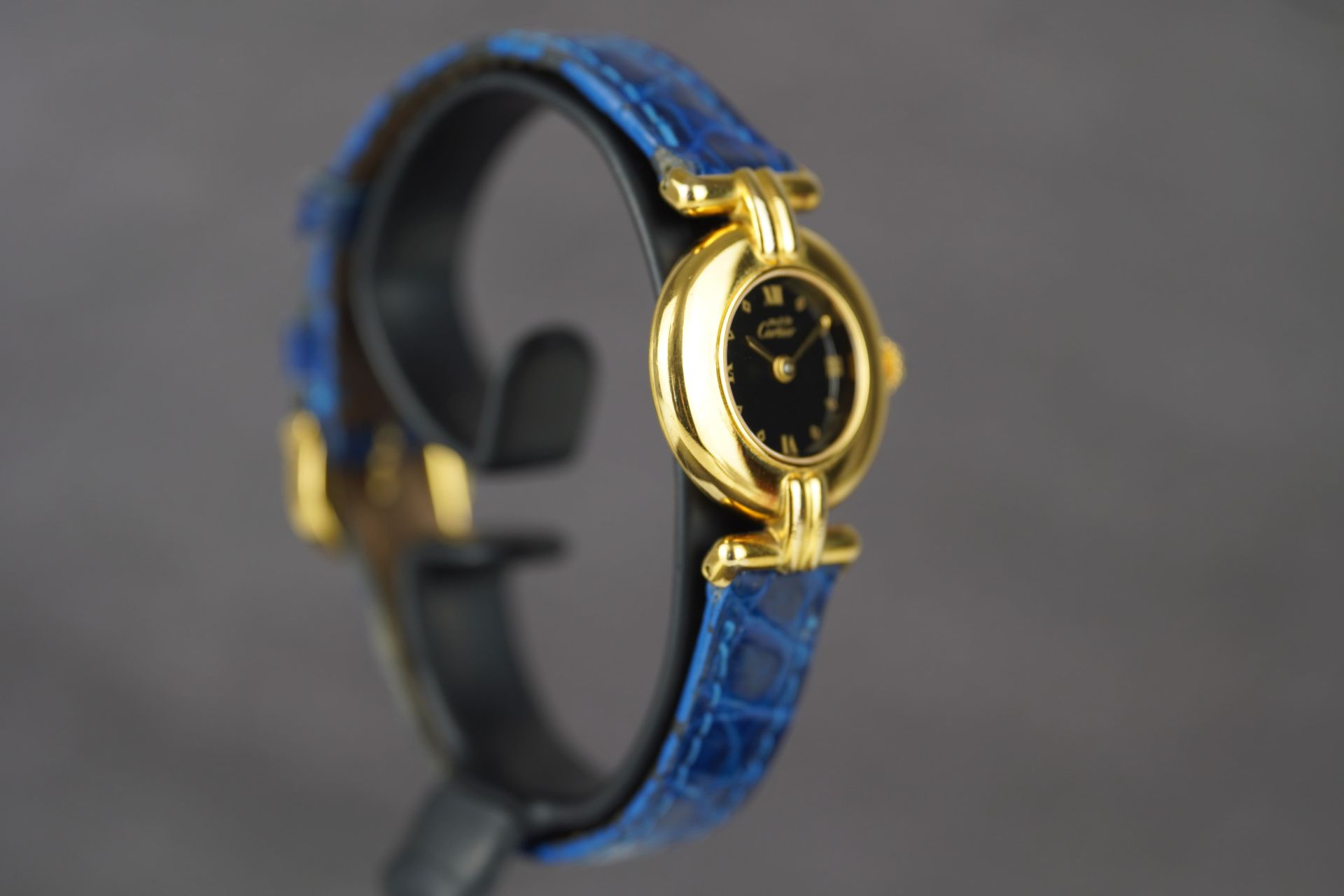 Découvrez l’élégance intemporelle avec cette montre Cartier Colisée Must De, référence commerciale 590002. Conçue pour la femme, cette pièce raffinée arbore un boîtier plaqué or de 24 mm de diamètre et d’une finesse de 5.5 mm. Son mouvement à Quartz garantit une précision fiable. Le bracelet en cuir bleu d’origine, complété par une boucle ardillon également originale, assure un confort et un style distinctifs. Datant de l’an 2000 et livrée seule, cette montre est en bon état et bénéficie d’une garantie de 12 mois.