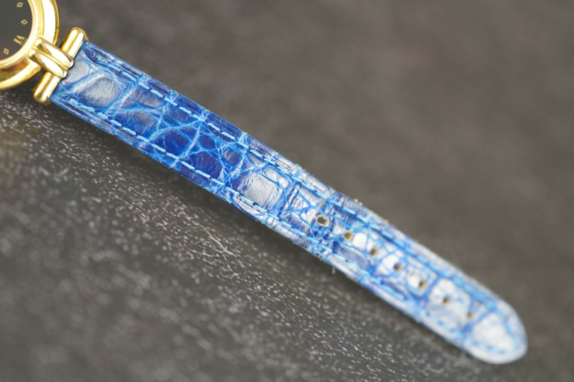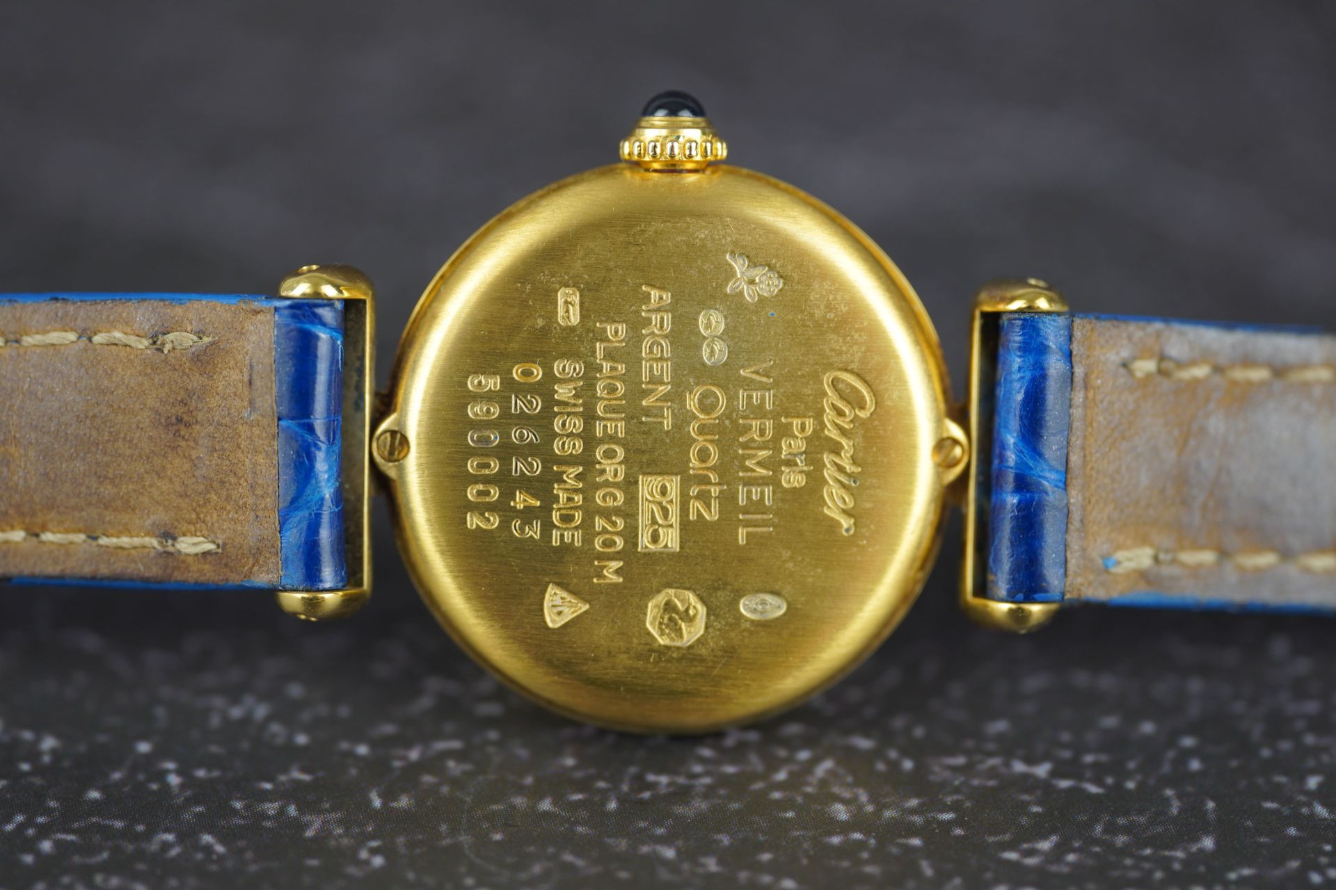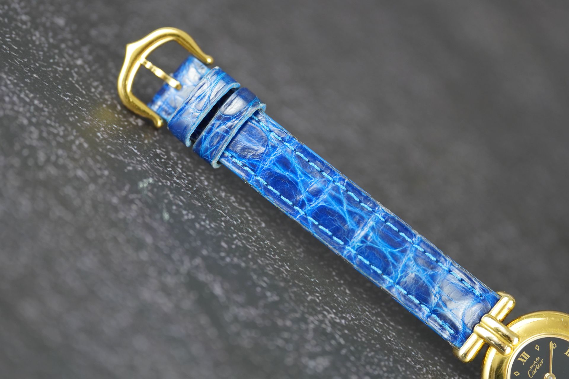 Découvrez l’élégance intemporelle avec cette montre Cartier Colisée Must De, référence commerciale 590002. Conçue pour la femme, cette pièce raffinée arbore un boîtier plaqué or de 24 mm de diamètre et d’une finesse de 5.5 mm. Son mouvement à Quartz garantit une précision fiable. Le bracelet en cuir bleu d’origine, complété par une boucle ardillon également originale, assure un confort et un style distinctifs. Datant de l’an 2000 et livrée seule, cette montre est en bon état et bénéficie d’une garantie de 12 mois.