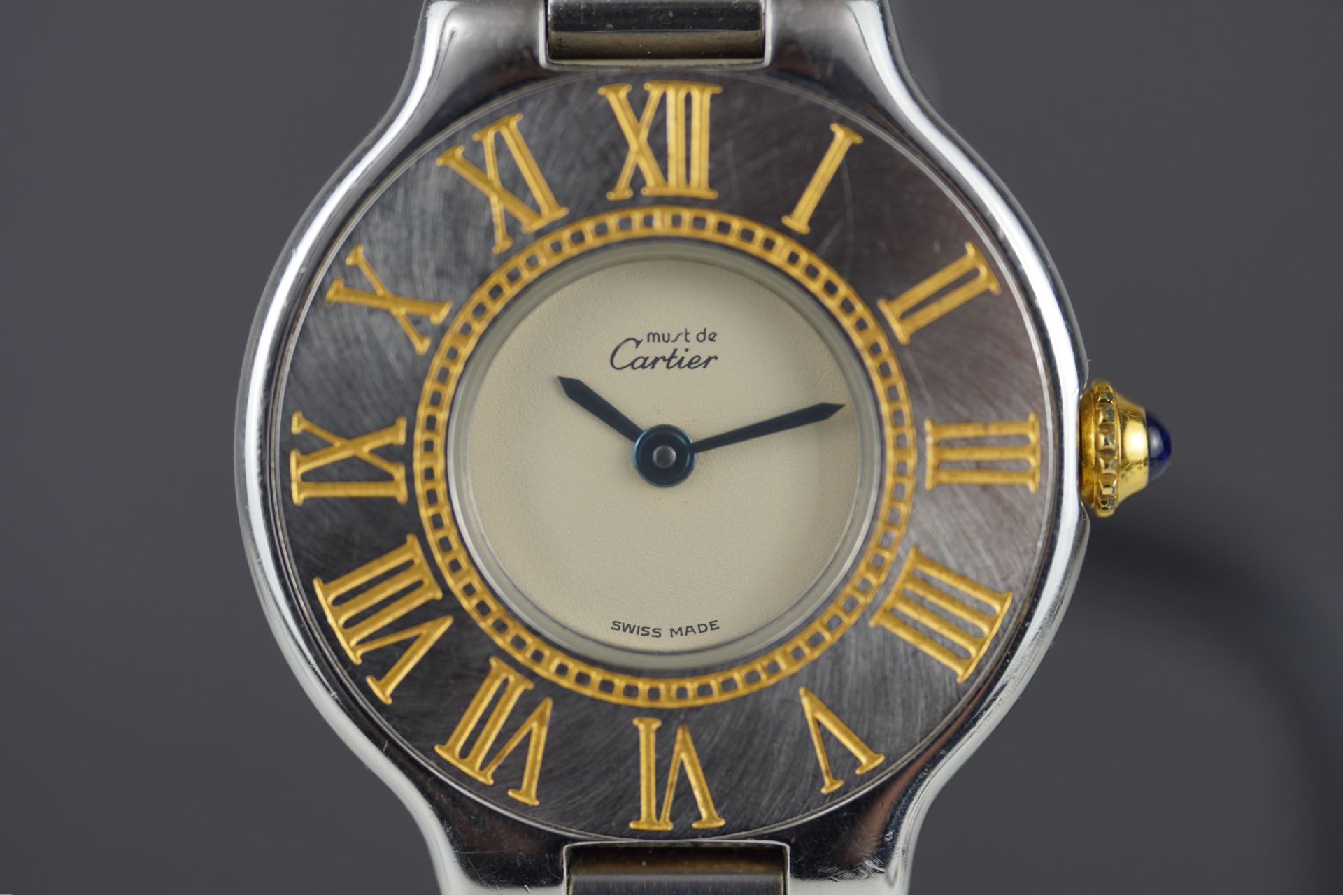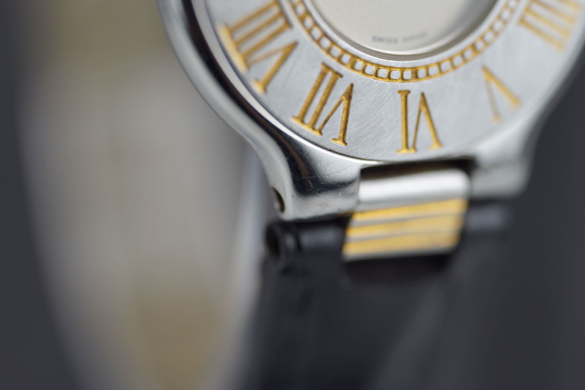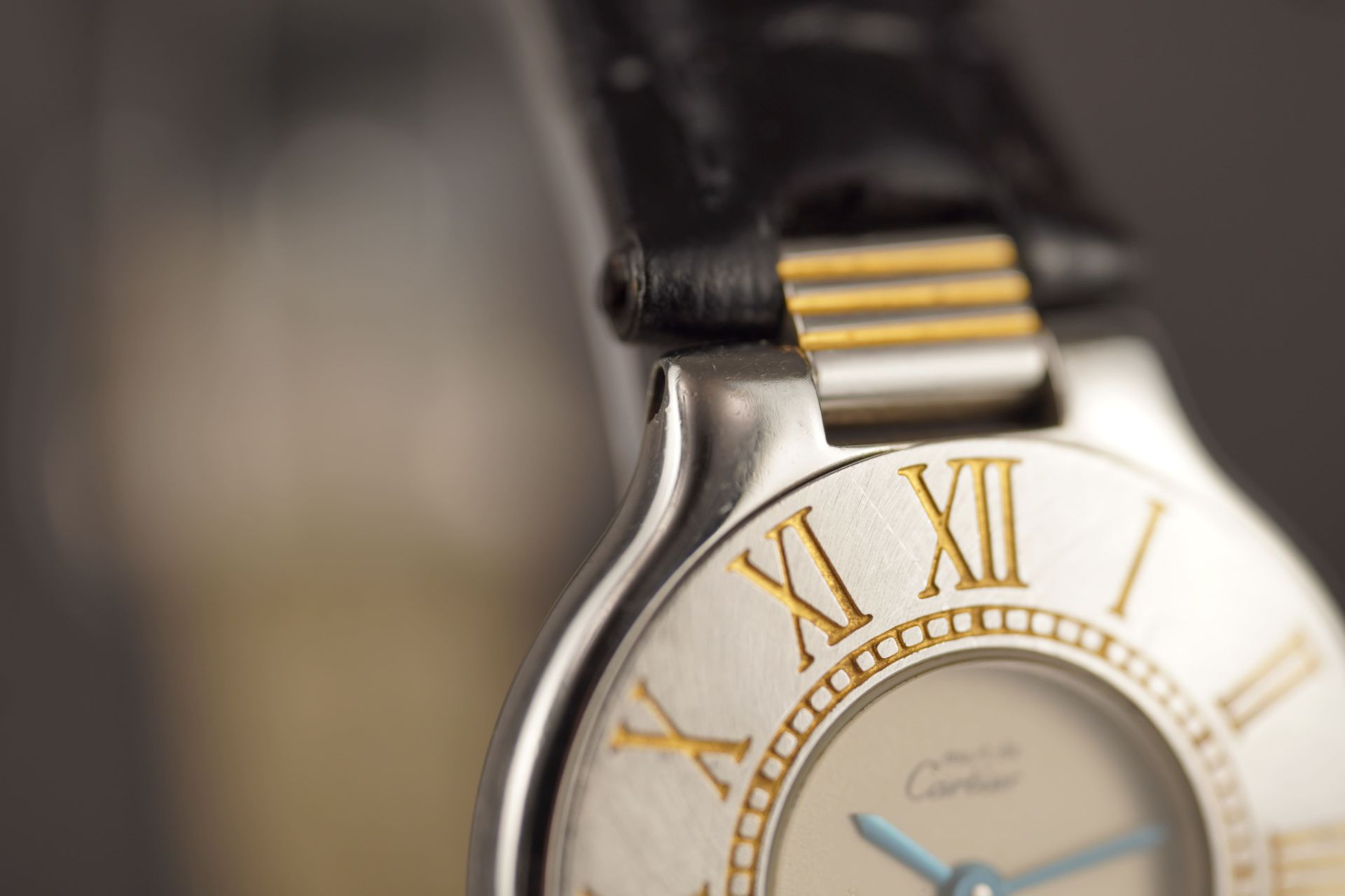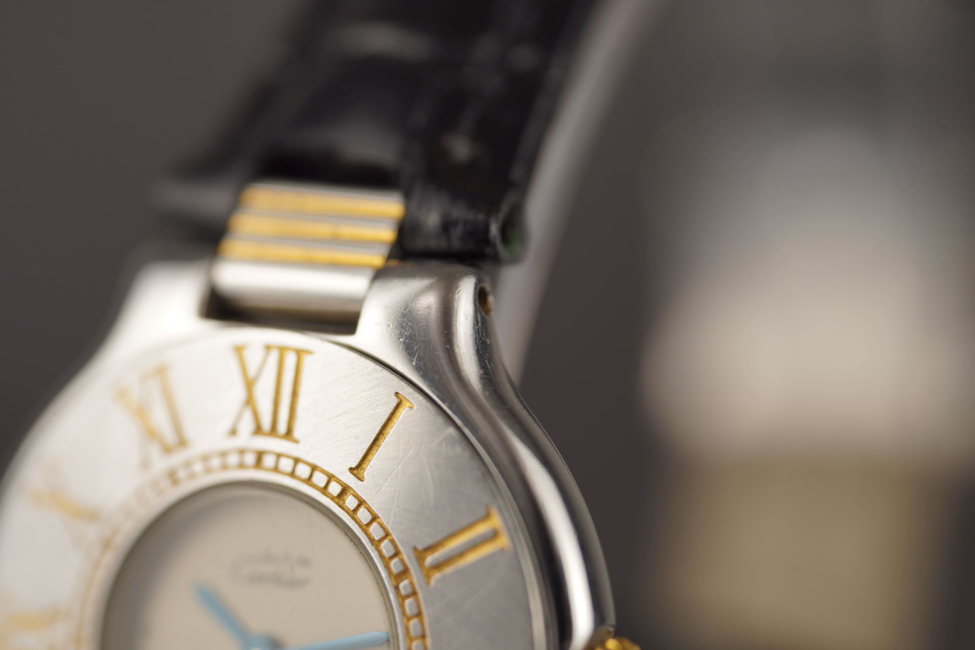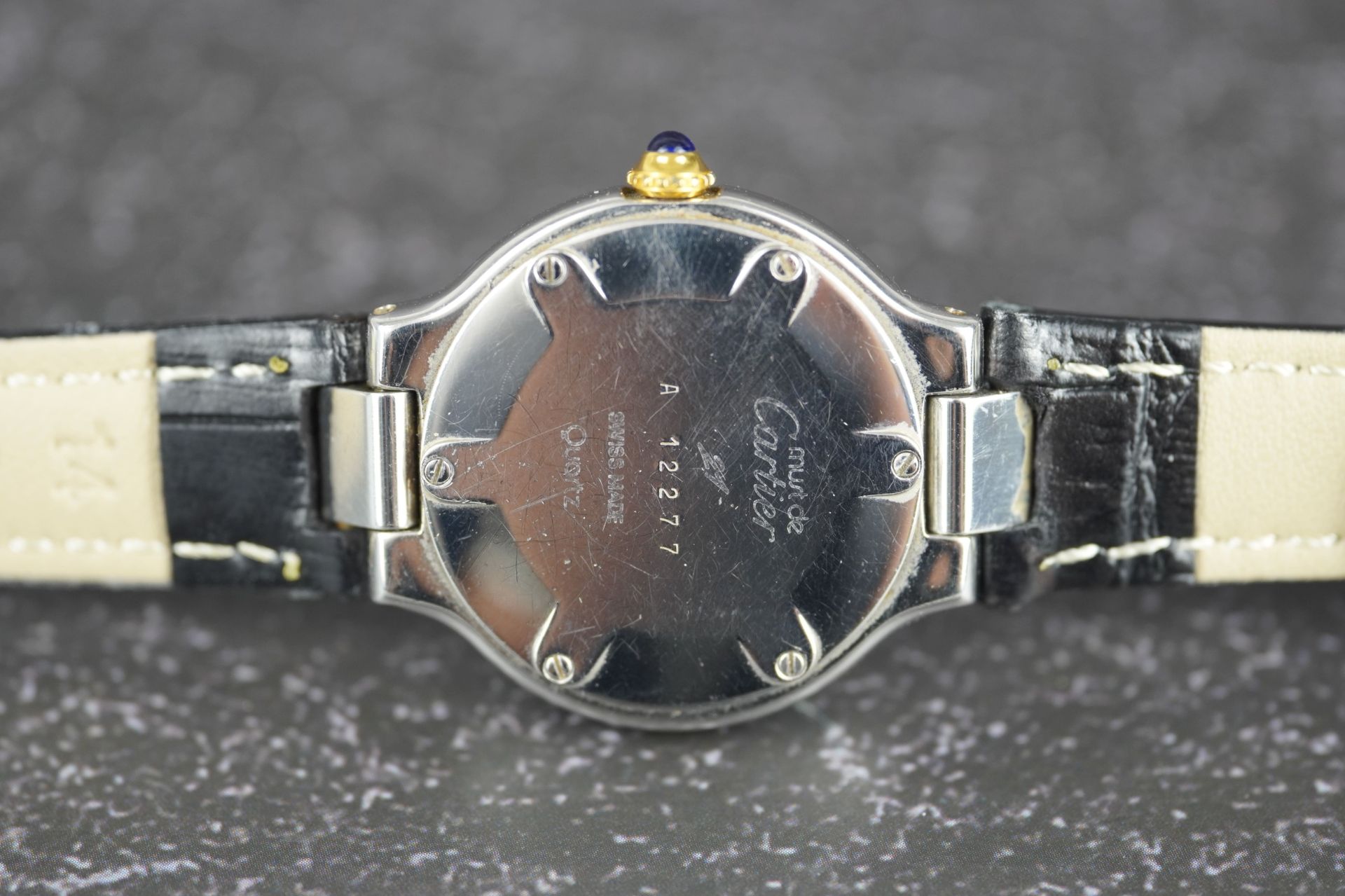Découvrez la Cartier Must De 21 (Réf. 125000P), une montre féminine au charme intemporel. Son boîtier en acier de 28 mm, avec une épaisseur de 5,2 mm, loge un mouvement à Quartz précis. Le bracelet en cuir noir, bien que non-original, s’accompagne d’une boucle ardillon. Cette montre, qui affiche un bon état général, est livrée seule et bénéficie d’une garantie de 12 mois.