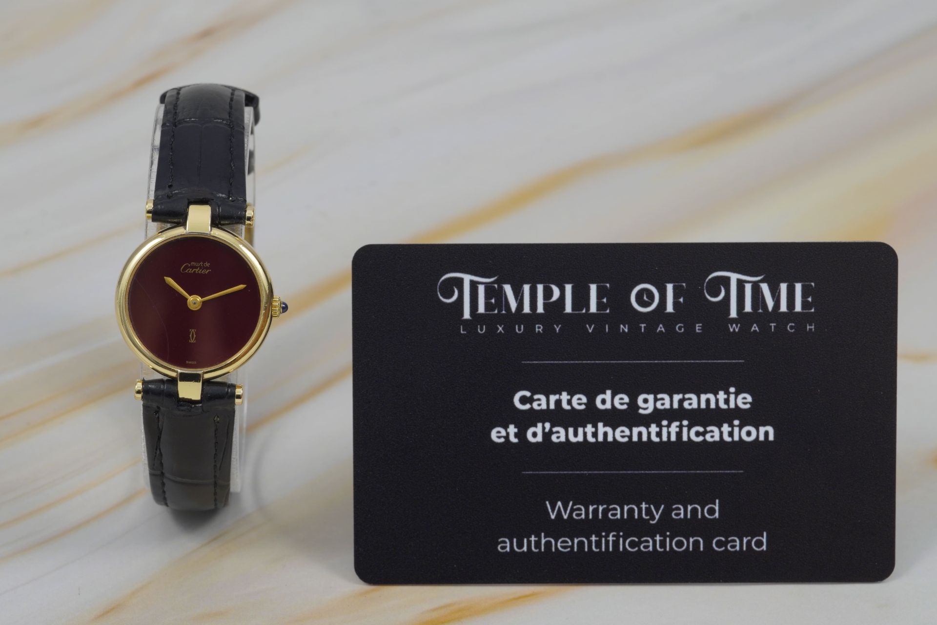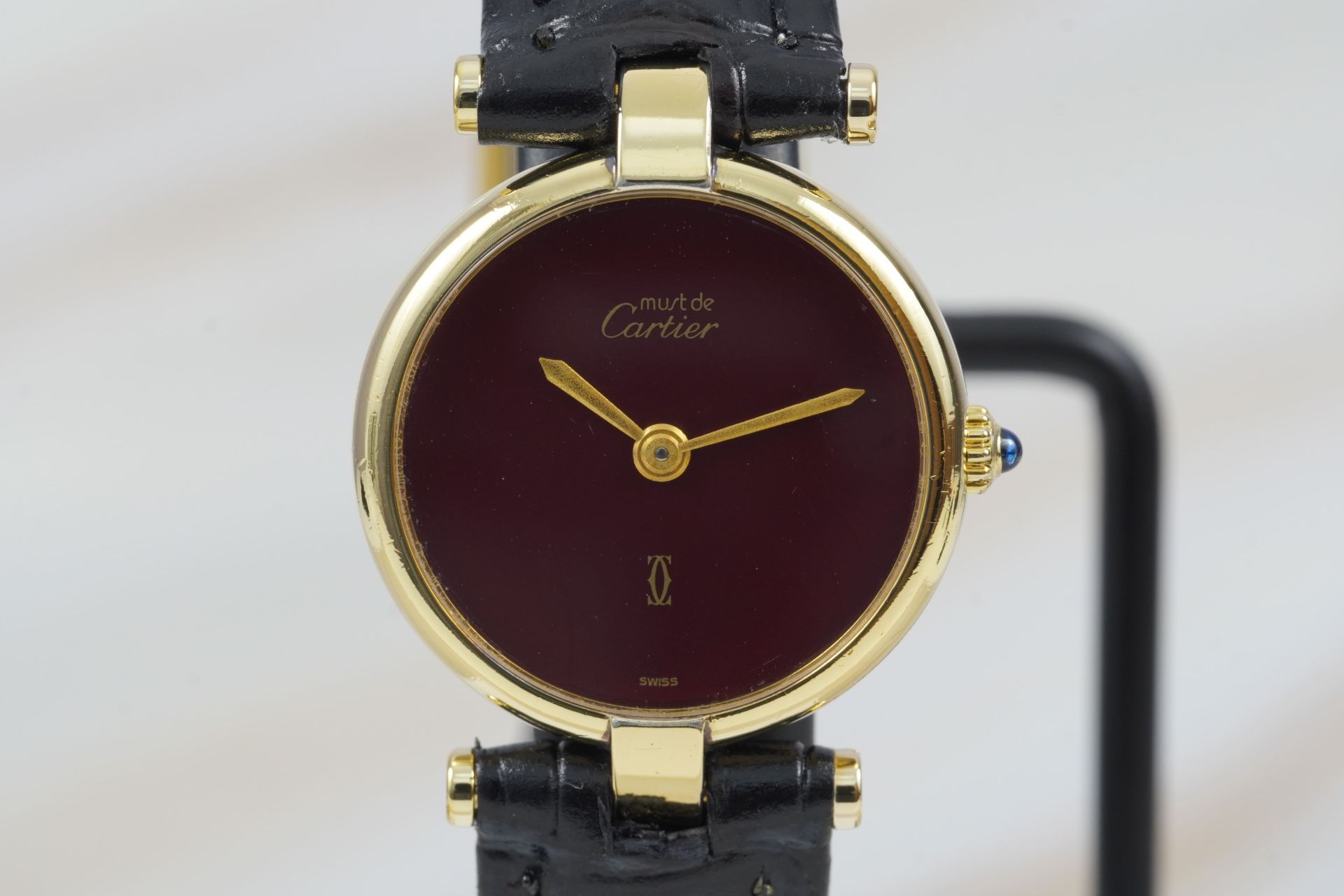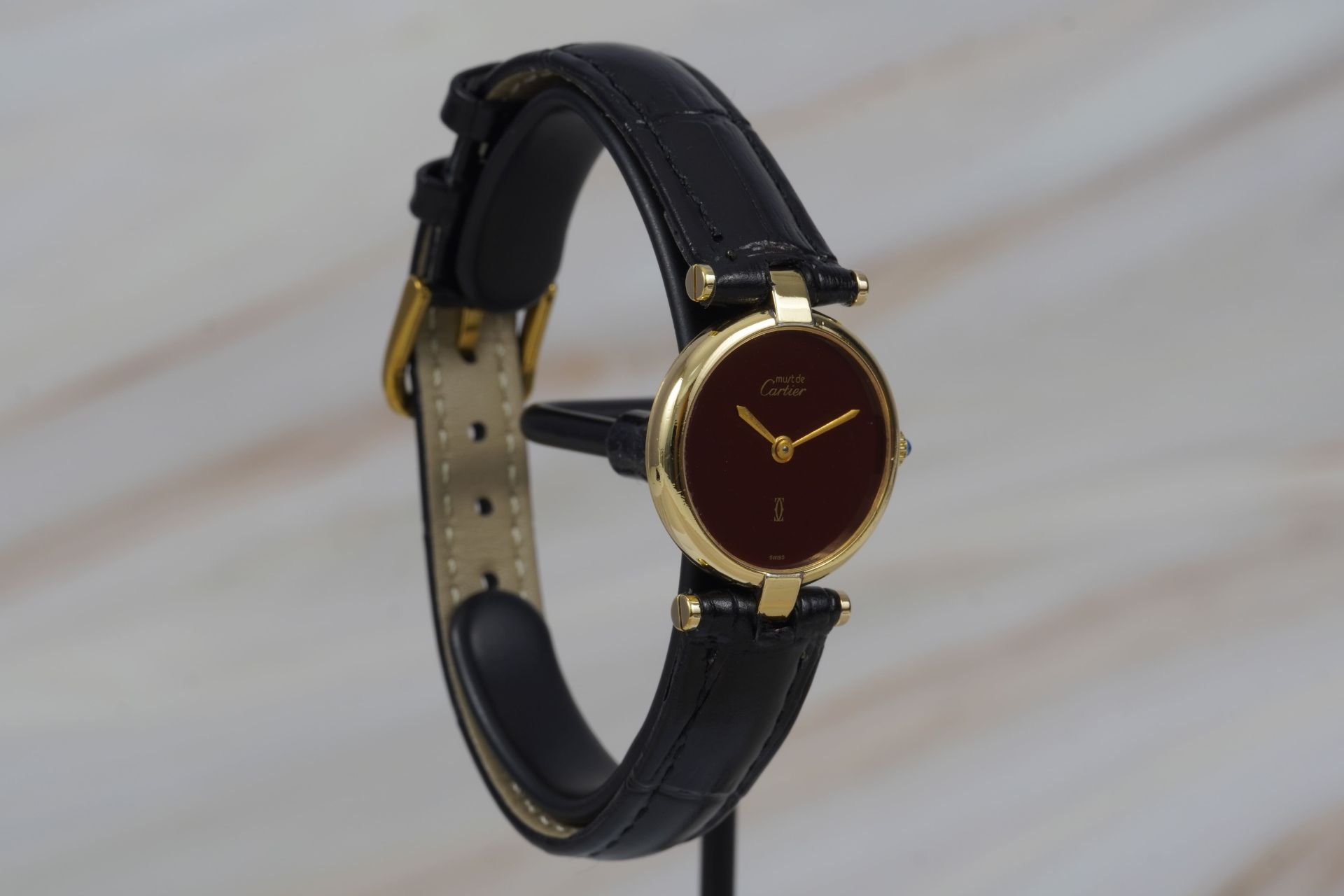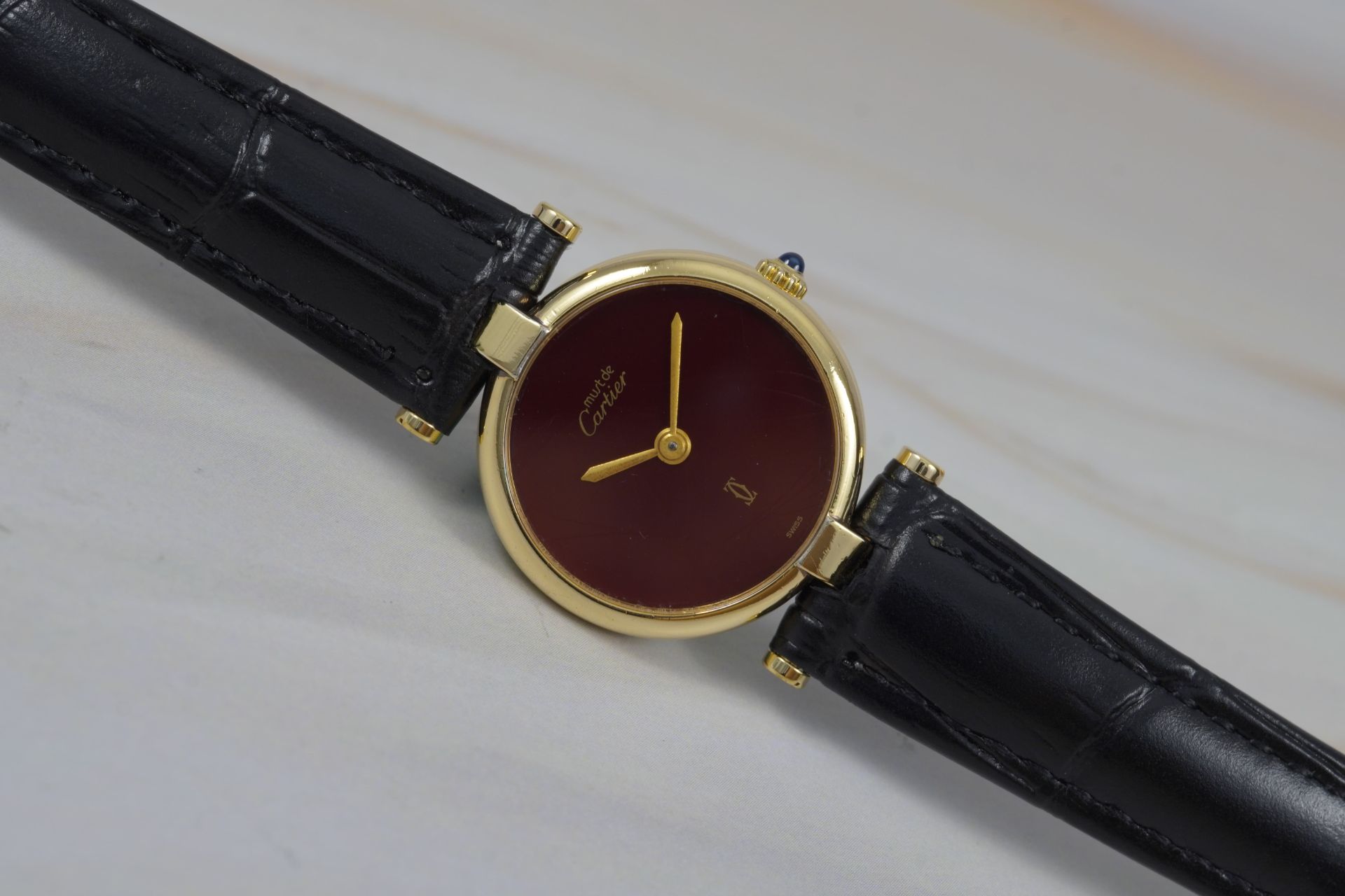Découvrez l’élégance intemporelle de la Cartier Must De Vendôme, Référence 18019249. Ce modèle féminin, un classique raffiné, est doté d’un boîtier en argent 925 plaqué or (« vermeil ») de 24mm de diamètre et de 5mm d’épaisseur, incarnant la délicatesse et le luxe subtil de la Maison Cartier. Son mouvement à Quartz assure une précision fiable. La montre est actuellement accompagnée d’un bracelet en cuir noir non-original, assorti d’une boucle ardillon également non-originale. Cette pièce, présentée en très bon état, est livrée seule et bénéficie d’une garantie d’un an, vous offrant une tranquillité d’esprit pour votre acquisition.