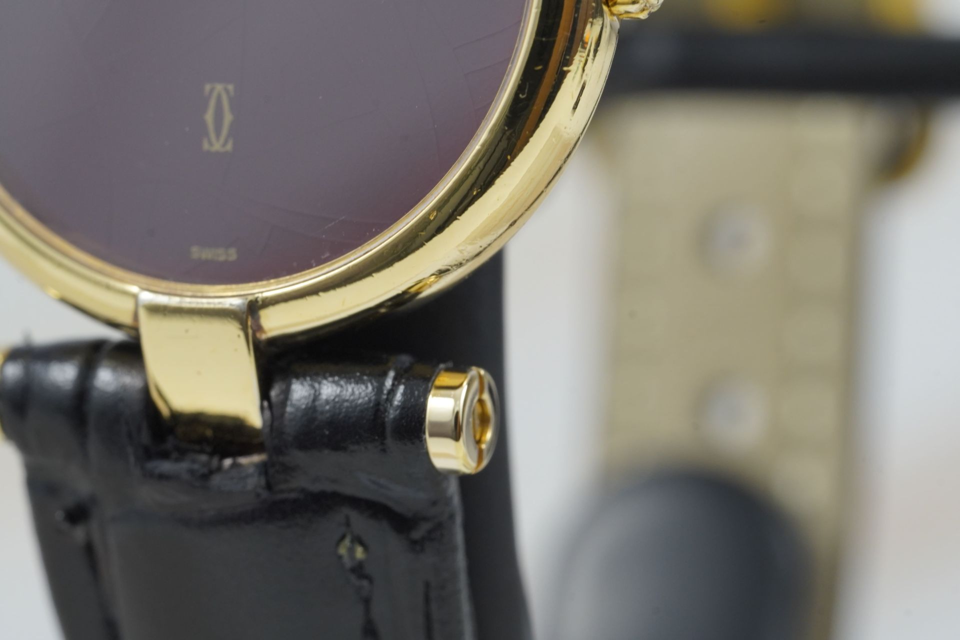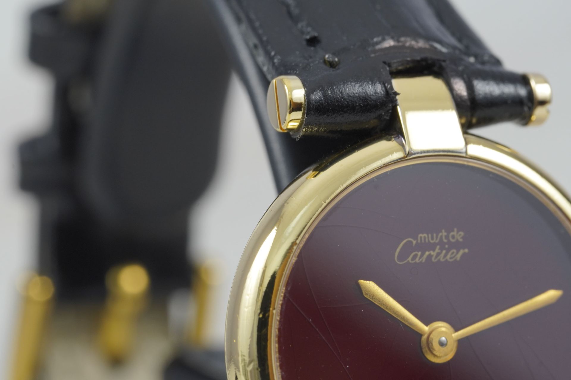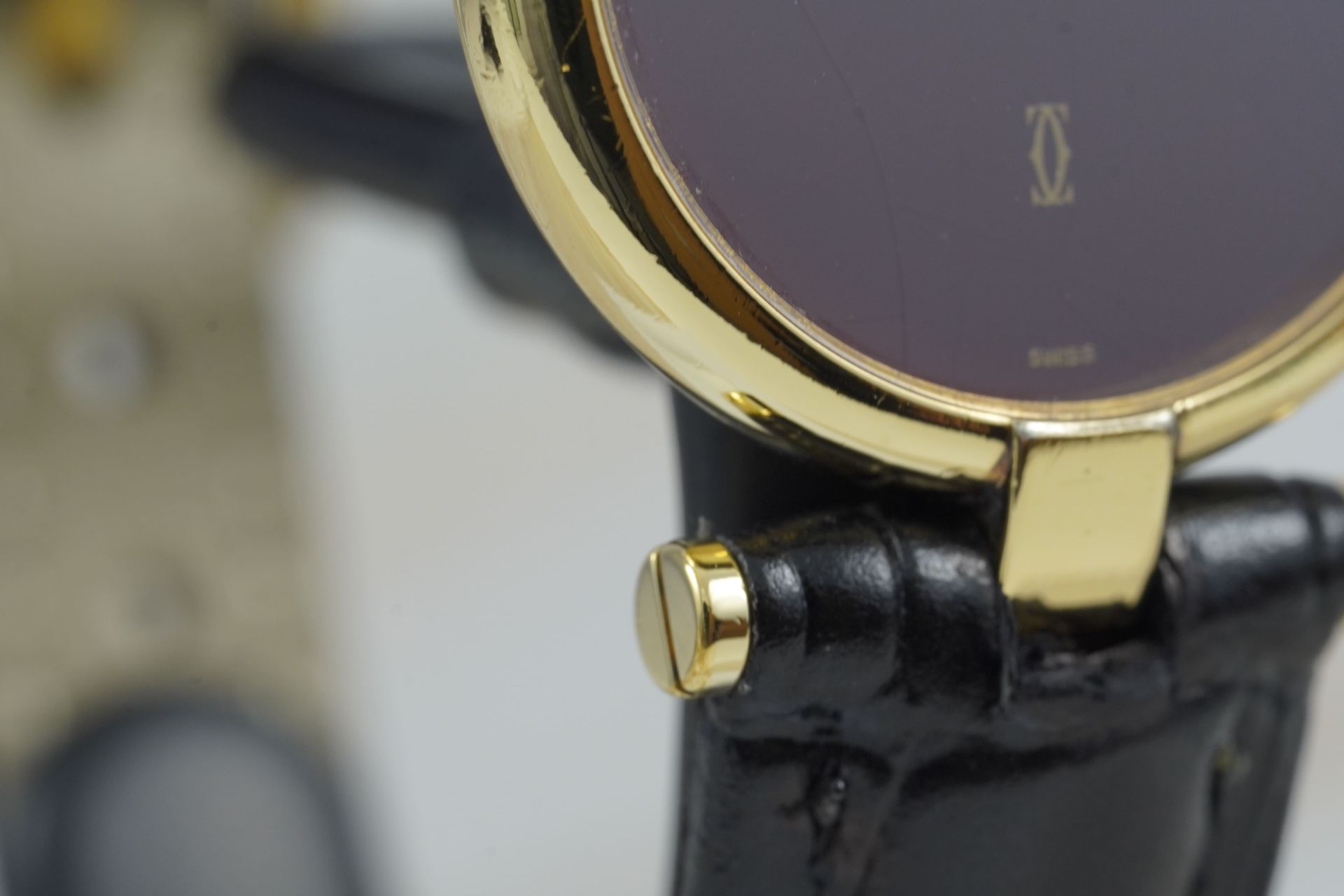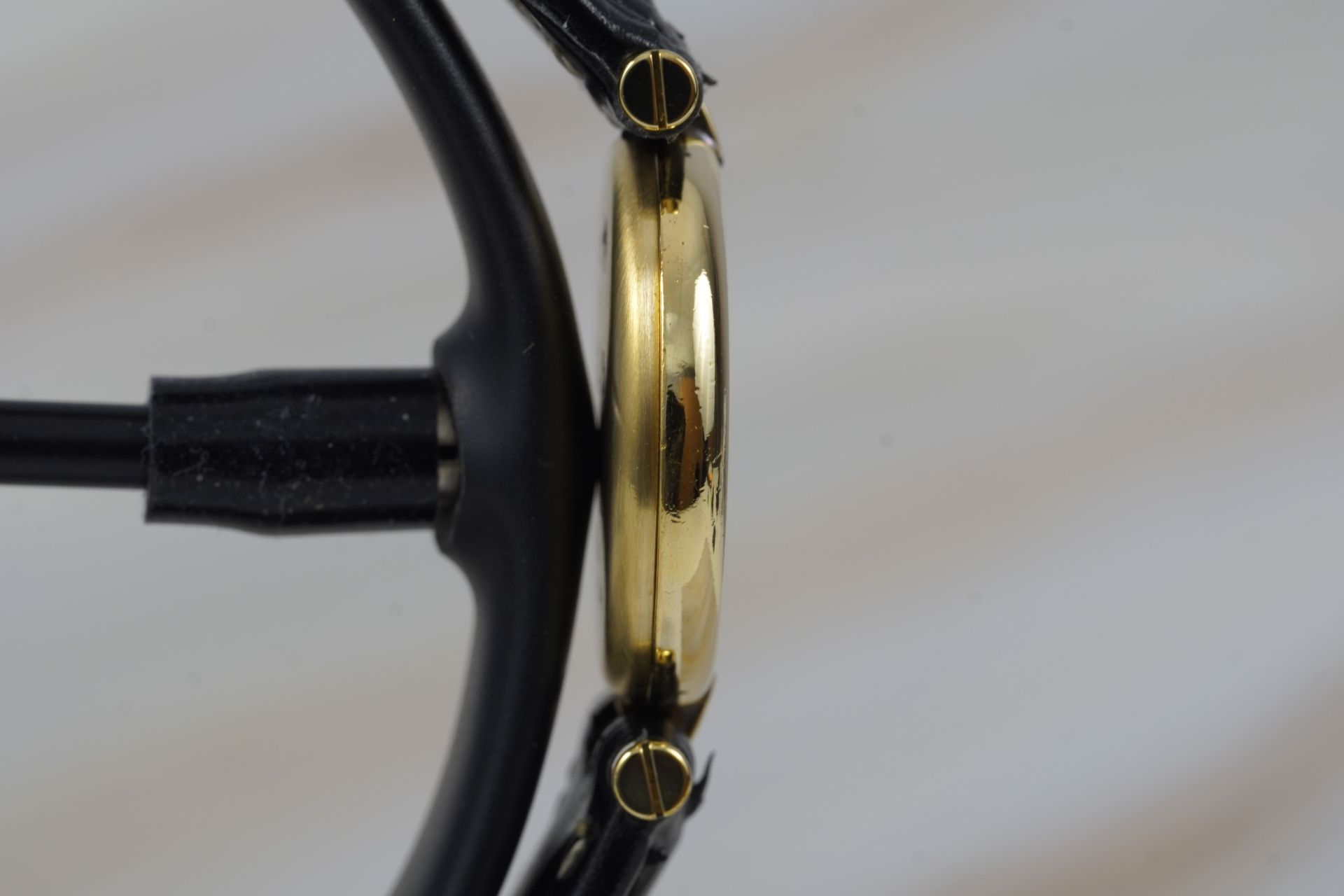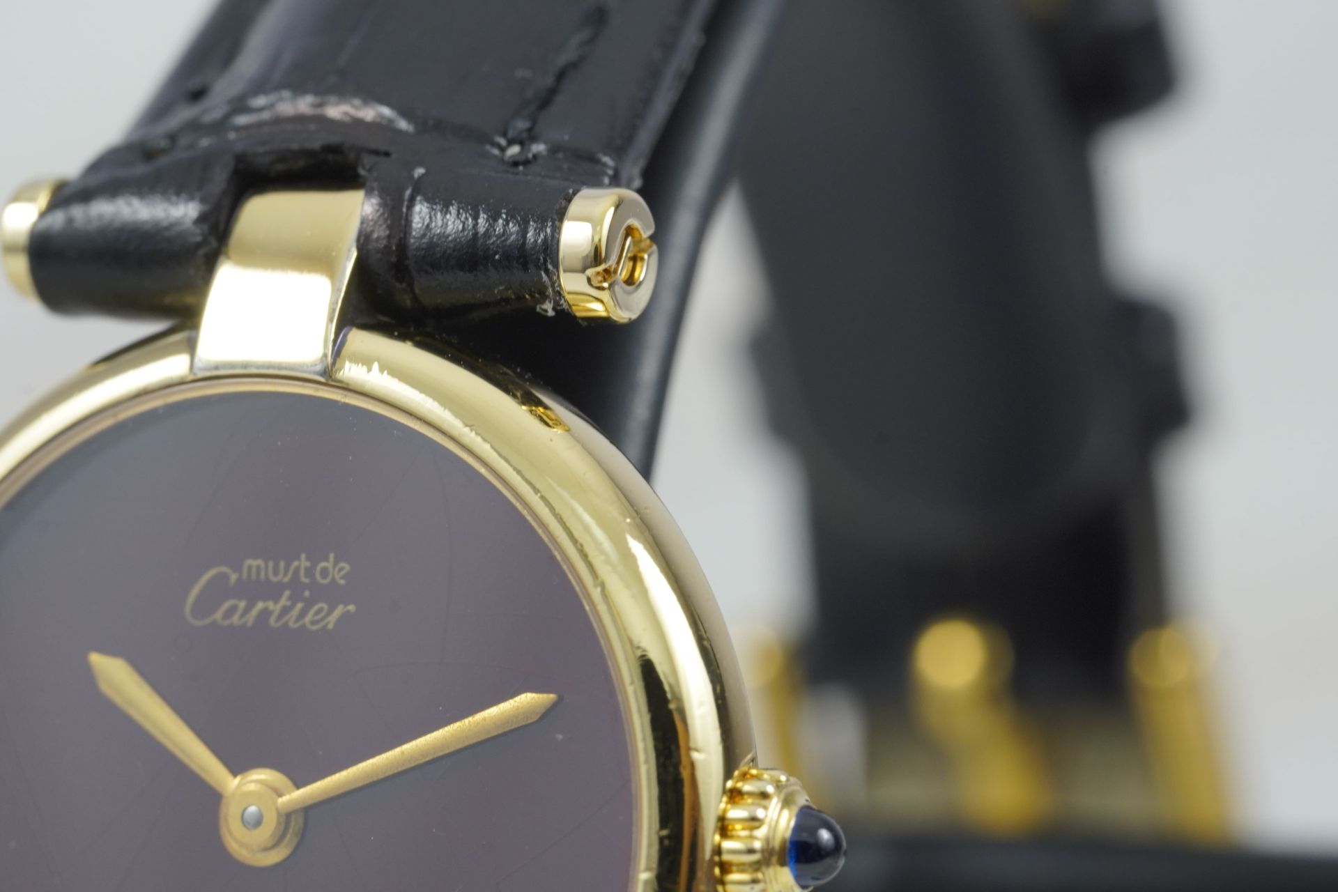 Découvrez l’élégance intemporelle de la Cartier Must De Vendôme, Référence 18019249. Ce modèle féminin, un classique raffiné, est doté d’un boîtier en argent 925 plaqué or (« vermeil ») de 24mm de diamètre et de 5mm d’épaisseur, incarnant la délicatesse et le luxe subtil de la Maison Cartier. Son mouvement à Quartz assure une précision fiable. La montre est actuellement accompagnée d’un bracelet en cuir noir non-original, assorti d’une boucle ardillon également non-originale. Cette pièce, présentée en très bon état, est livrée seule et bénéficie d’une garantie d’un an, vous offrant une tranquillité d’esprit pour votre acquisition.