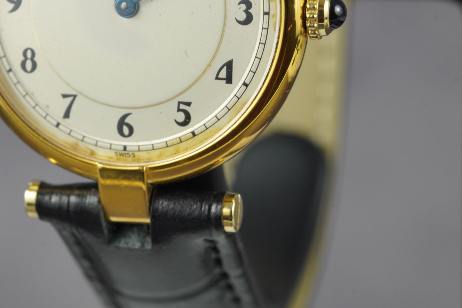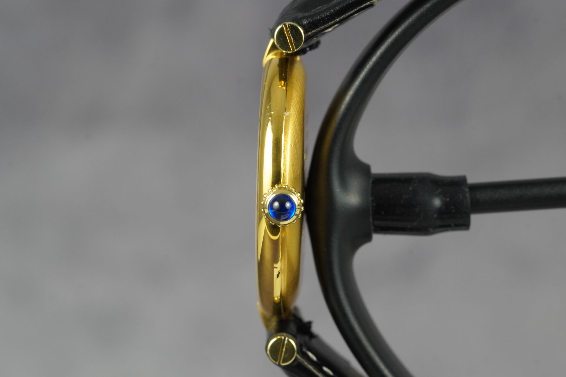 Découvrez l’élégance intemporelle de la montre Cartier Must De Vendôme – 590003, spécialement conçue pour les femmes modernes. Son boîtier raffiné en plaqué or, associé à un bracelet en cuir doux, évoque un luxe discret et sophistiqué. Avec un diamètre de 30 mm, cette montre se pose délicatement au poignet, ajoutant une touche de glamour à toutes vos tenues. Son bracelet, bien que non original, est un accessoire de mode qui s’harmonise parfaitement avec la boucle d’origine emblématique de Cartier. Laissez-vous séduire par cet accessoire d’exception qui incarne le chic parisien et affirme votre style audacieux. N’attendez plus pour faire briller votre poignet avec cette pièce unique !