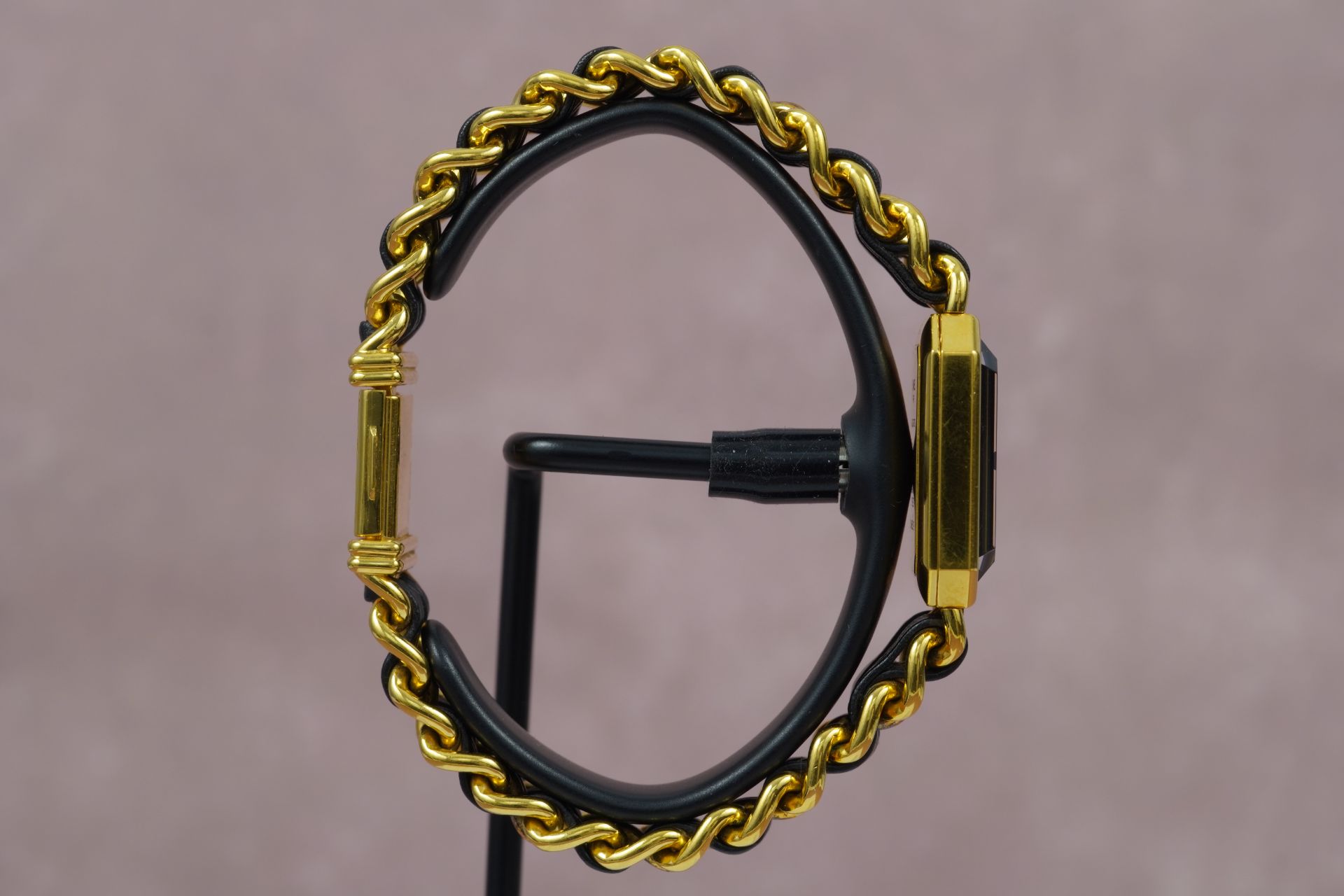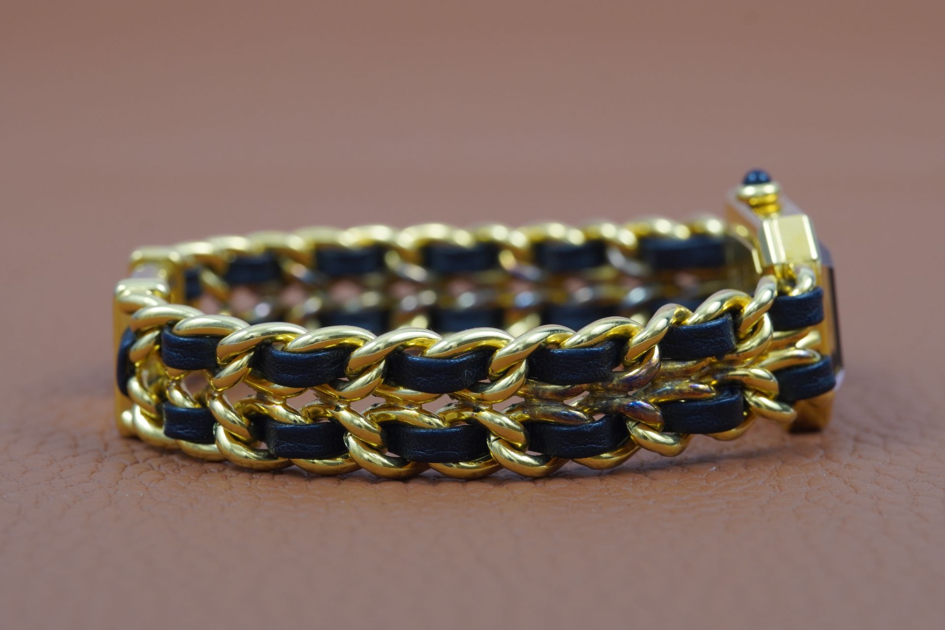 Découvrez l’élégance intemporelle de la montre Chanel Première H0001, une pièce emblématique dédiée à la femme moderne. Avec son boîtier en plaqué or mesurant 20 mm de diamètre, elle affiche un design raffiné qui s’harmonise à toutes les occasions. Son bracelet en plaqué or, d’une taille de 18 cm, allie confort et sophistication, tandis que sa boucle originale assure un maintien parfait. Cette montre allie les matériaux de qualité supérieure à un savoir-faire exceptionnel, faisant d’elle un accessoire incontournable dans votre collection. Affichez votre style avec cette pièce unique qui incarne l’essence même de la maison Chanel.