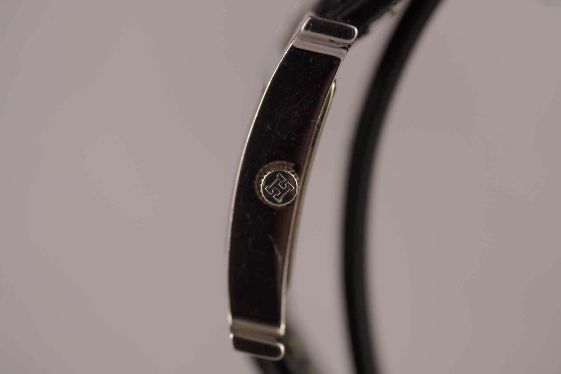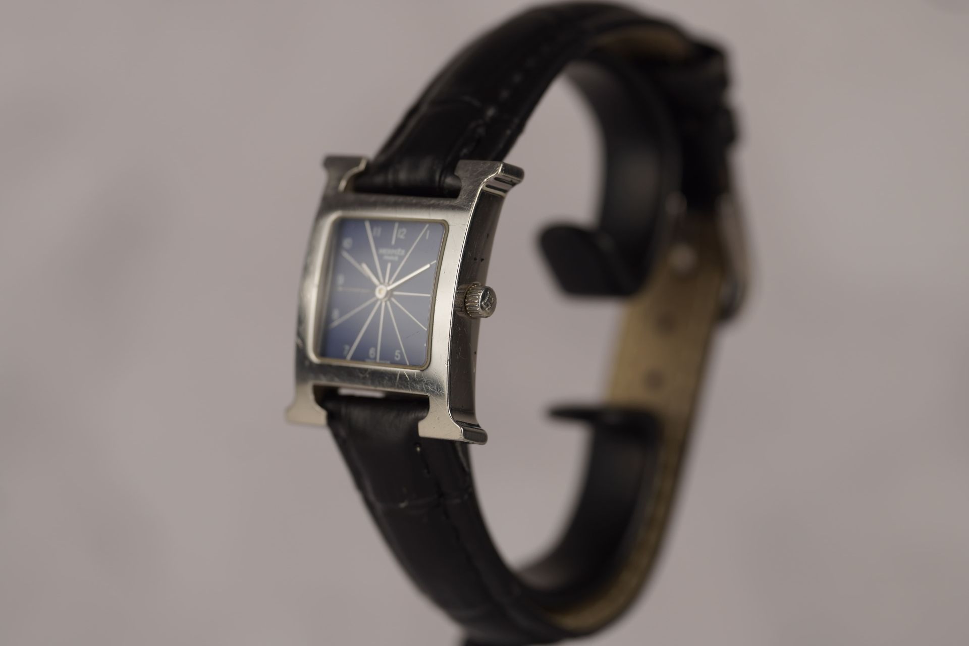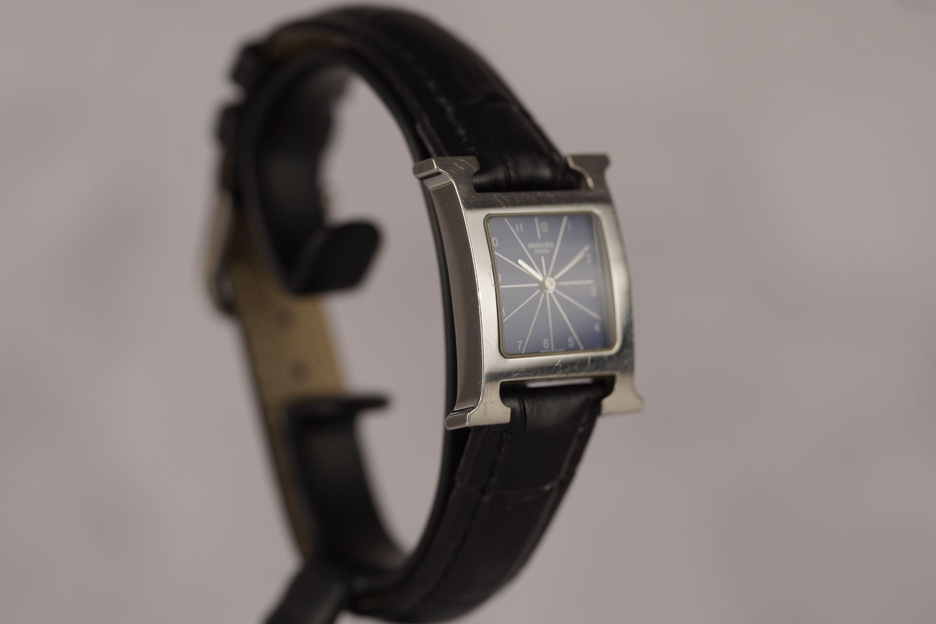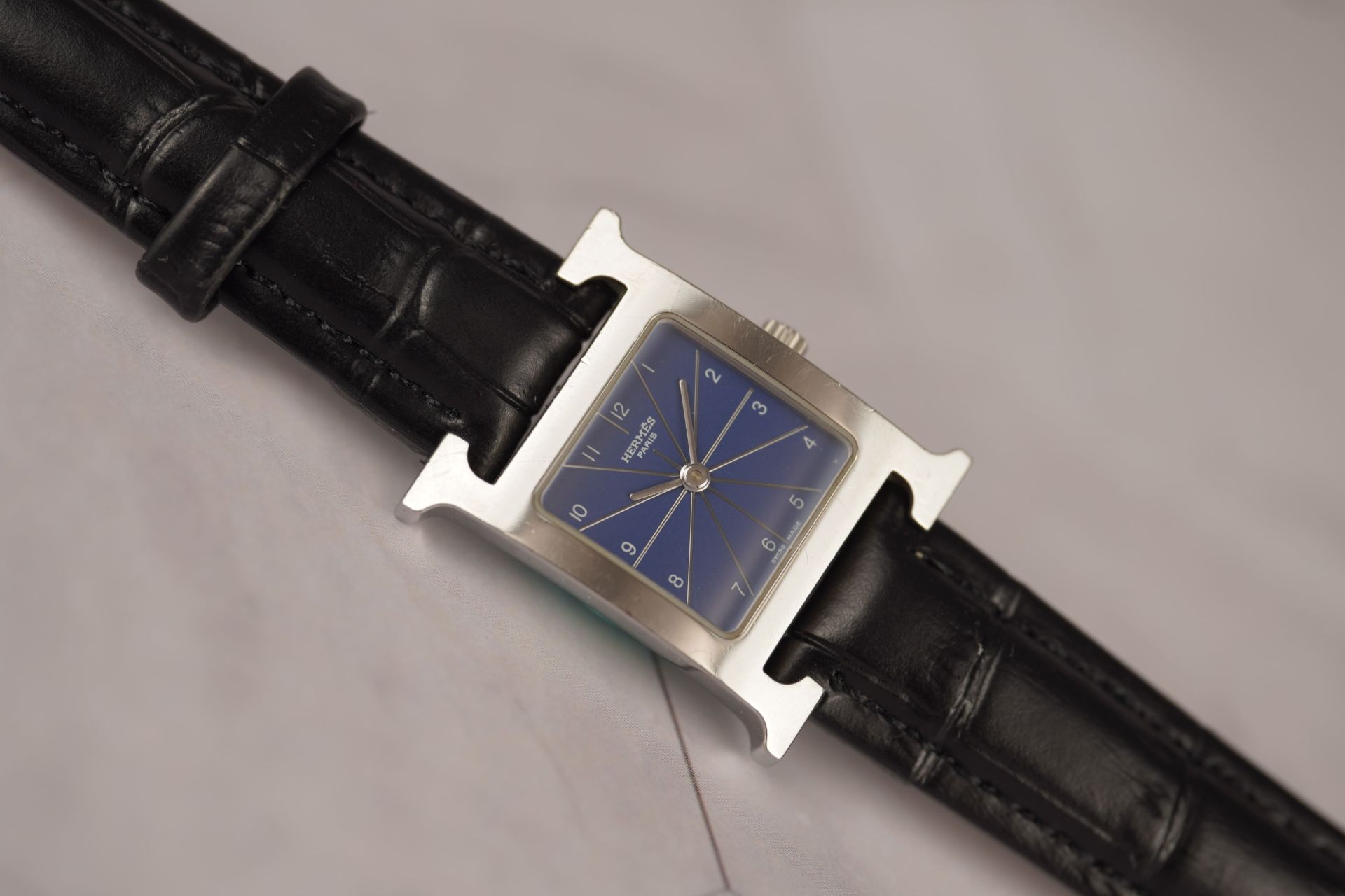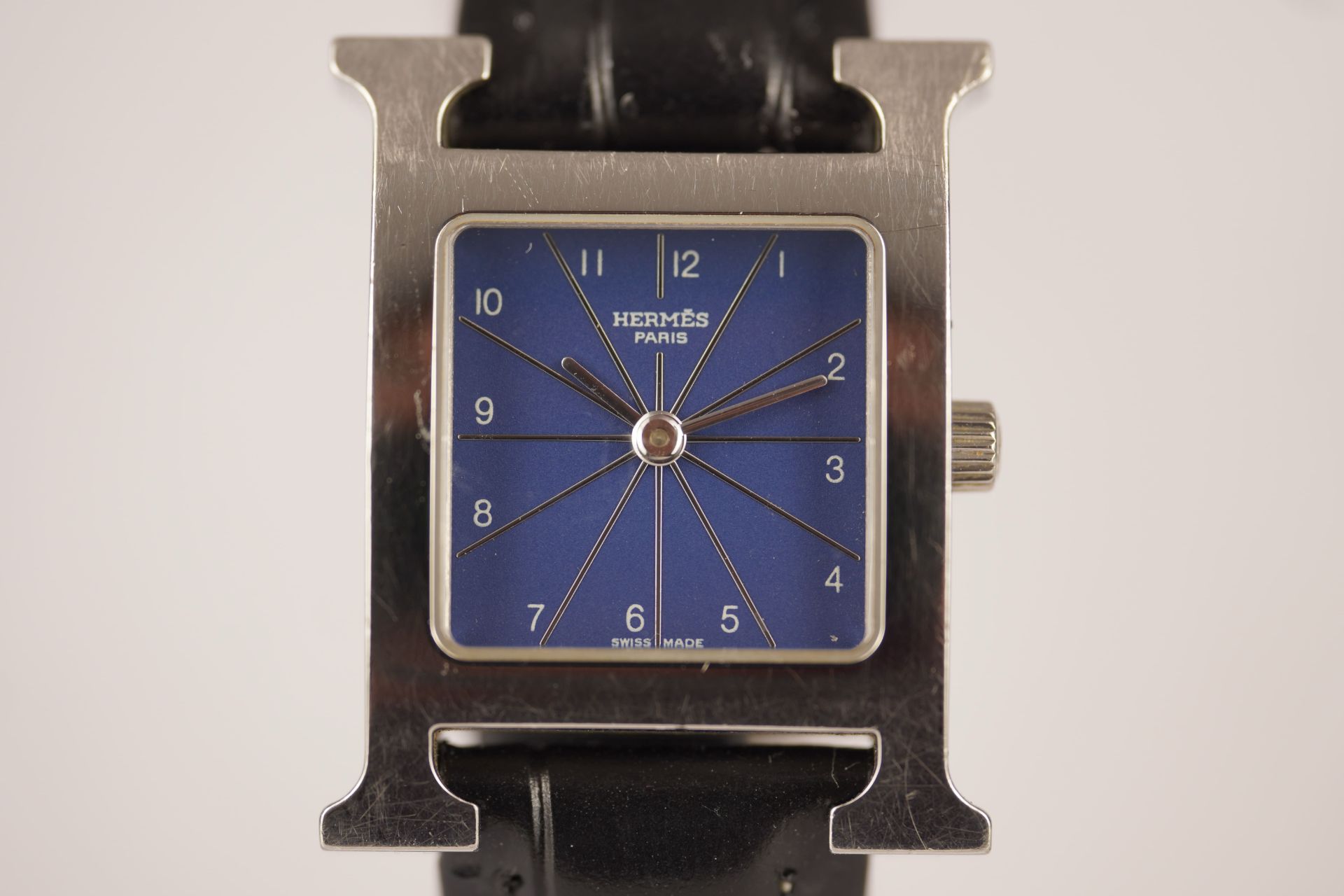 Découvrez l’élégance intemporelle de la montre Hermès Heure H, référence commerciale HH1.210. Conçue pour la femme moderne, cette pièce iconique apporte une touche de raffinement à chaque poignet. Son boîtier en acier, au diamètre délicat de 21.1mm et d’une épaisseur de 6.4mm, abrite un mouvement à quartz d’une précision remarquable. Le bracelet en cuir noir non-original, agrémenté d’une boucle ardillon également non-originale, complète harmonieusement l’ensemble. Présentée en bon état, cette montre Hermès Heure H est un témoignage du style distinctif de la maison. Elle est proposée avec une garantie de 12 mois.