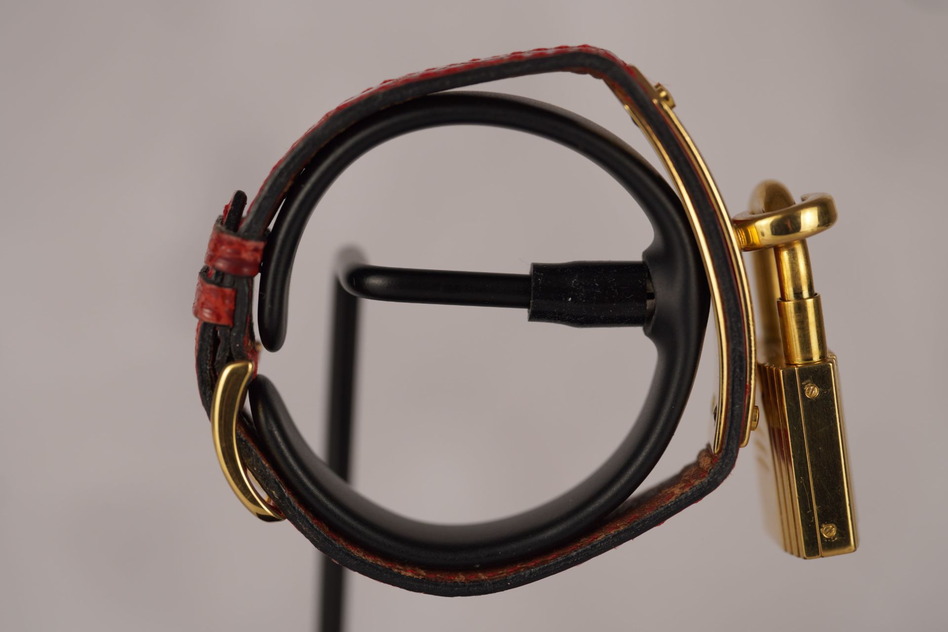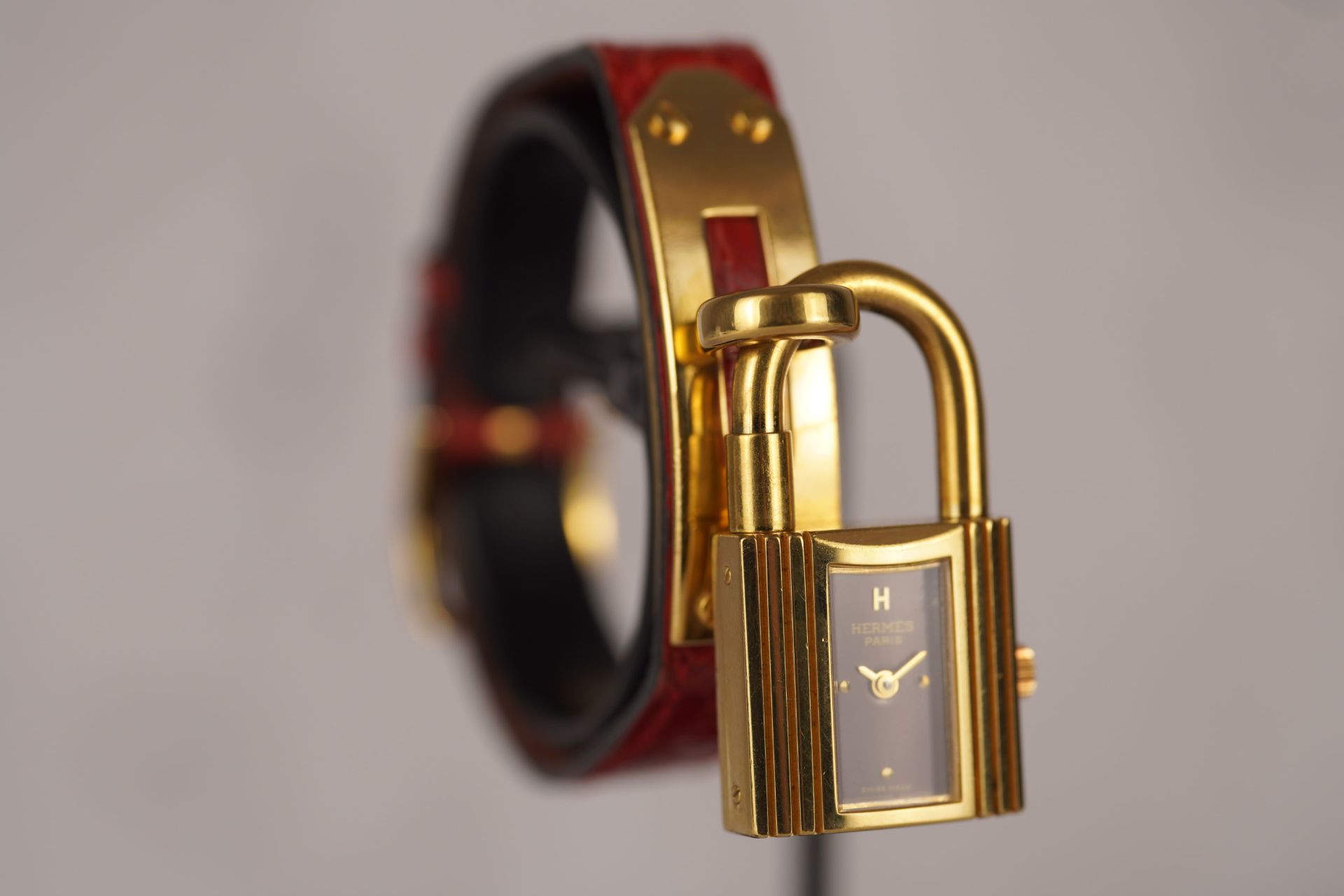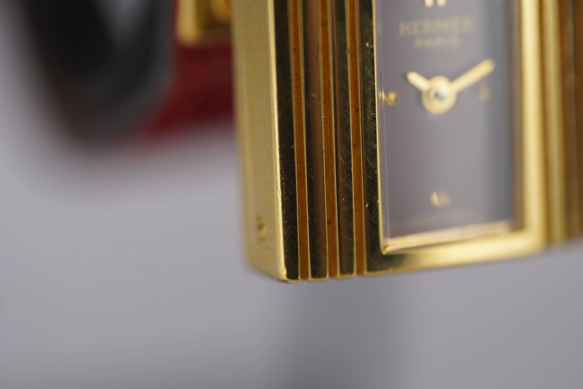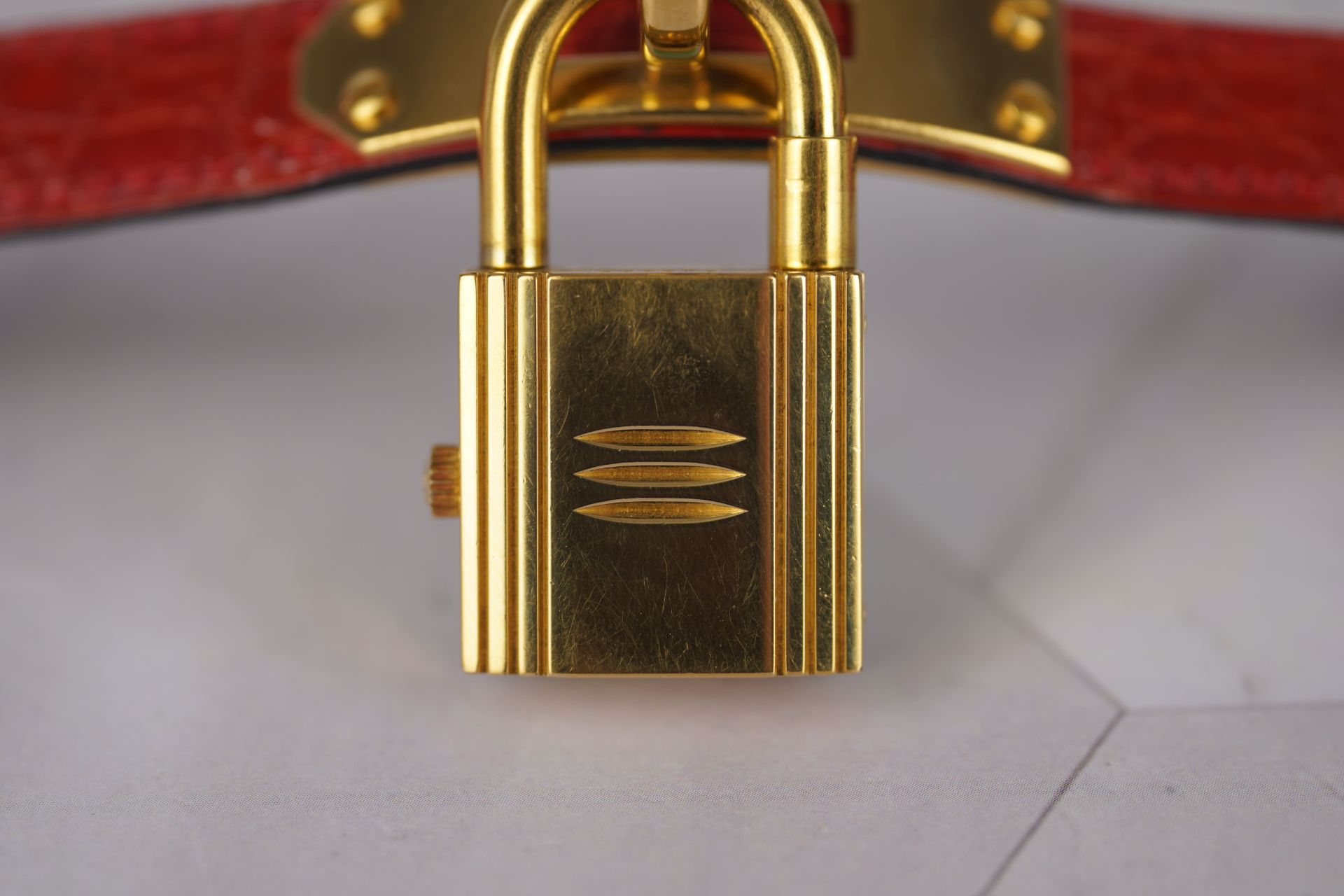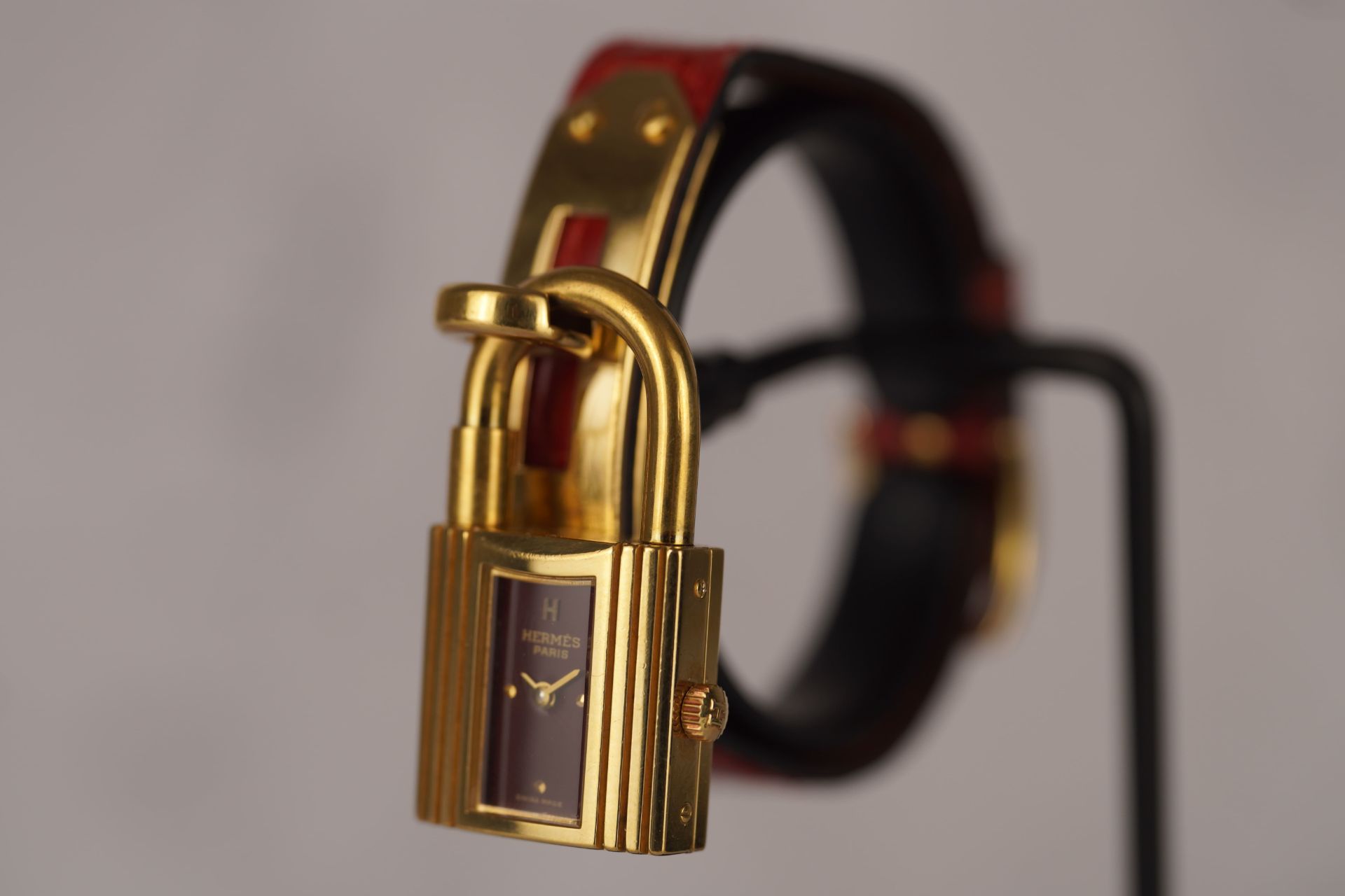 Découvrez la montre Hermès Kelly (Réf. KE1.210), un emblème intemporel de l’élégance féminine. Son boîtier plaqué or de 20 mm, d’une finesse de 8,6 mm, renferme un mouvement à quartz précis, alliant raffinement et fiabilité. Cette pièce est sublimée par son bracelet en cuir bordeaux d’origine, fermement maintenu par sa boucle ardillon, elle aussi d’origine, apportant une touche de couleur et de luxe. Livrée avec son coffret, cette montre en bon état est une invitation à adopter le style distinctif d’Hermès. Elle bénéficie d’une garantie de 12 mois.