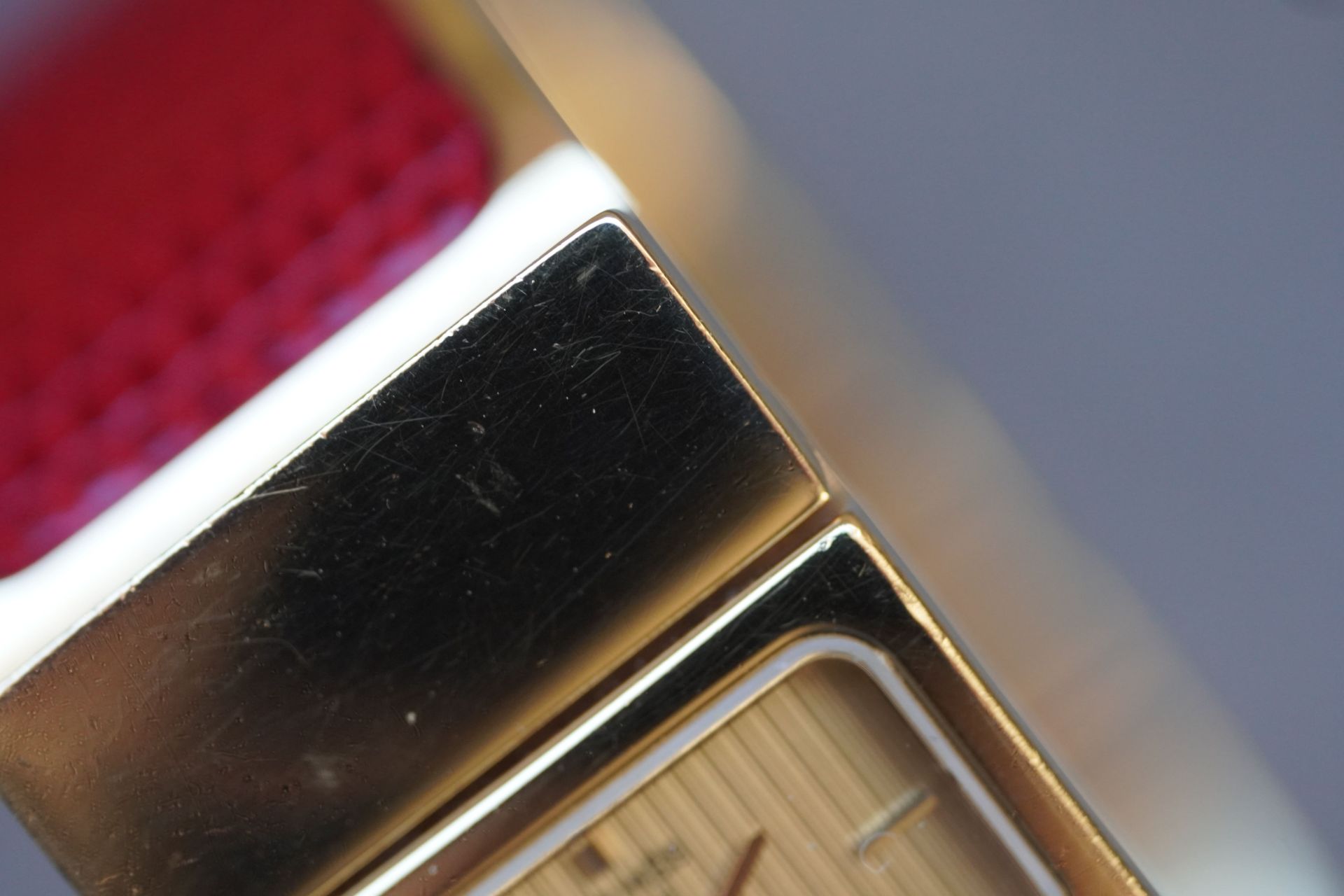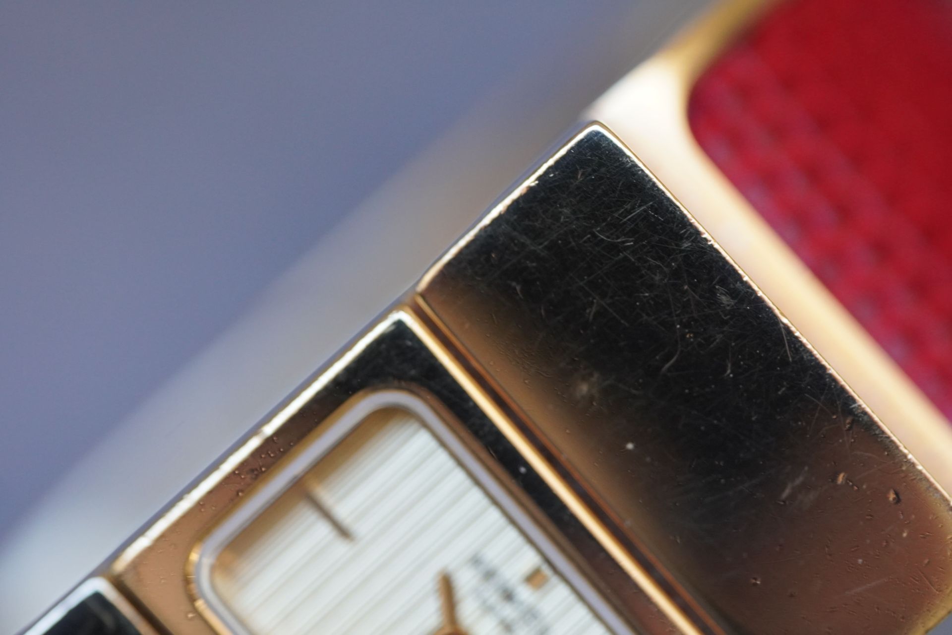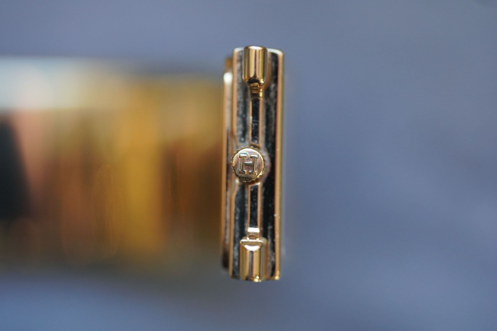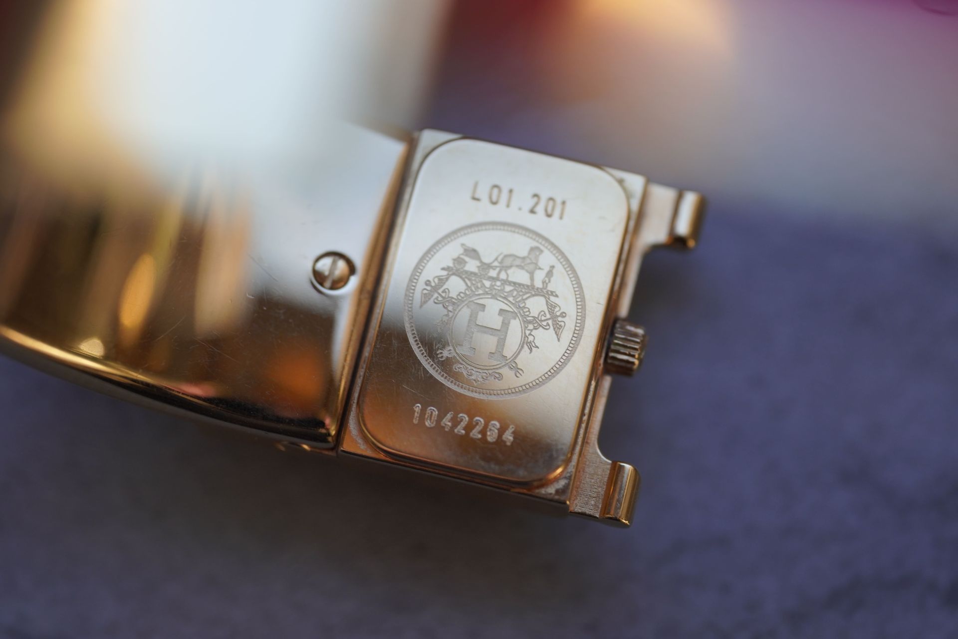 Découvrez l’élégance intemporelle avec cette montre Hermès Loquet, référence LO1.201. Conçue pour la femme moderne, elle abrite un mouvement à quartz précis dans son boîtier plaqué or de 19 mm de diamètre et 5.1 mm d’épaisseur. Son bracelet original en acier, avec une touche de cuir d’un profond bordeaux, s’harmonise parfaitement avec le boîtier, et est sécurisé par un fermoir bijoux original. Acquise en 1997, elle est livrée complète et bénéficie d’une garantie de 12 mois.