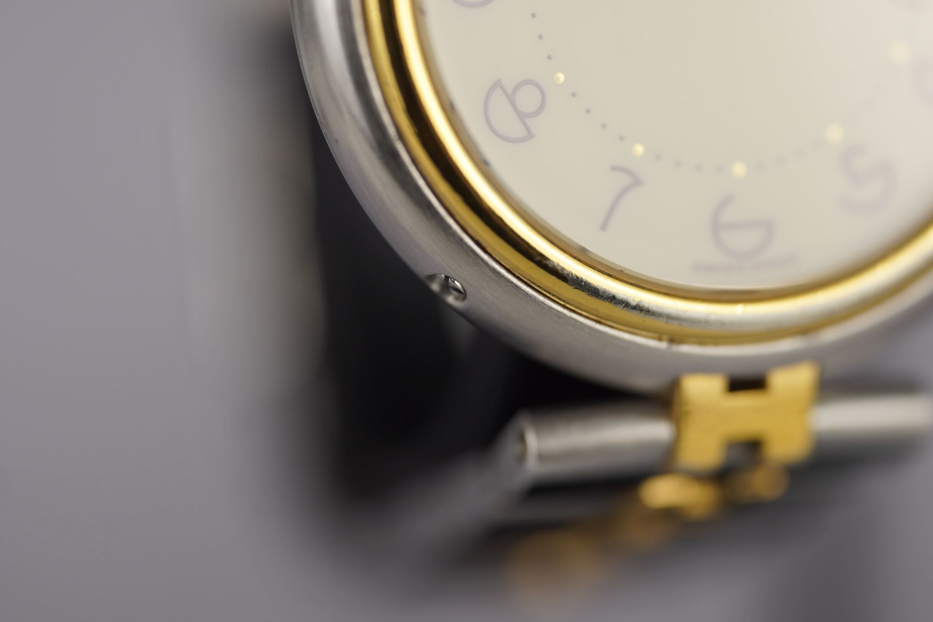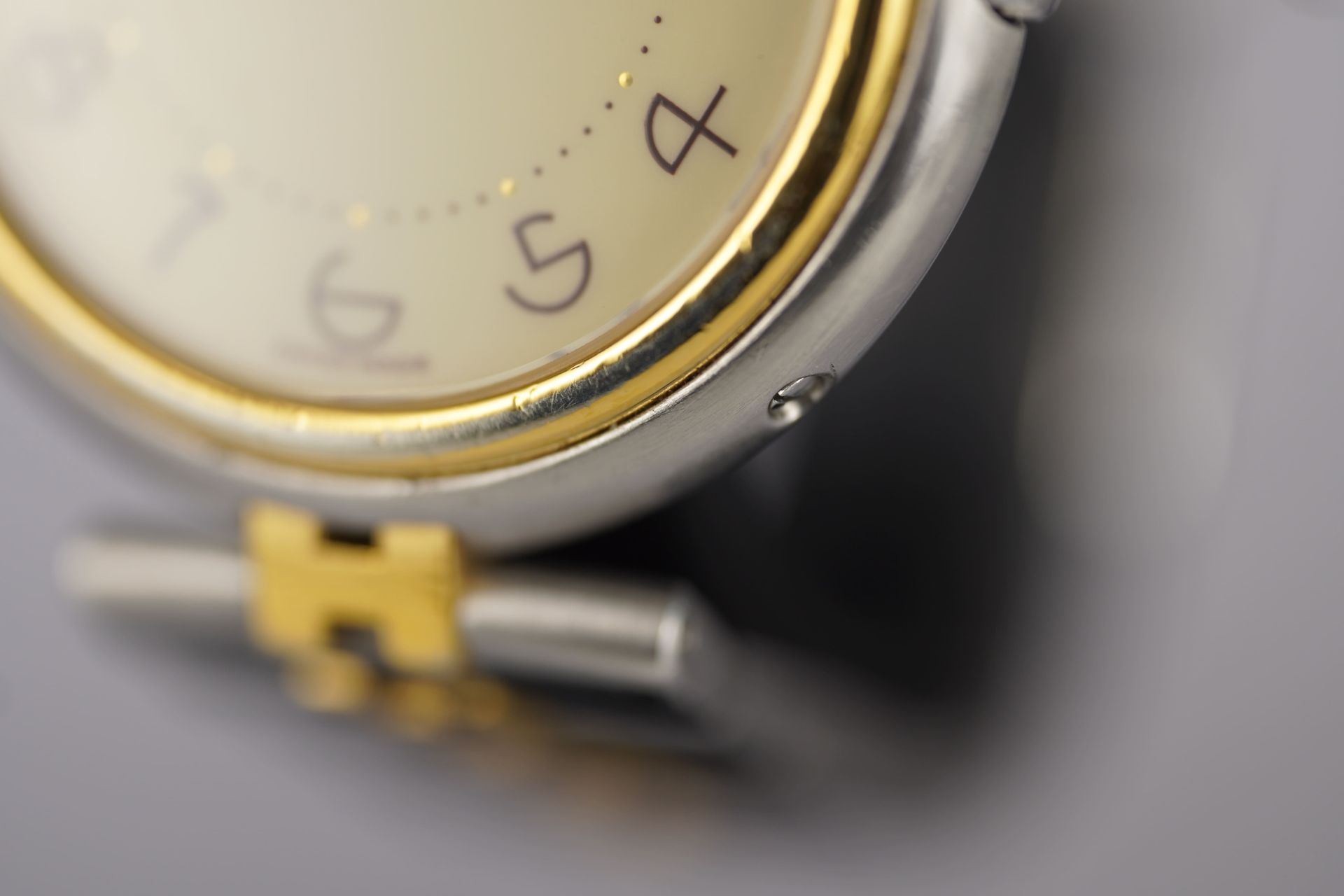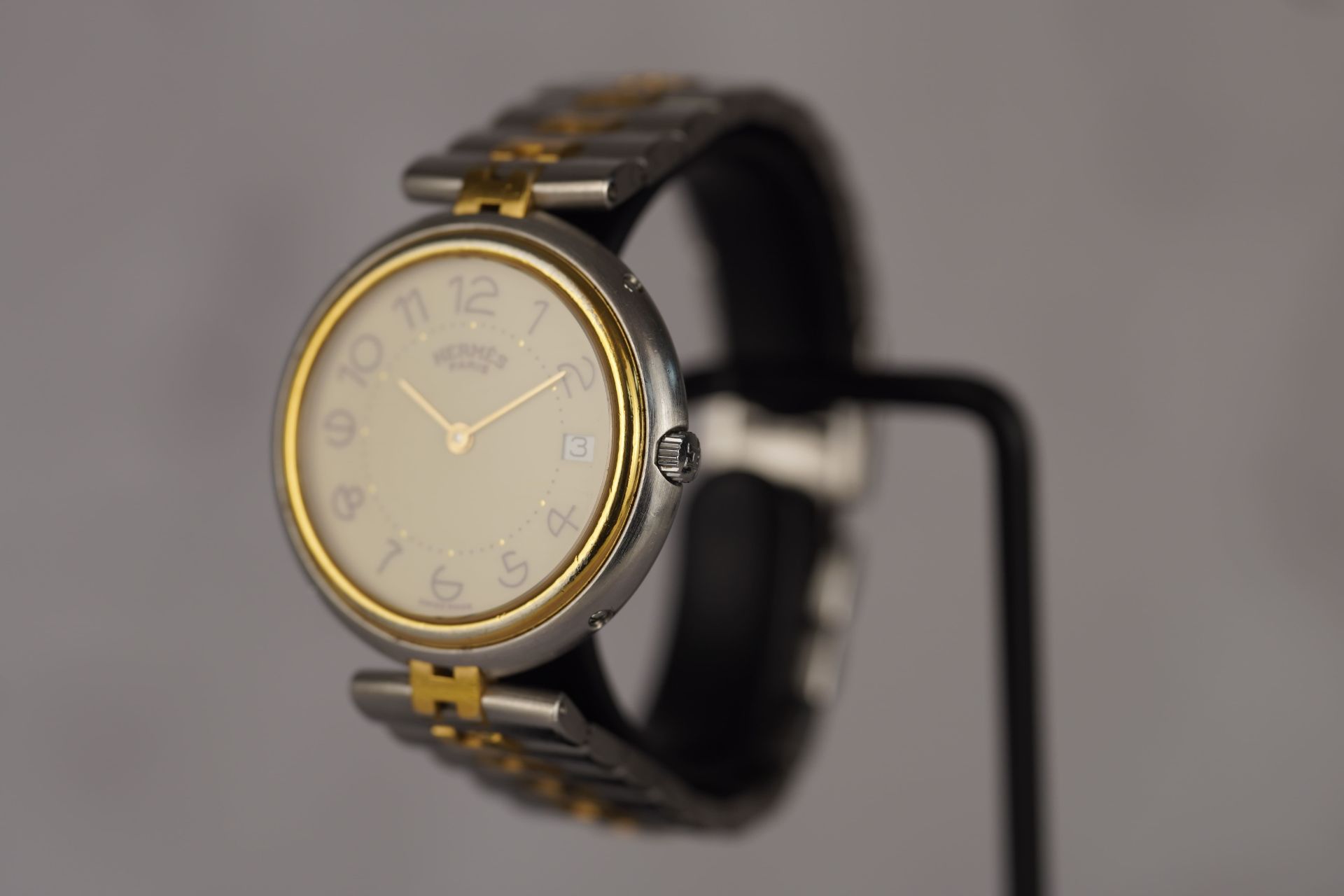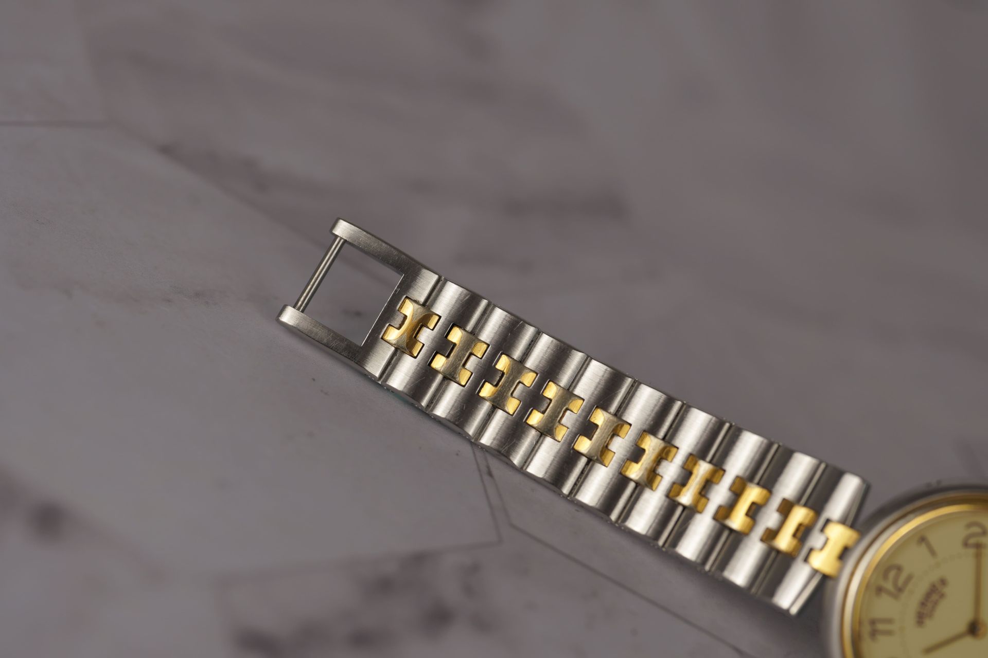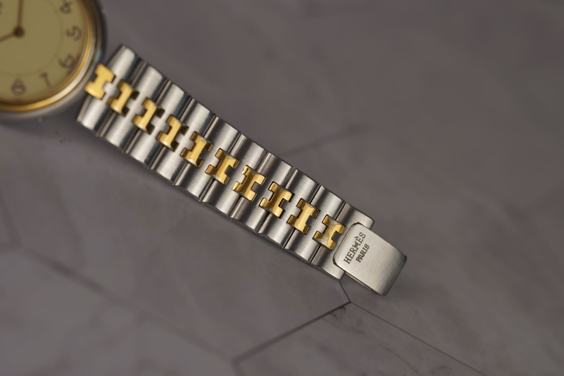Découvrez la finesse et l’élégance intemporelle de la montre Hermès Profile, référence 80 03. Conçue pour la femme moderne, cette pièce horlogère se distingue par son boîtier en acier de 32.9mm, d’une épaisseur remarquable de seulement 5.7mm. Le mouvement à Quartz assure une précision fiable. Son bracelet original en acier bicolore Or/Acier, doté d’un fermoir bijoux également original, offre un confort et un style distinctifs. Avec une étanchéité de 3 ATM et une garantie de 12 mois, cette montre en bon état est une addition sophistiquée à toute collection.