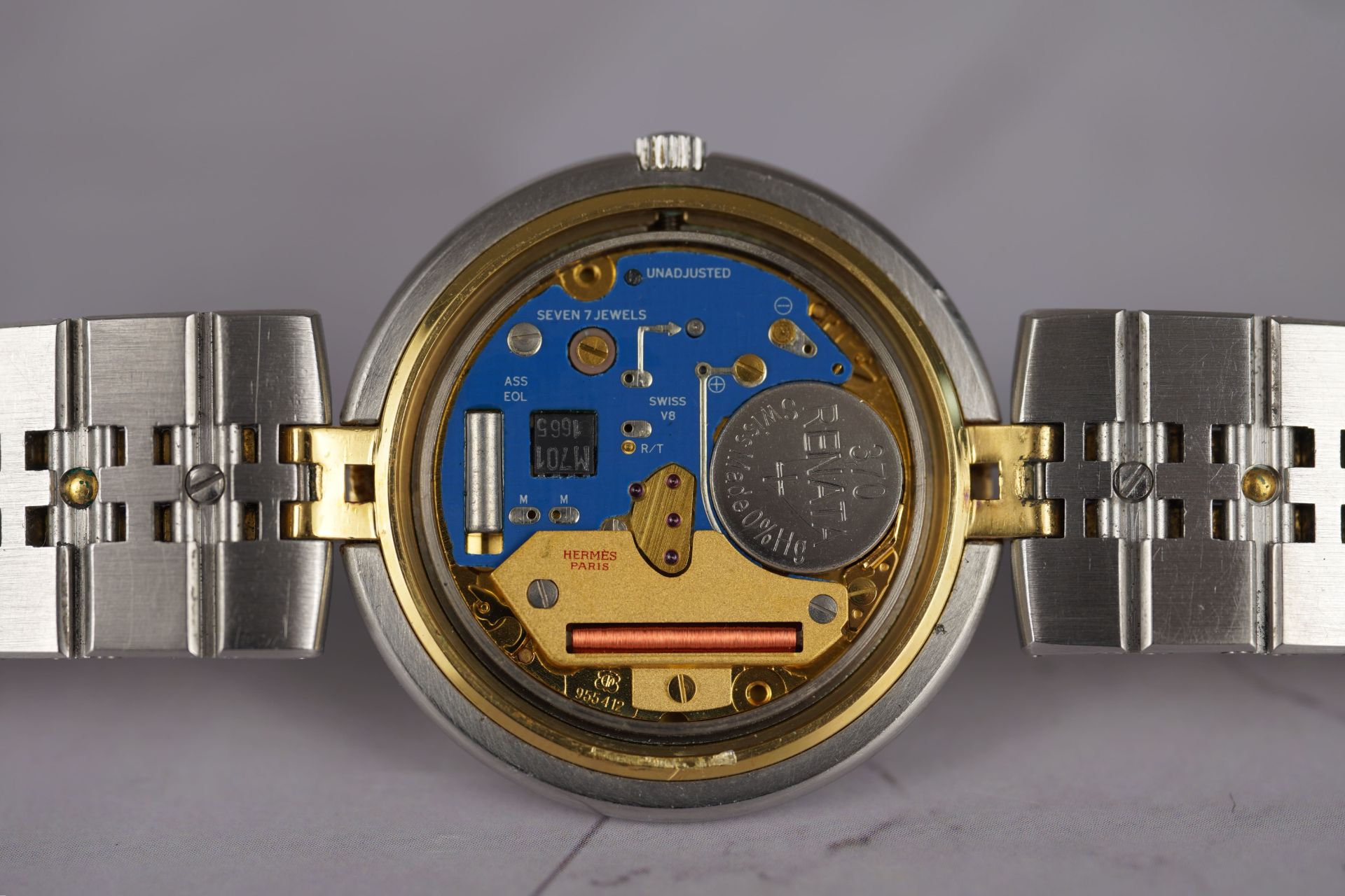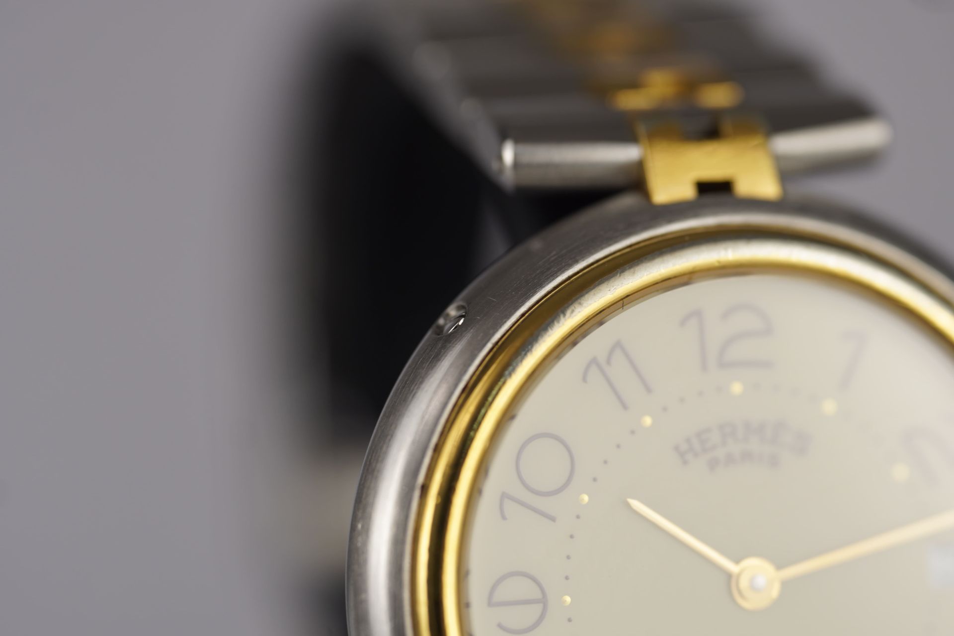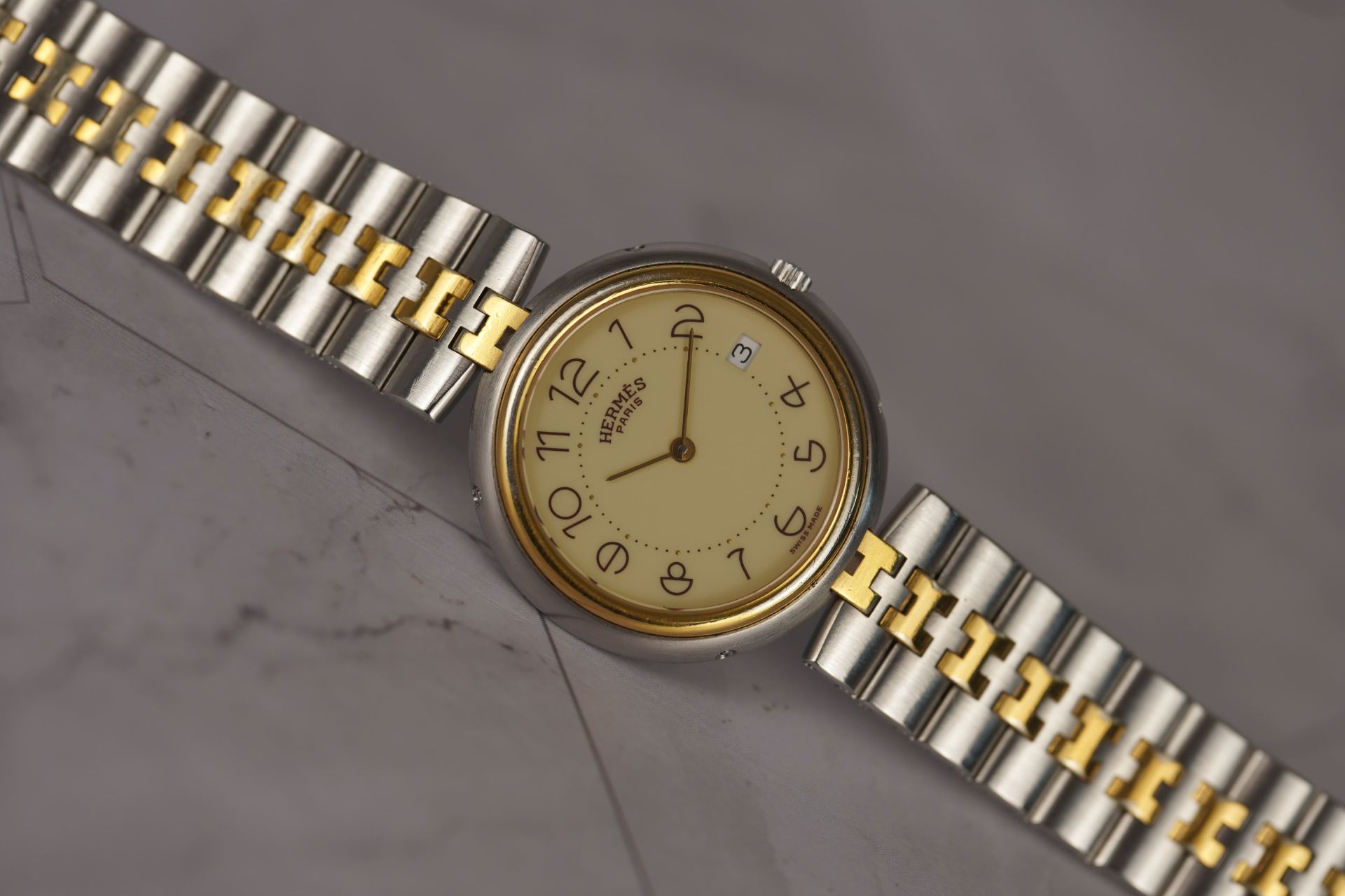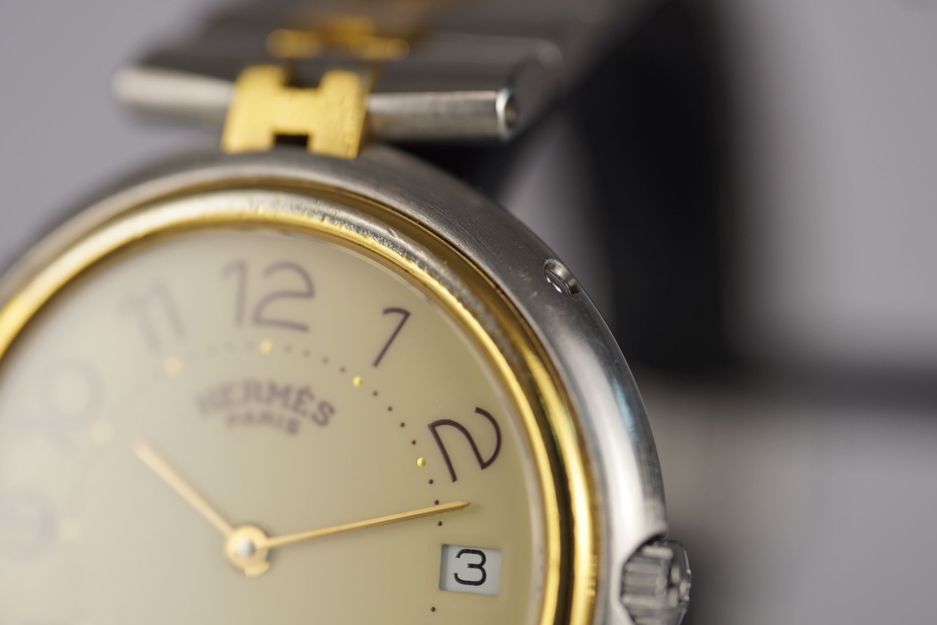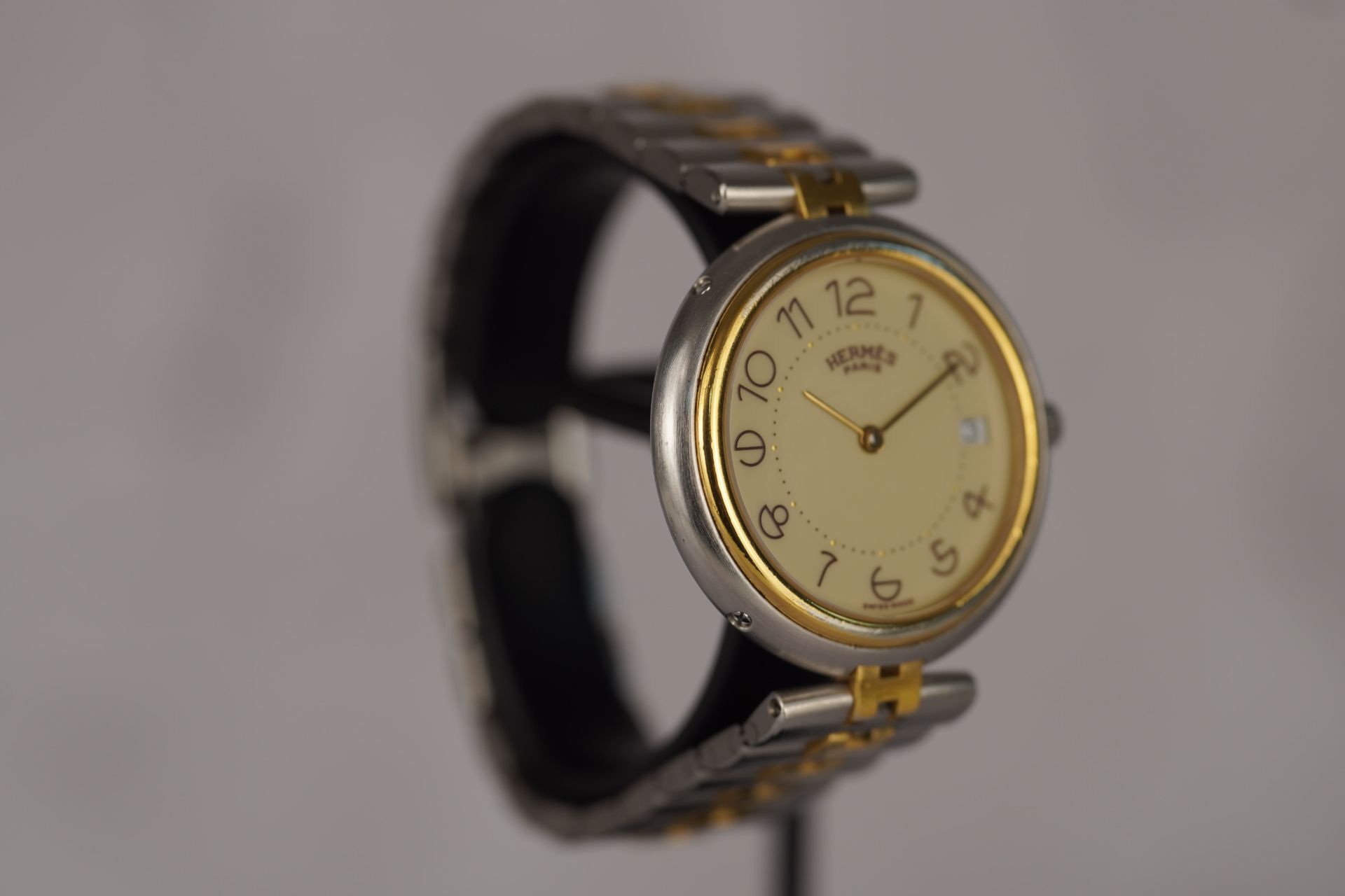 Découvrez la finesse et l’élégance intemporelle de la montre Hermès Profile, référence 80 03. Conçue pour la femme moderne, cette pièce horlogère se distingue par son boîtier en acier de 32.9mm, d’une épaisseur remarquable de seulement 5.7mm. Le mouvement à Quartz assure une précision fiable. Son bracelet original en acier bicolore Or/Acier, doté d’un fermoir bijoux également original, offre un confort et un style distinctifs. Avec une étanchéité de 3 ATM et une garantie de 12 mois, cette montre en bon état est une addition sophistiquée à toute collection.