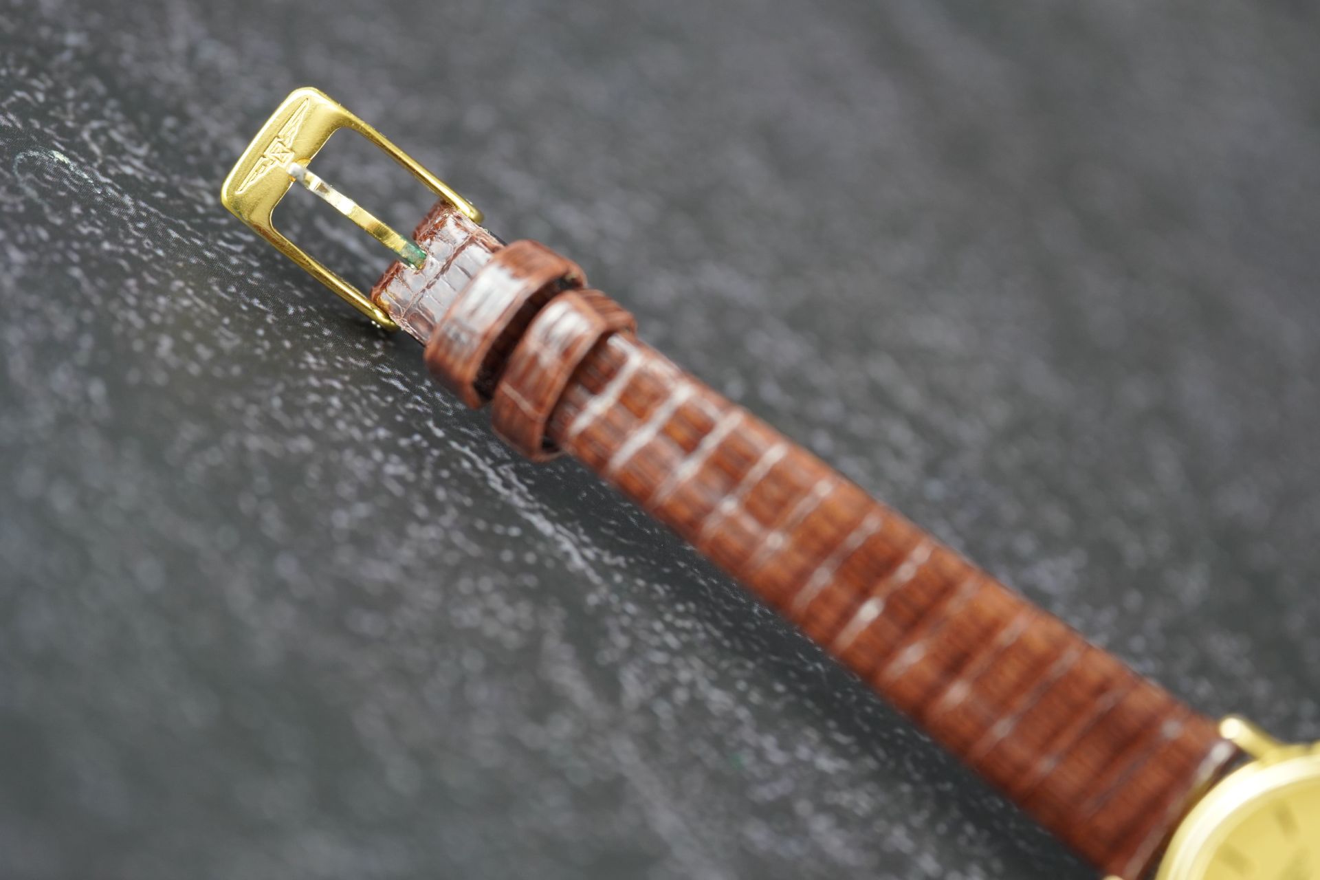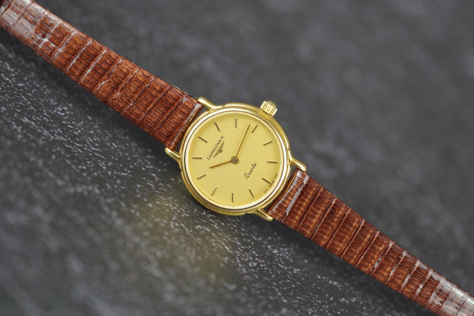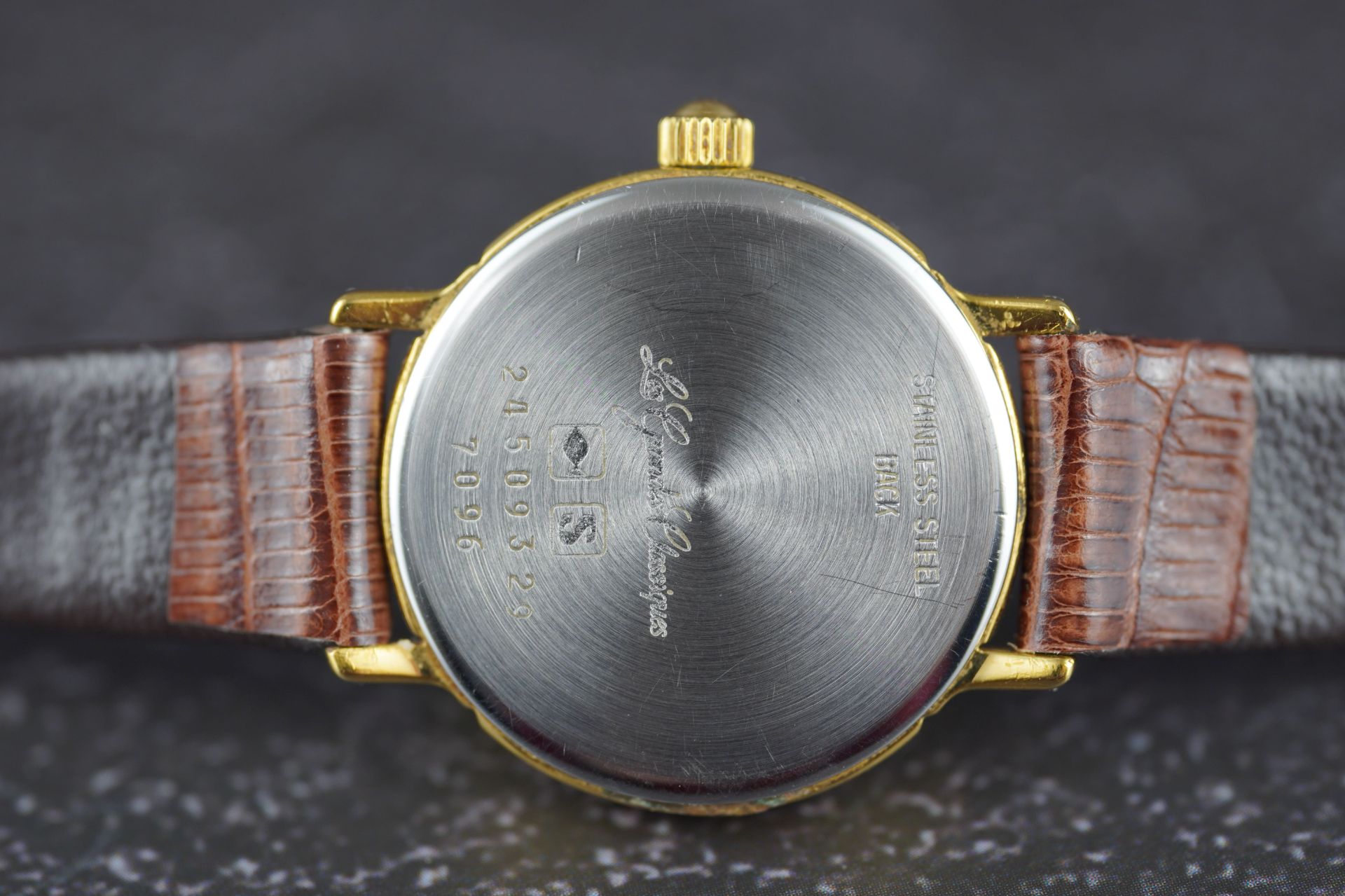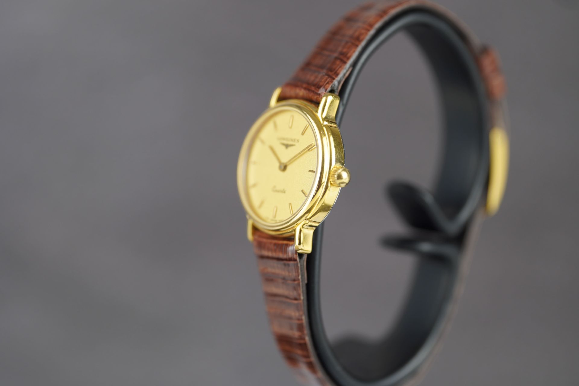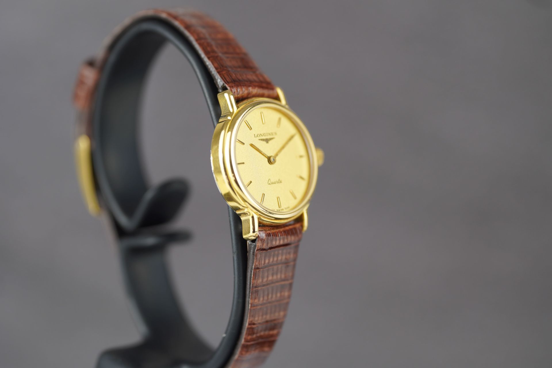Découvrez l’élégance intemporelle avec cette montre Longines Les Grandes Classiques, référence commerciale 153 7096, une pièce parfaite pour la femme moderne. Son boîtier plaqué or de 23 mm de diamètre et 5.1 mm d’épaisseur abrite un mouvement Quartz précis, symbolisant le raffinement discret. Le cadran, d’une sobriété exquise, est sublimé par un bracelet en cuir brun non-original, doté d’une boucle ardillon non-originale qui assure un port confortable et stylé. Cette montre, présentant un bon état général, offre une étanchéité de 3 ATM. Elle est proposée seule, et bénéficie d’une garantie de 12 mois.