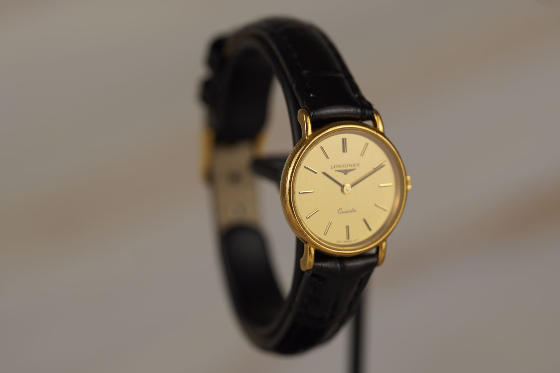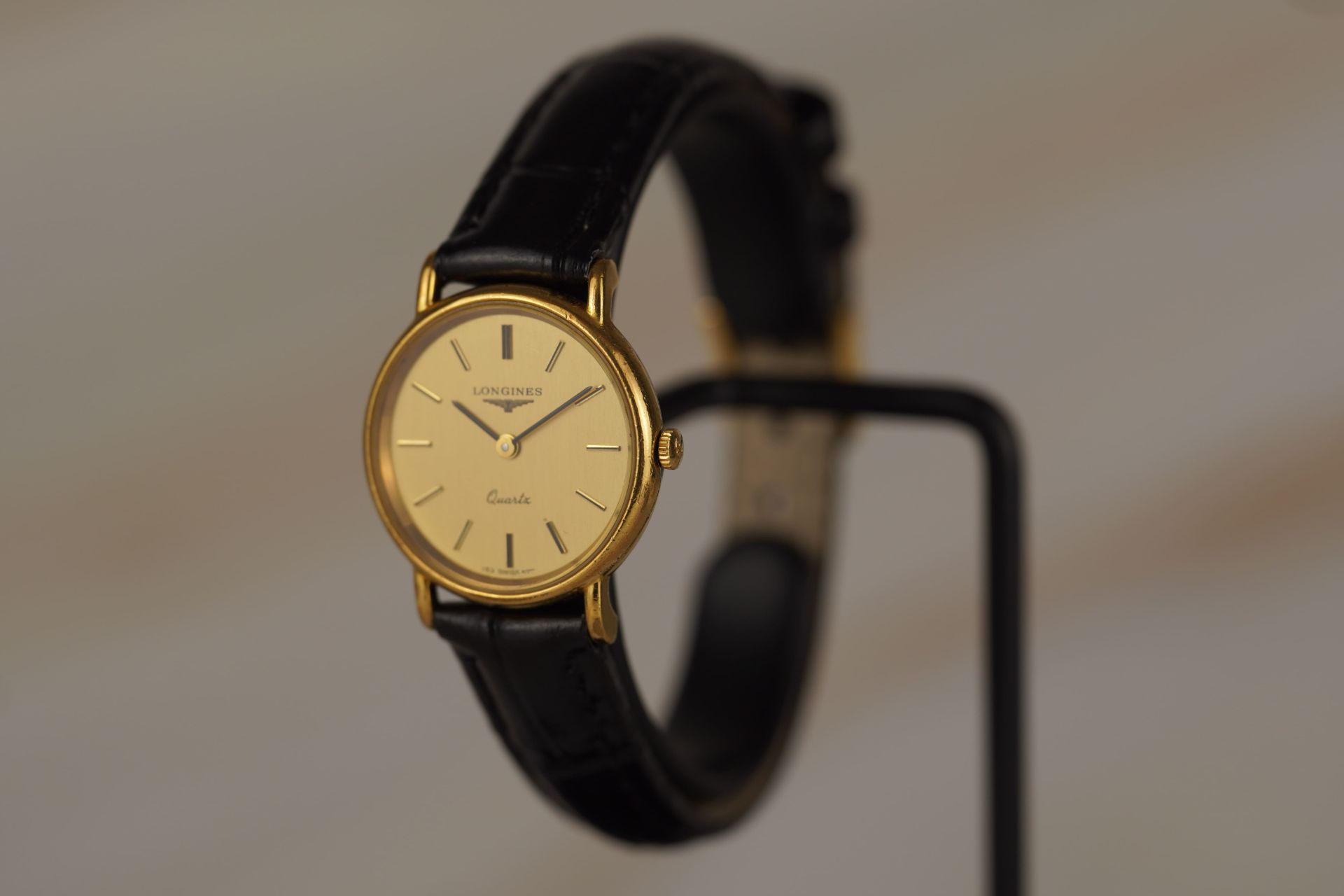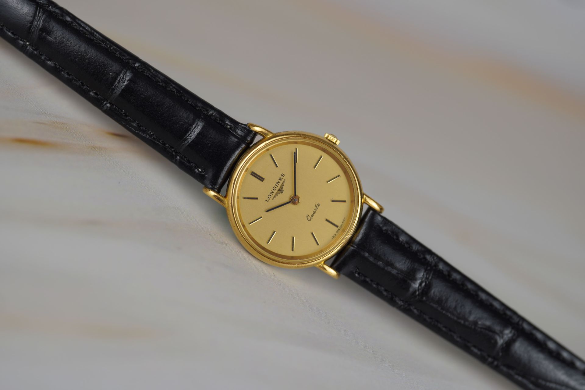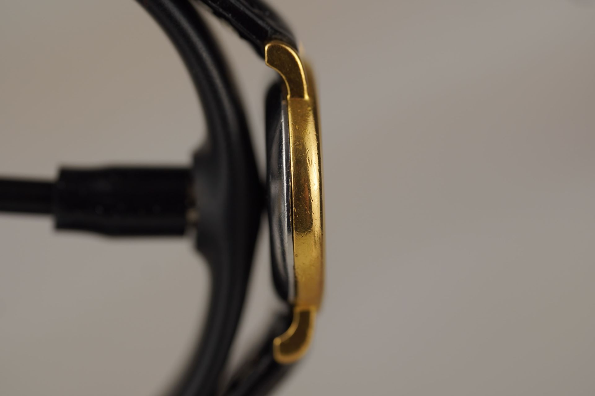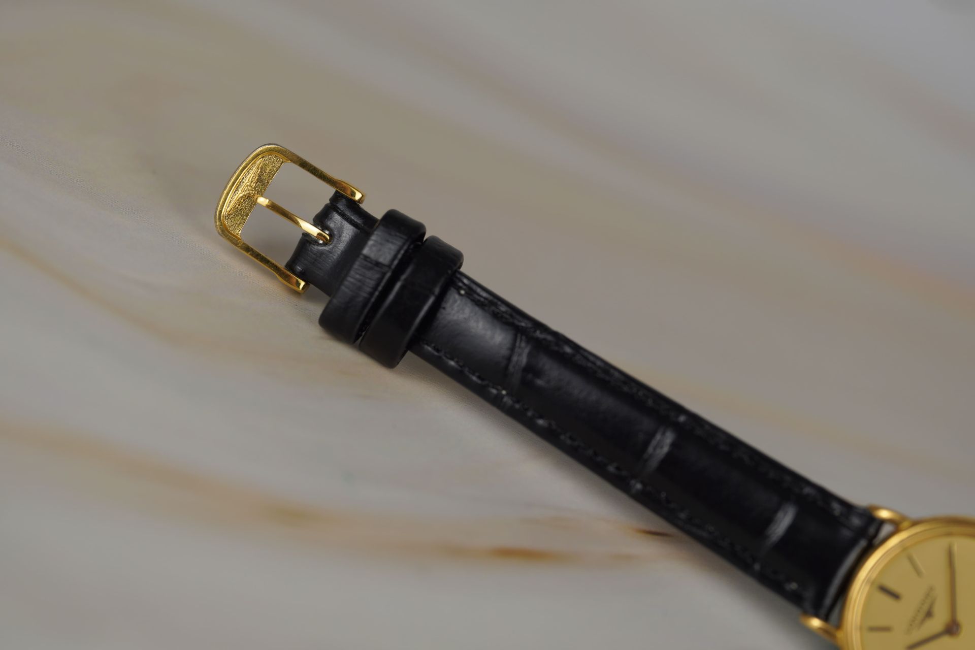 Découvrez l’élégance intemporelle de cette montre Longines Quartz pour femme (Réf. 153 6771). Son boîtier plaqué or de 23.5 mm de diamètre et de seulement 4.8 mm d’épaisseur confère à cette pièce une finesse remarquable et un confort au porter incomparable. Le mouvement précis à Quartz garantit une fiabilité exemplaire. Le bracelet en cuir noir non-original est sublimé par une boucle ardillon originale, assurant un maintien sécurisé et un détail authentique.