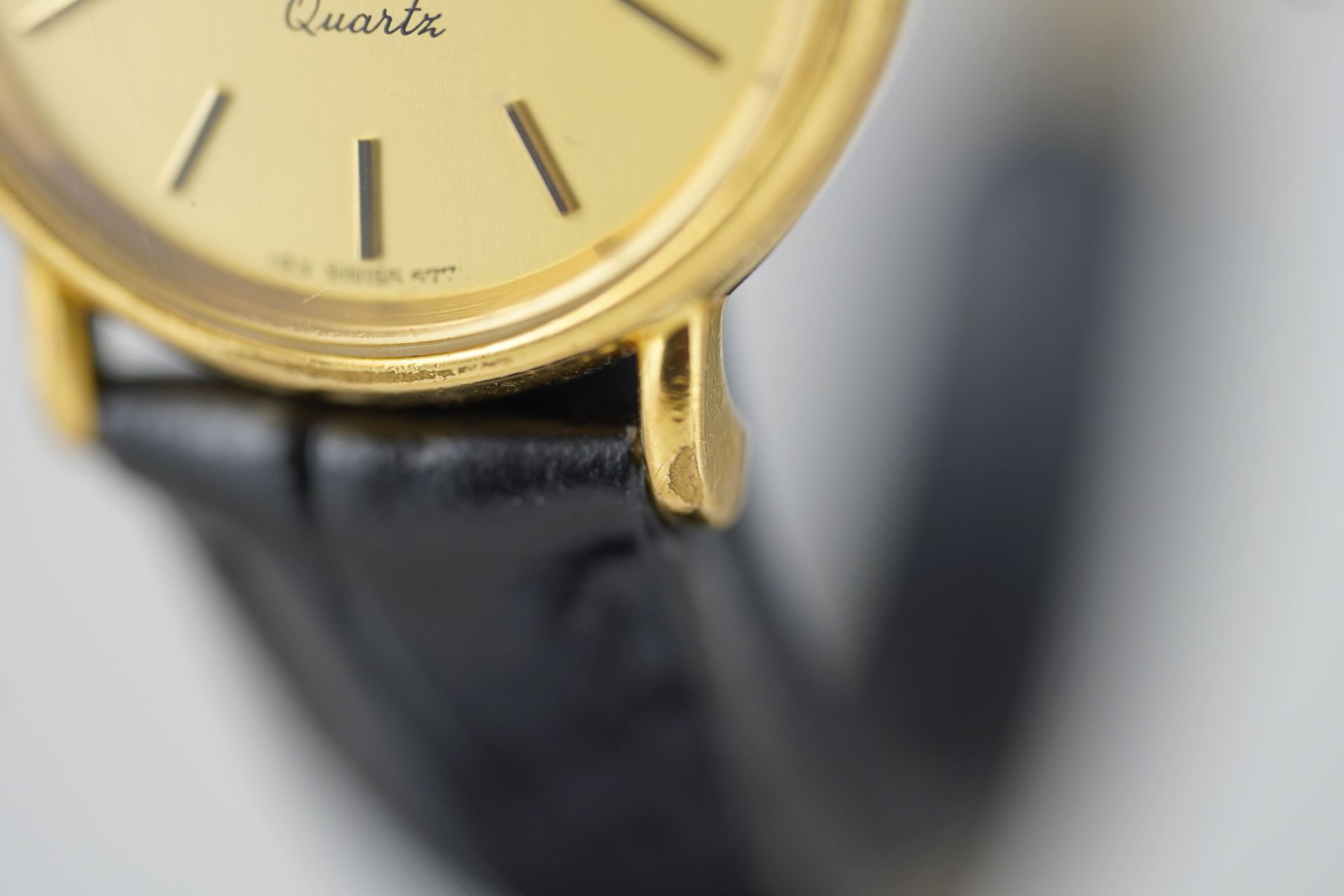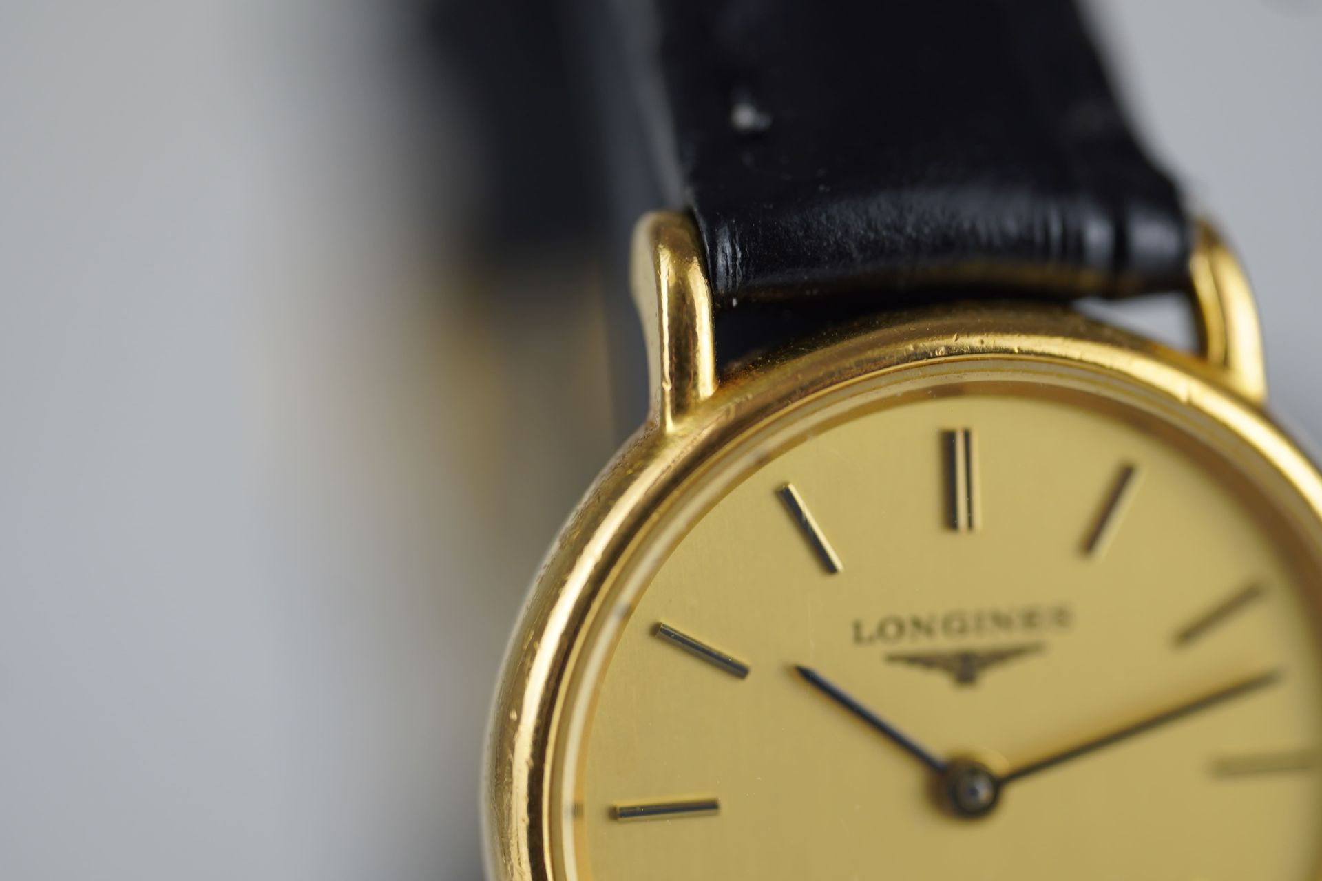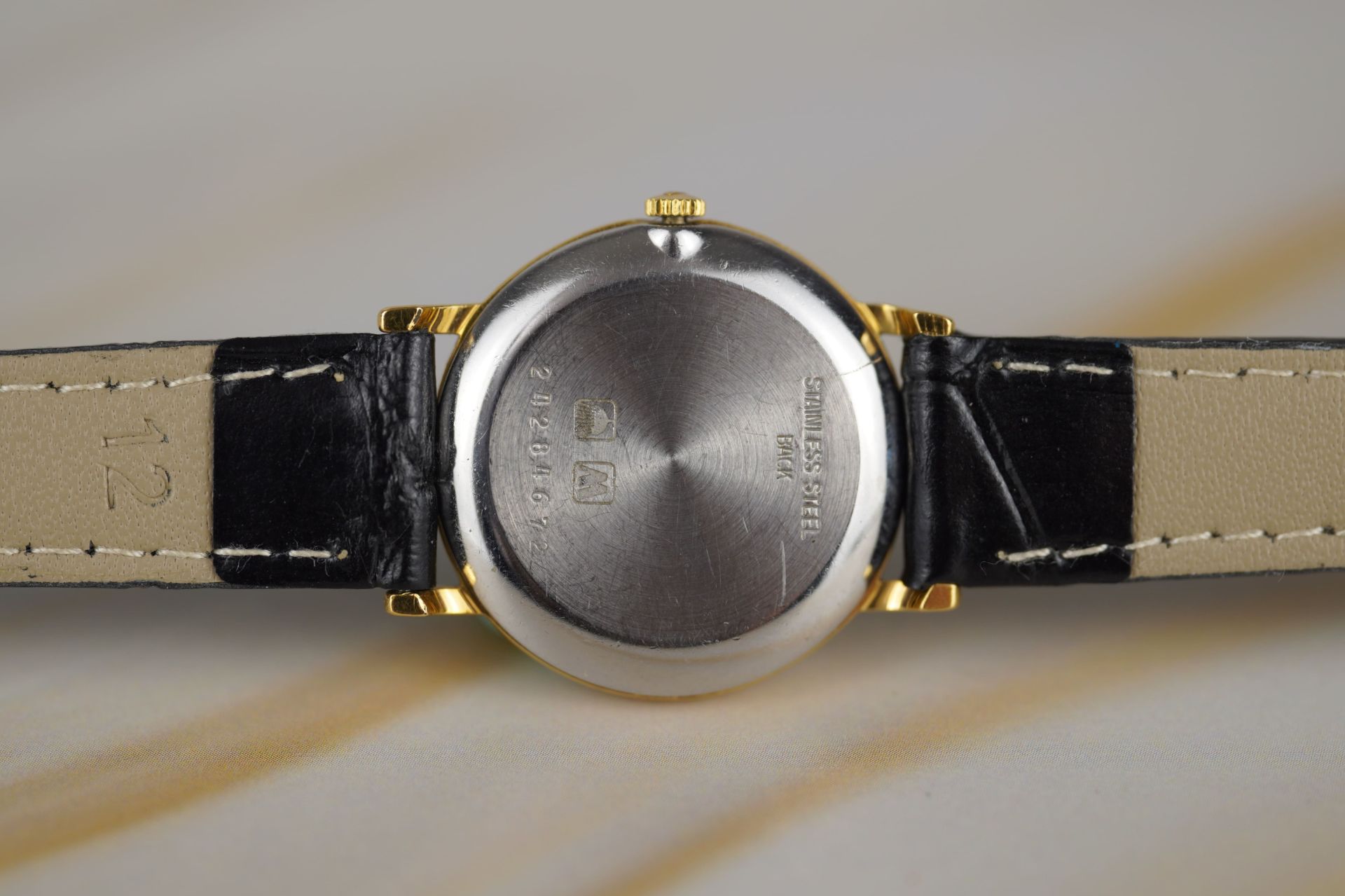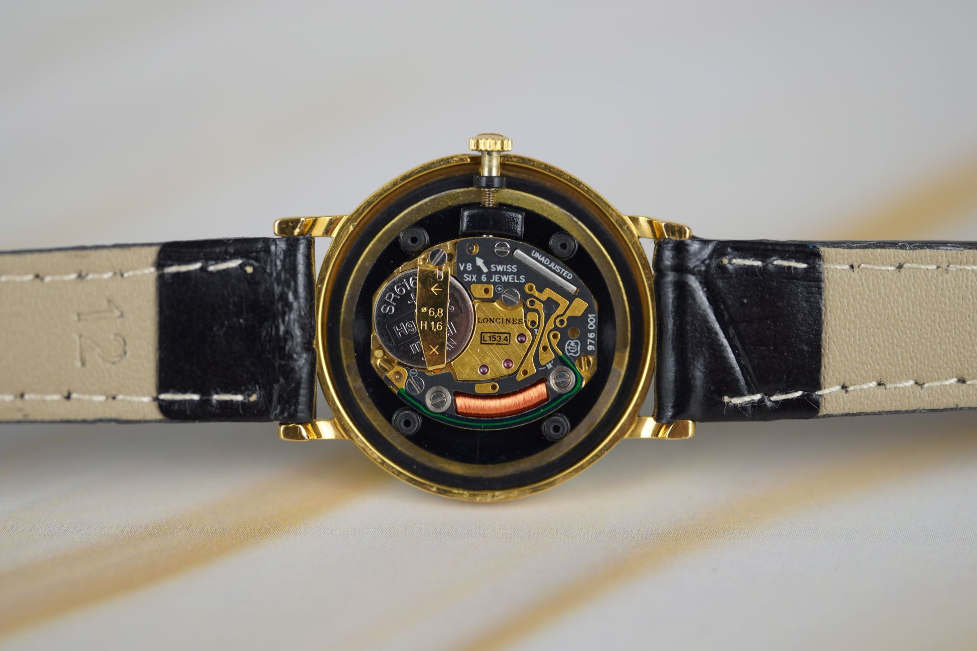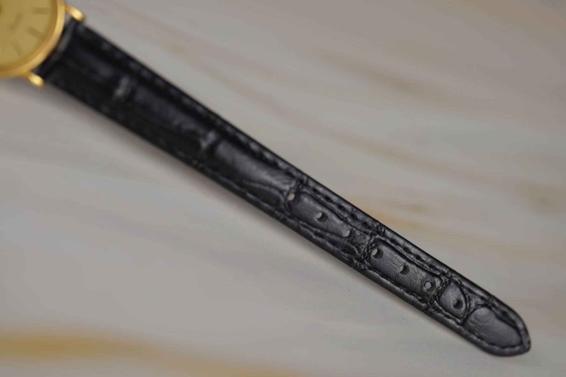 Découvrez l’élégance intemporelle de cette montre Longines Quartz pour femme (Réf. 153 6771). Son boîtier plaqué or de 23.5 mm de diamètre et de seulement 4.8 mm d’épaisseur confère à cette pièce une finesse remarquable et un confort au porter incomparable. Le mouvement précis à Quartz garantit une fiabilité exemplaire. Le bracelet en cuir noir non-original est sublimé par une boucle ardillon originale, assurant un maintien sécurisé et un détail authentique.