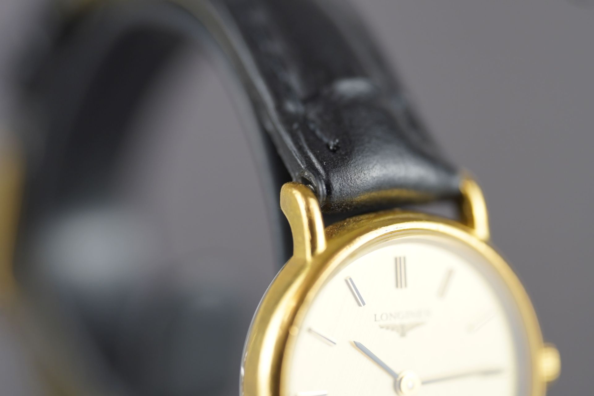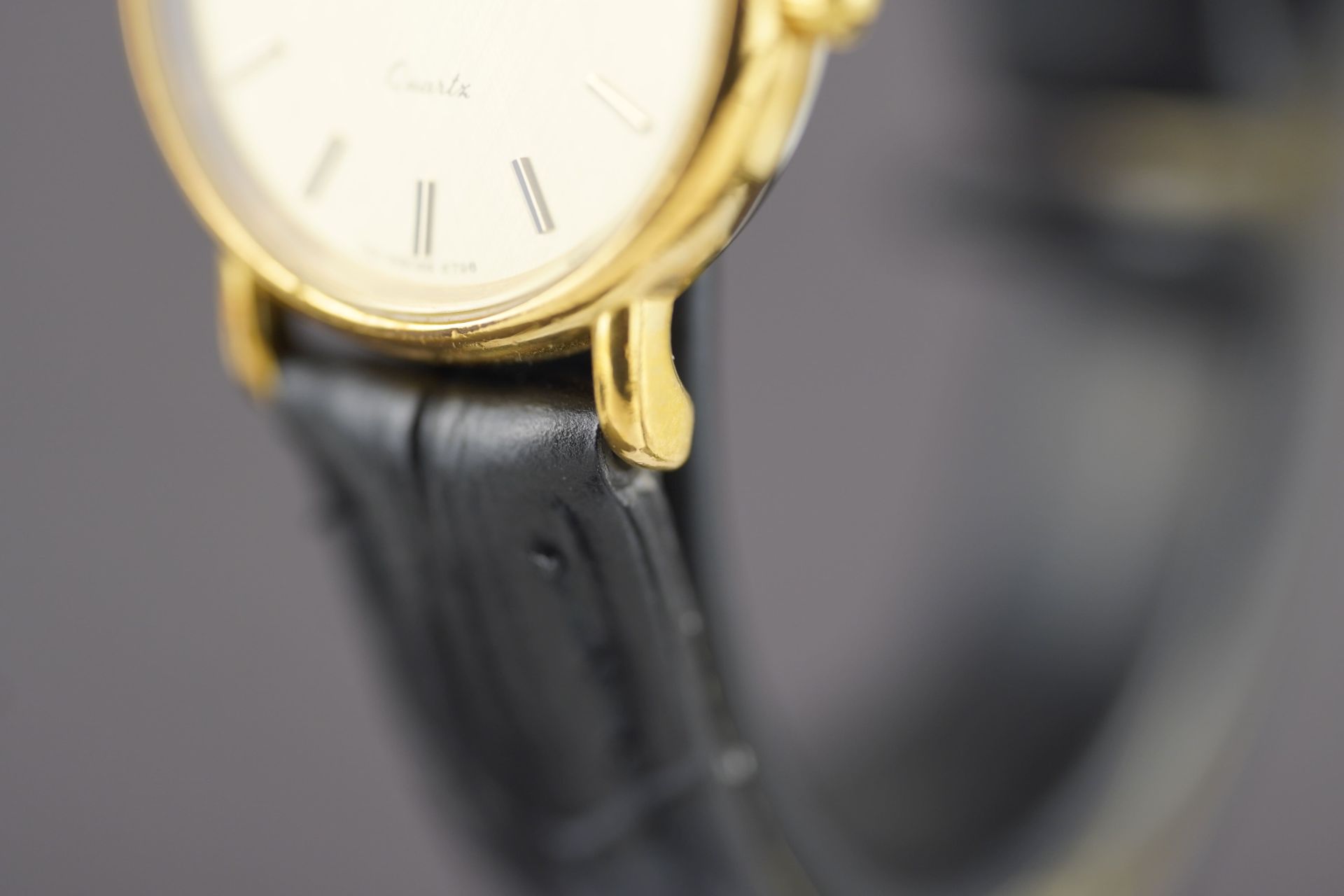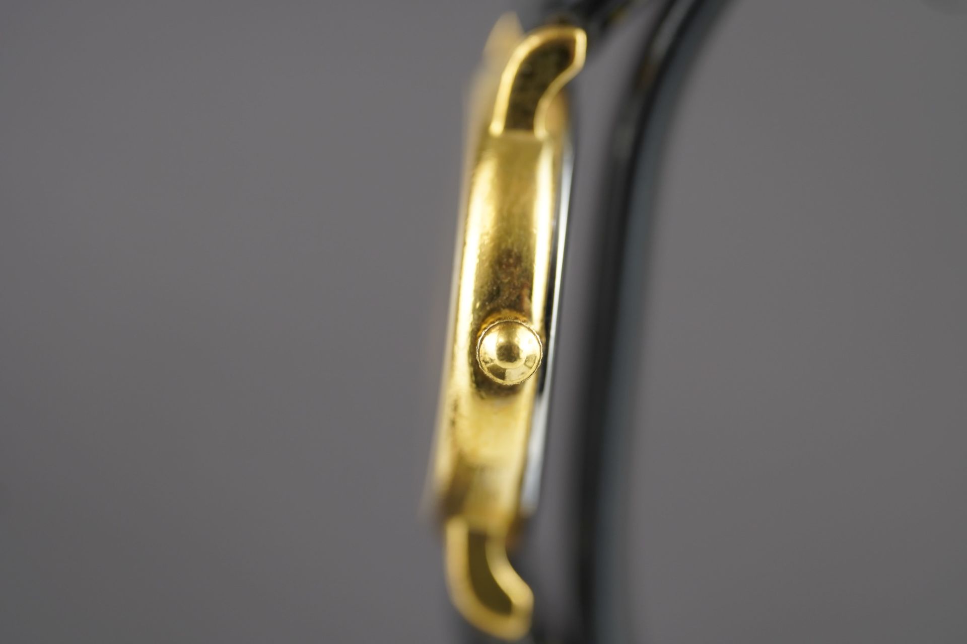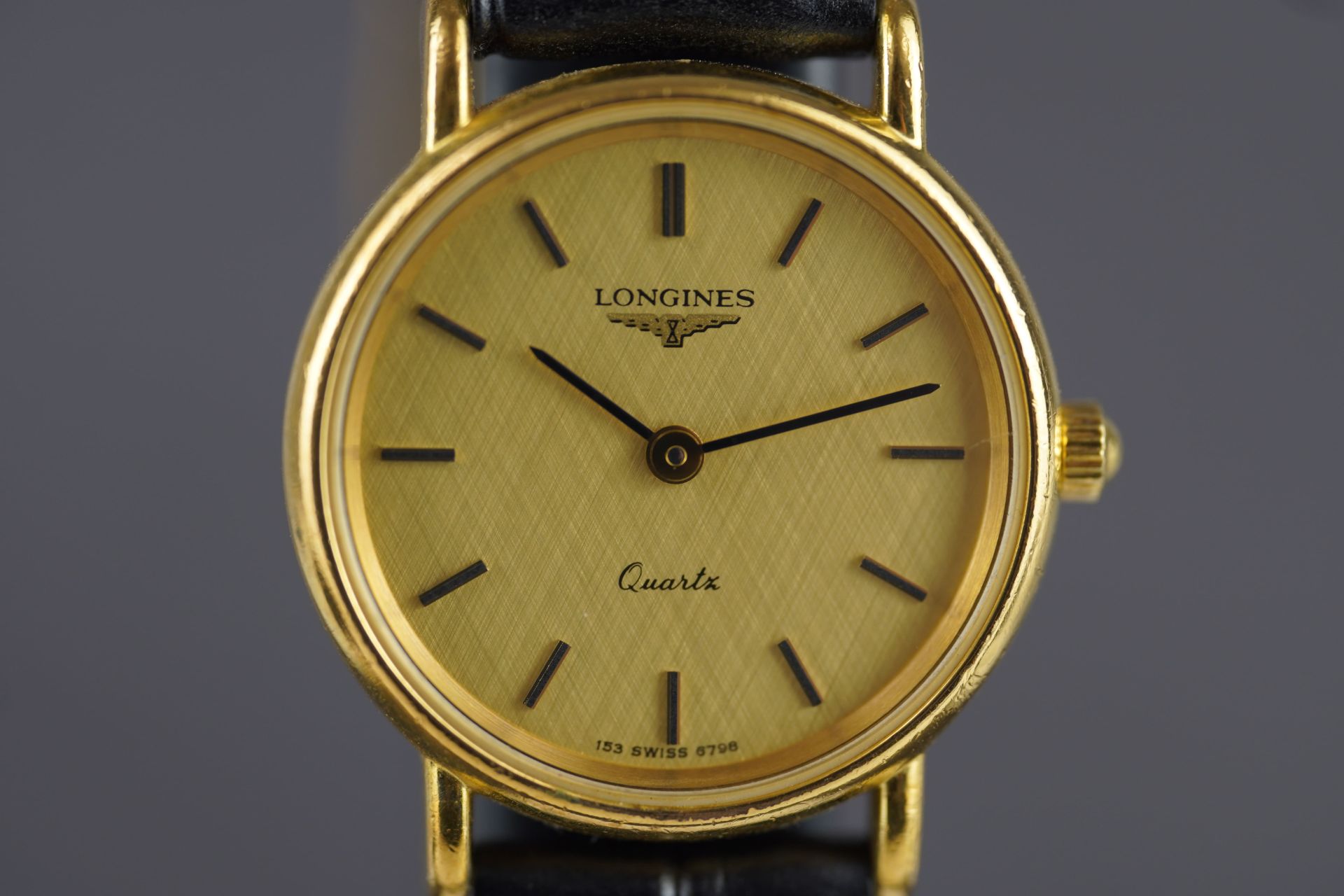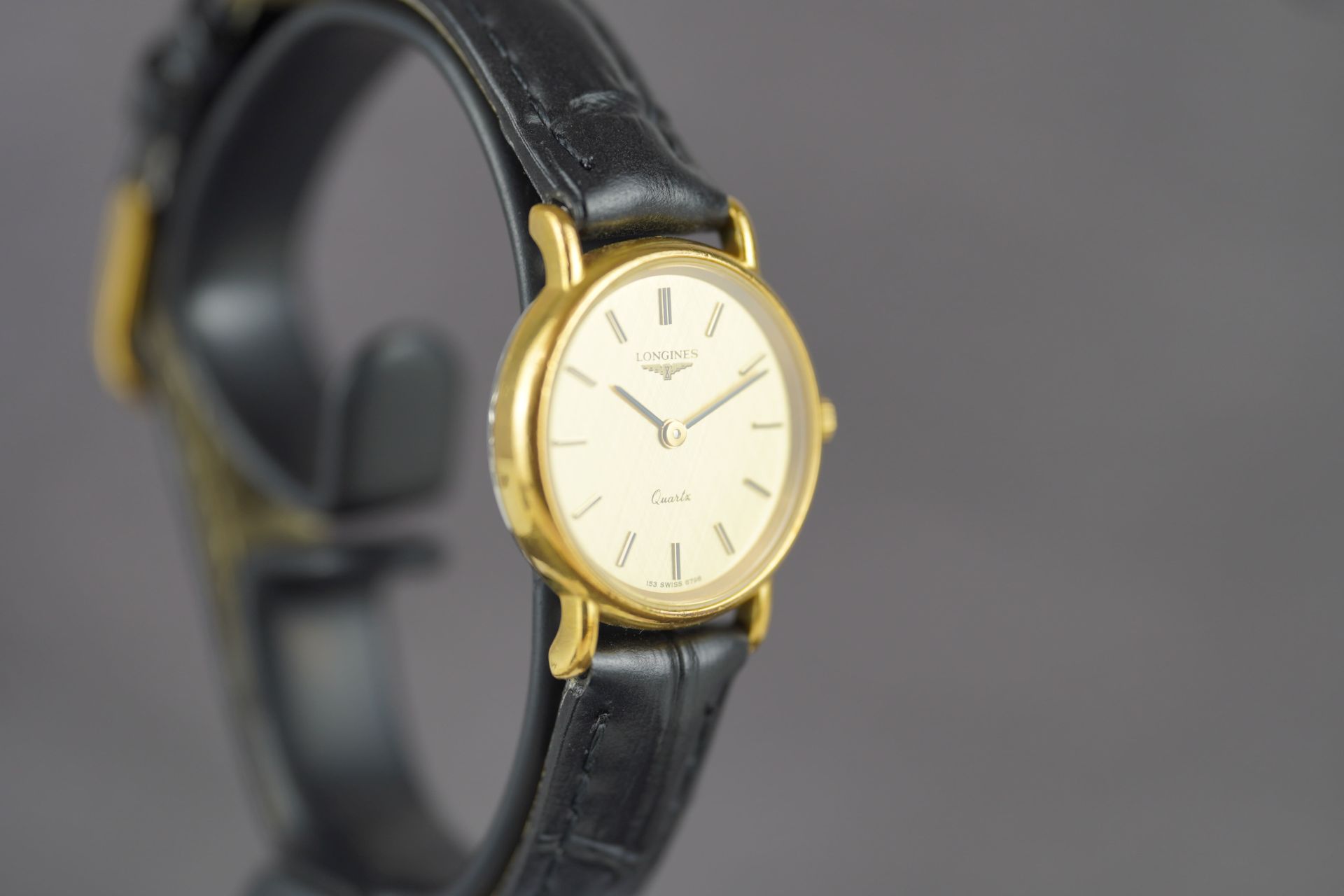 Découvrez l’élégance intemporelle avec cette montre Longines pour femme, Modèle Quartz (réf. 153 6798). Son boîtier délicatement plaqué or, d’un diamètre de 24mm et d’une fine épaisseur de 5mm, abrite un mouvement à quartz d’une précision remarquable. Le cadran, complété par un bracelet en cuir noir (non-original) et une boucle ardillon non originale, confère à cette pièce un charme discret et raffiné.
