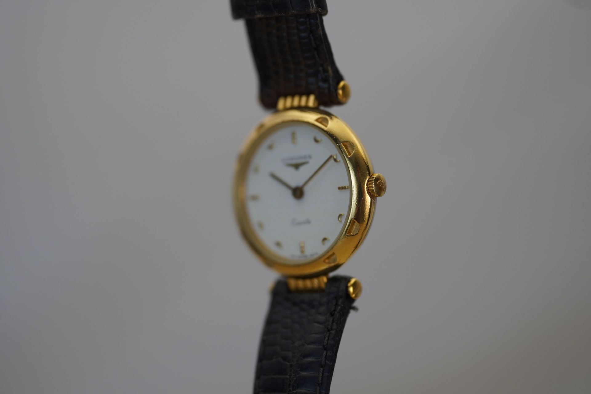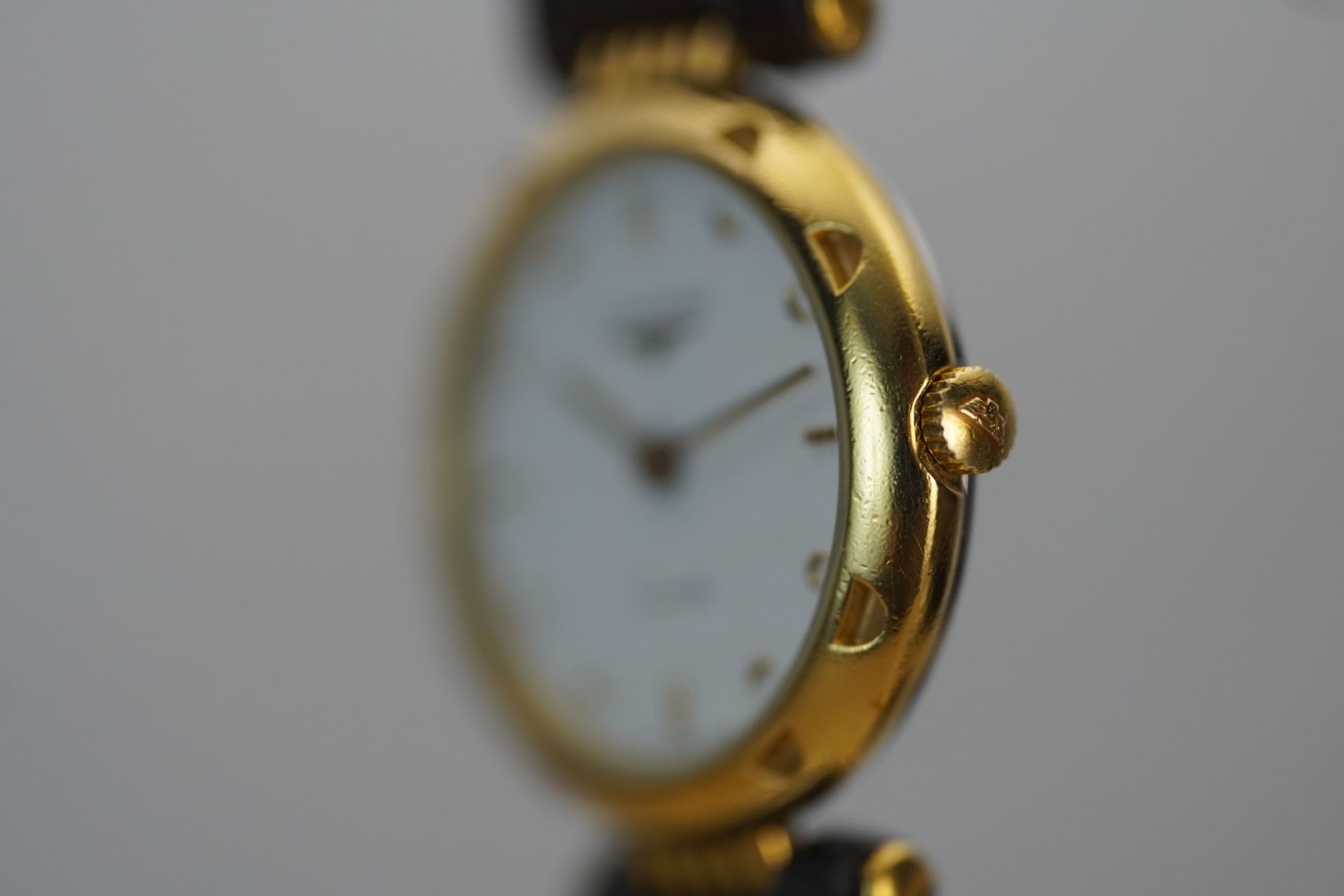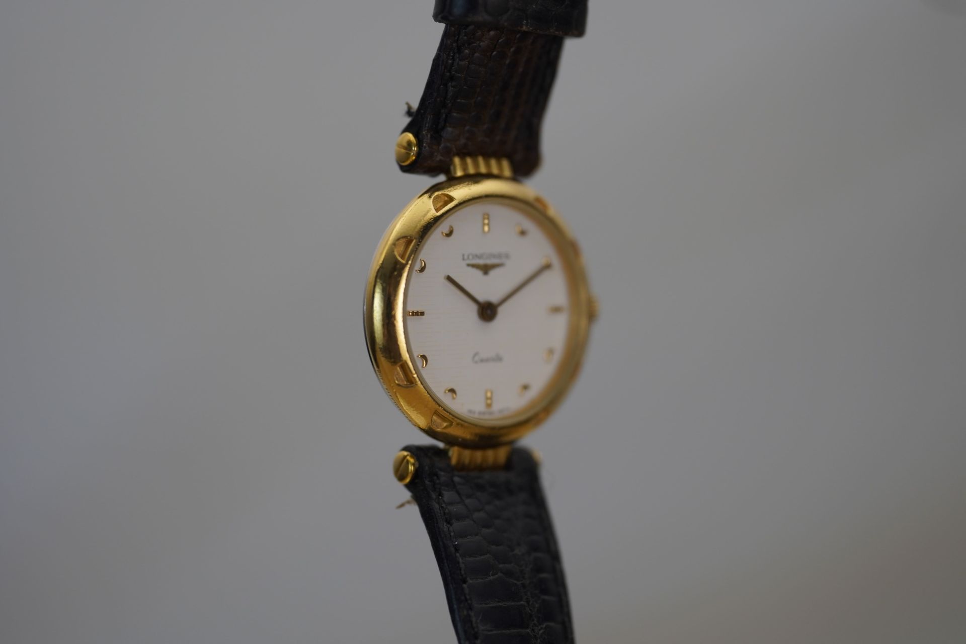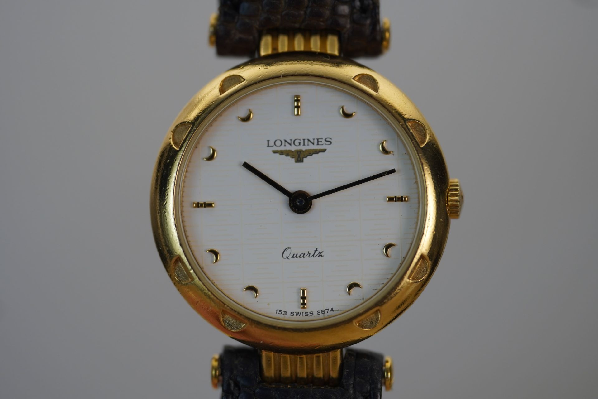Découvrez l’élégance intemporelle avec cette montre Longines Quartz, référence commerciale 153 6874. Conçue pour la femme moderne, elle incarne la discrétion et le raffinement. Son boîtier plaqué or de 22 mm de diamètre, avec une fine épaisseur de 4.7 mm, se marie parfaitement à un bracelet en cuir noir d’origine, complété par une boucle ardillon également originale. Le mouvement à Quartz assure une précision fiable. Étanche jusqu’à 3 ATM, cette pièce offre une garantie de 12 mois, témoignant de sa qualité préservée.