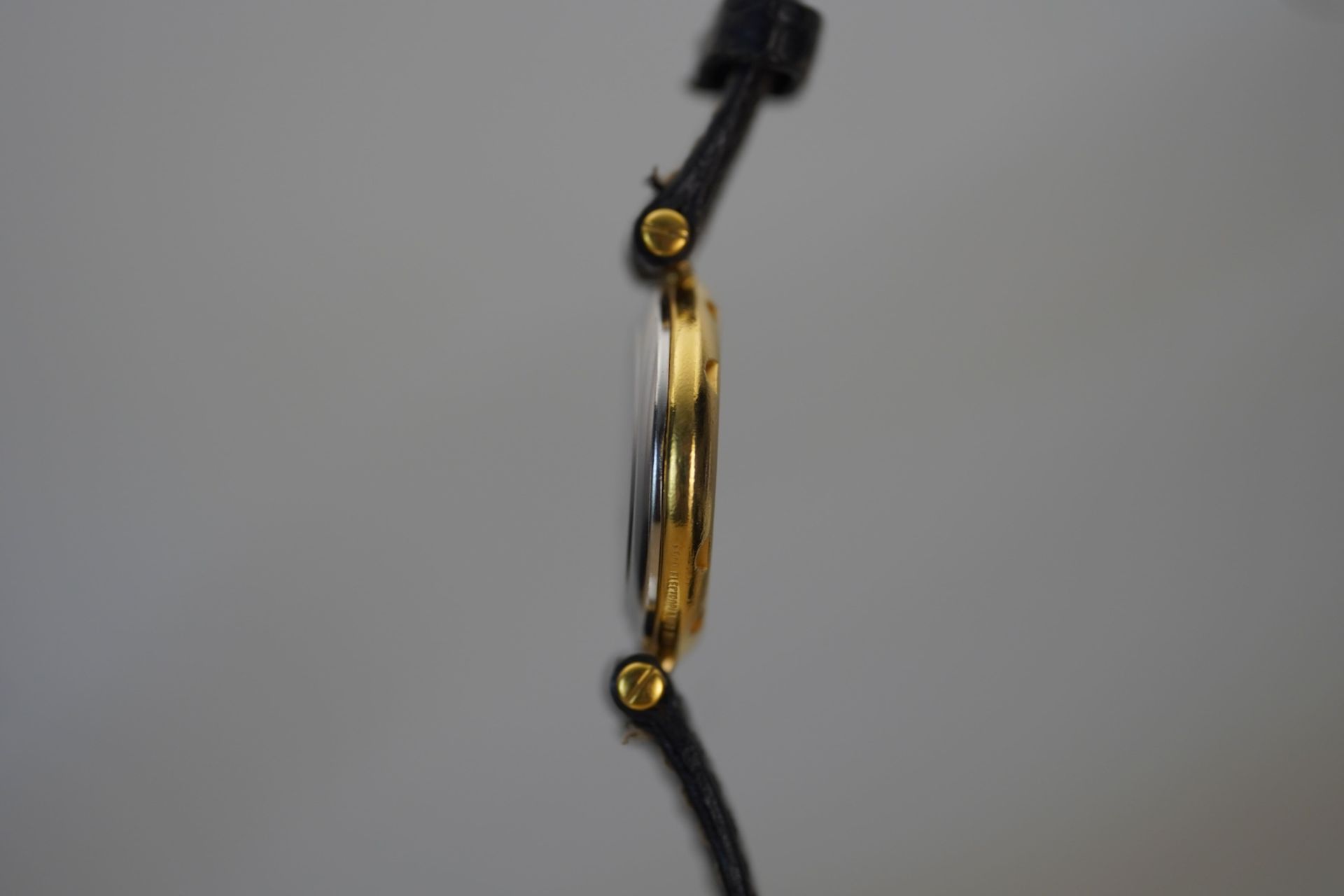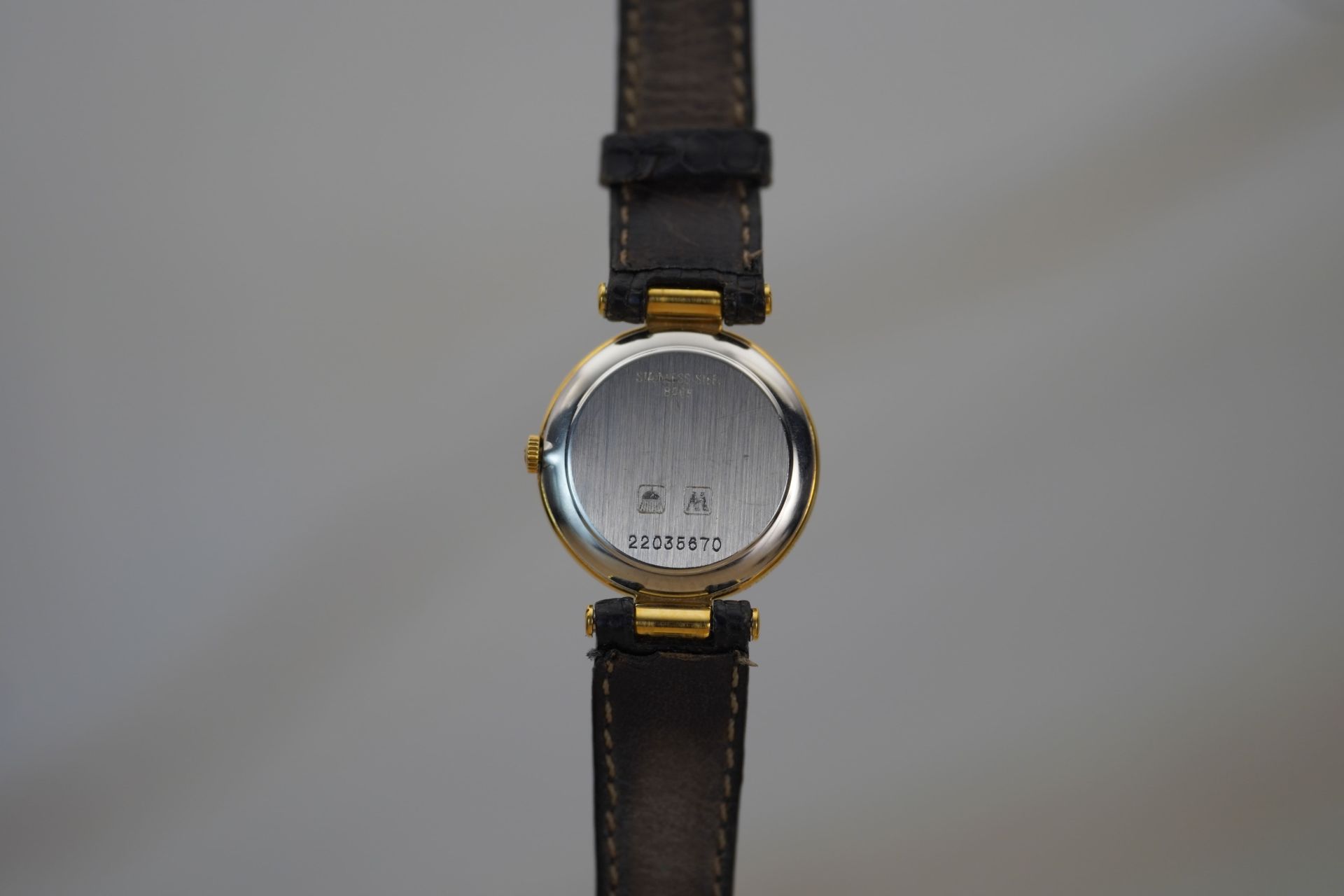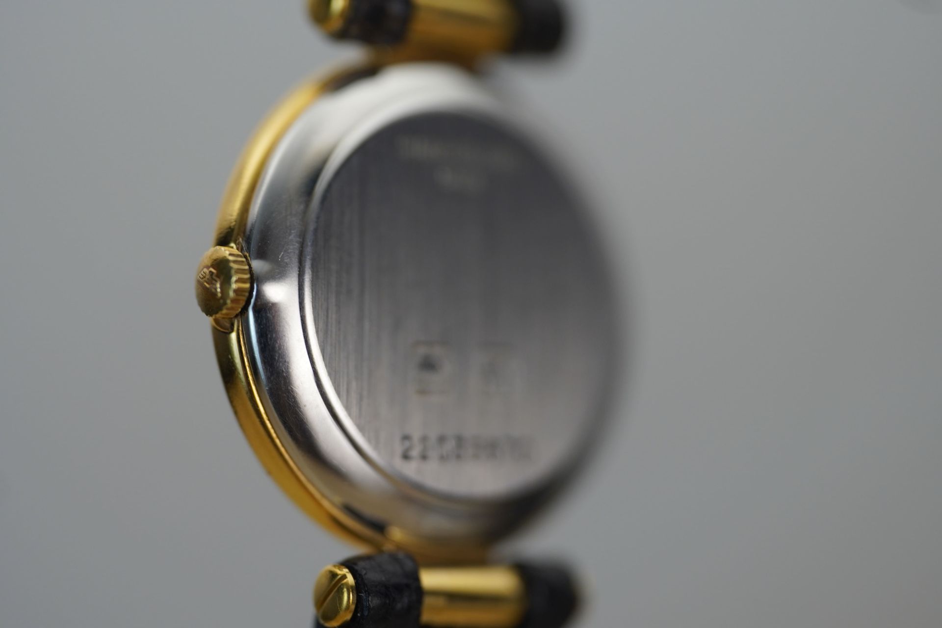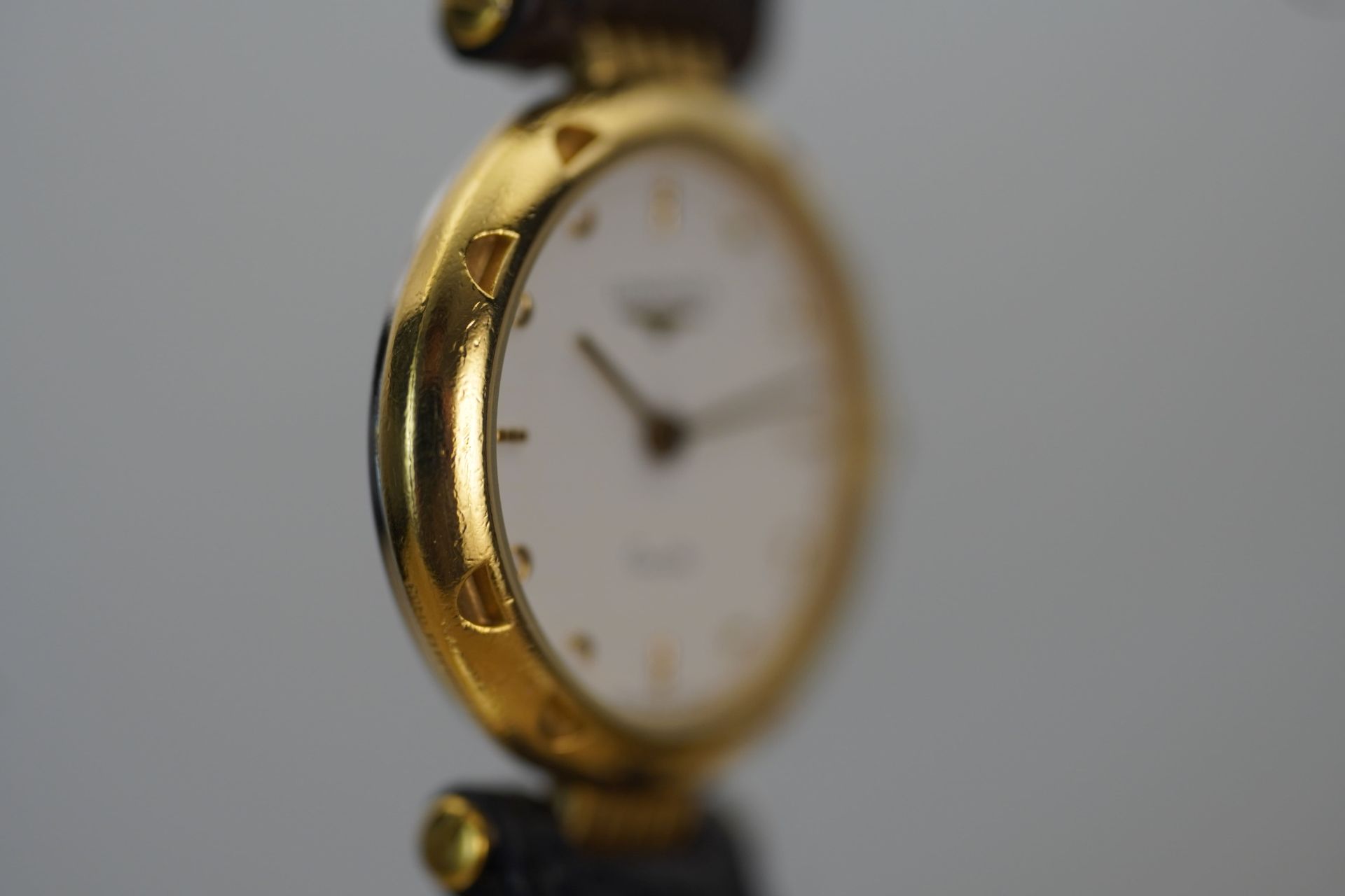 Découvrez l’élégance intemporelle avec cette montre Longines Quartz, référence commerciale 153 6874. Conçue pour la femme moderne, elle incarne la discrétion et le raffinement. Son boîtier plaqué or de 22 mm de diamètre, avec une fine épaisseur de 4.7 mm, se marie parfaitement à un bracelet en cuir noir d’origine, complété par une boucle ardillon également originale. Le mouvement à Quartz assure une précision fiable. Étanche jusqu’à 3 ATM, cette pièce offre une garantie de 12 mois, témoignant de sa qualité préservée.
