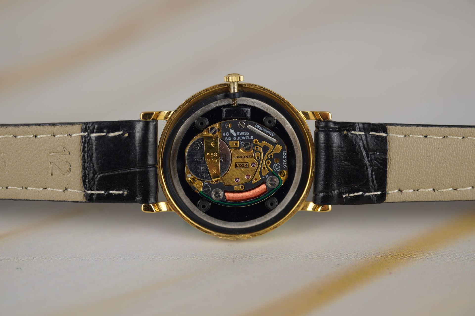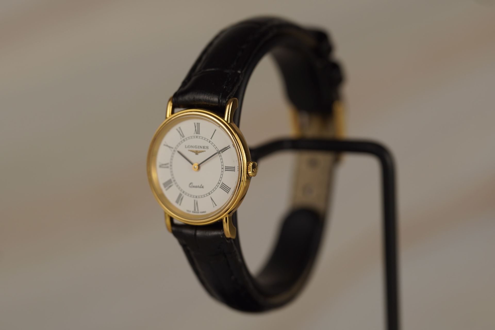 Découvrez l’élégance intemporelle avec cette montre Longines, modèle Quartz (référence commerciale 153 6950), conçue pour accompagner la femme moderne. Son boîtier délicat en plaqué or, de 23.4mm de diamètre et une faible épaisseur de 4.8mm, abrite un mouvement à quartz fiable, assurant une précision parfaite. L’étanchéité de 3 ATM offre une protection au quotidien. Présentée avec son coffret, cette pièce est une invitation à la finesse et se distingue par son raffinement. Une garantie de 12 mois accompagne cette montre Longines à l’état bon.