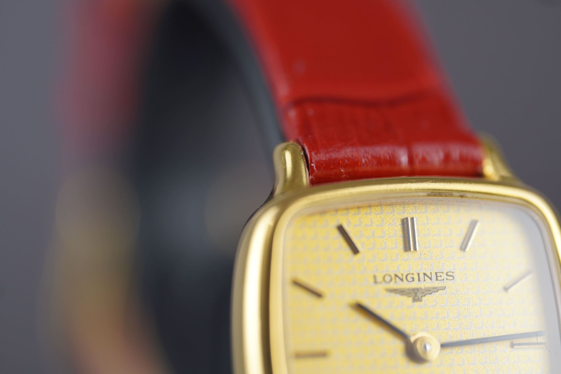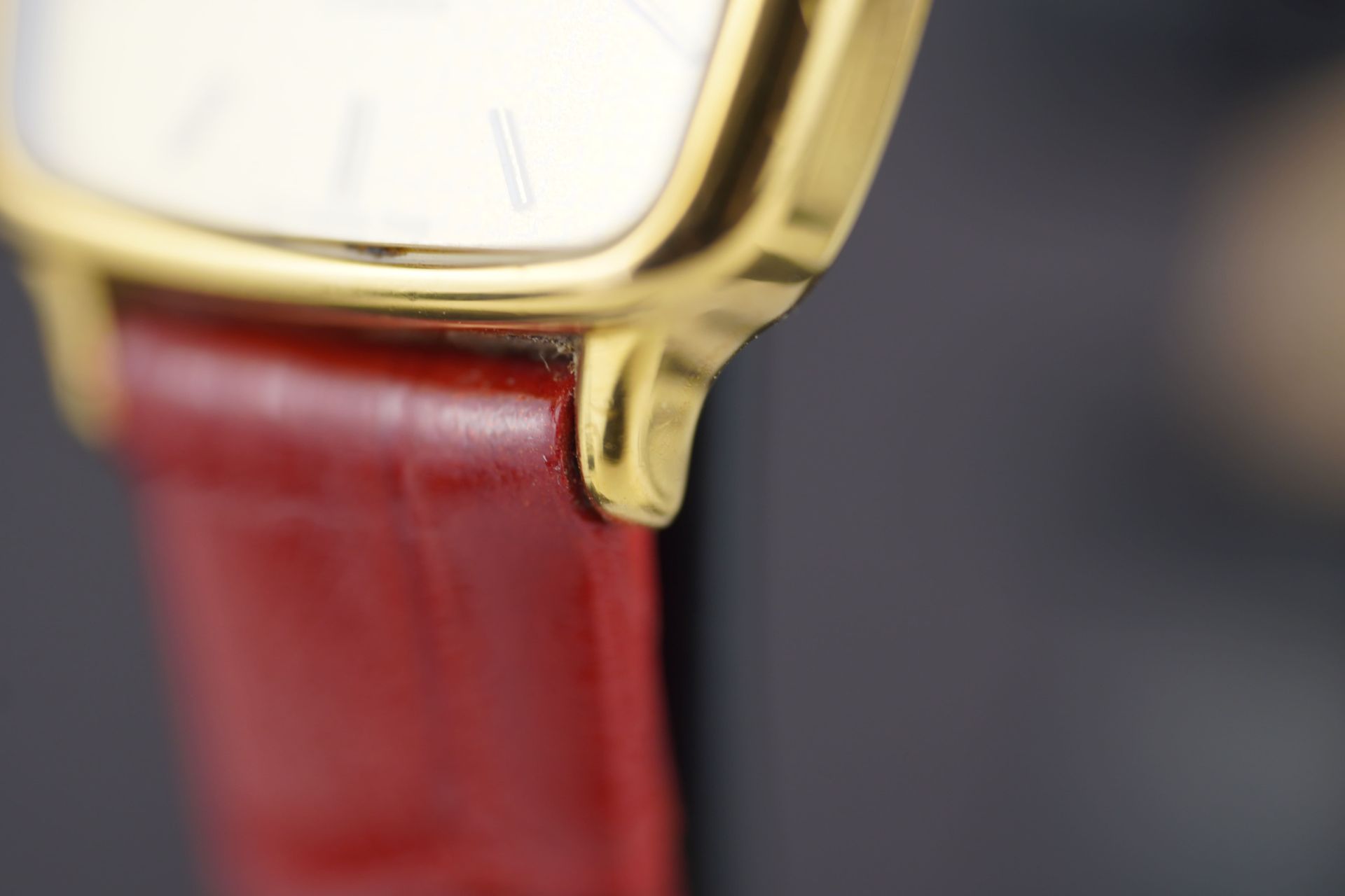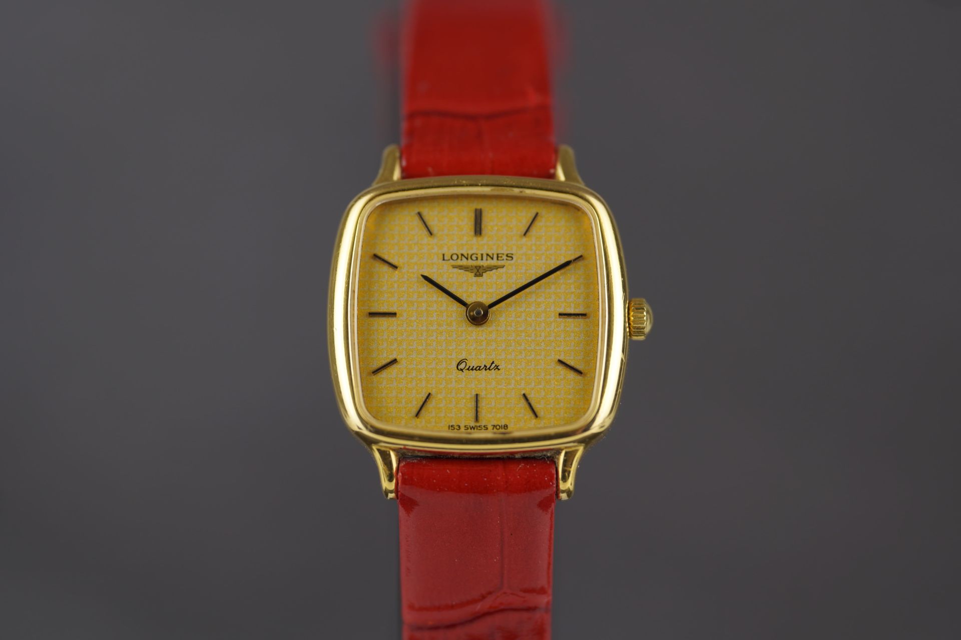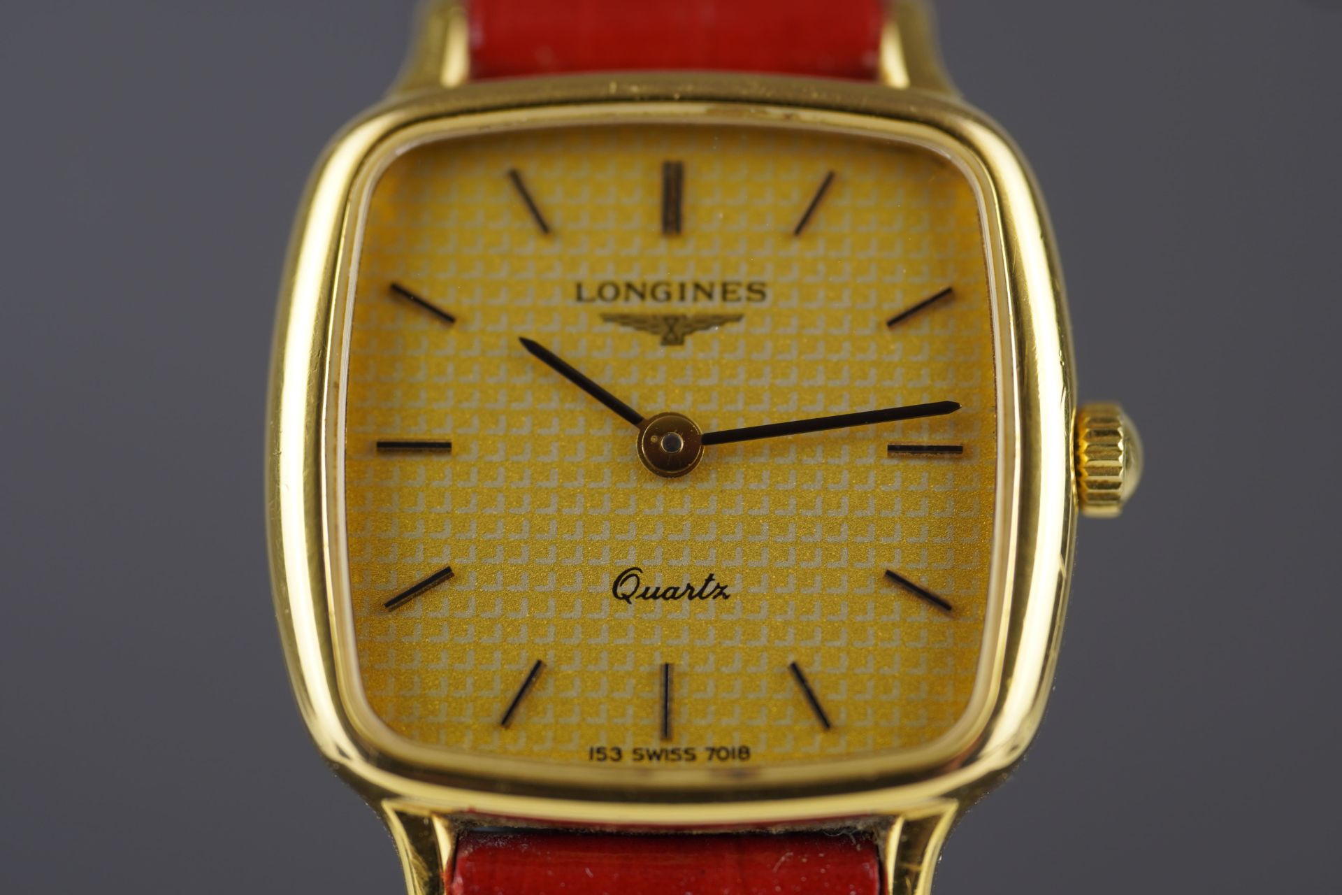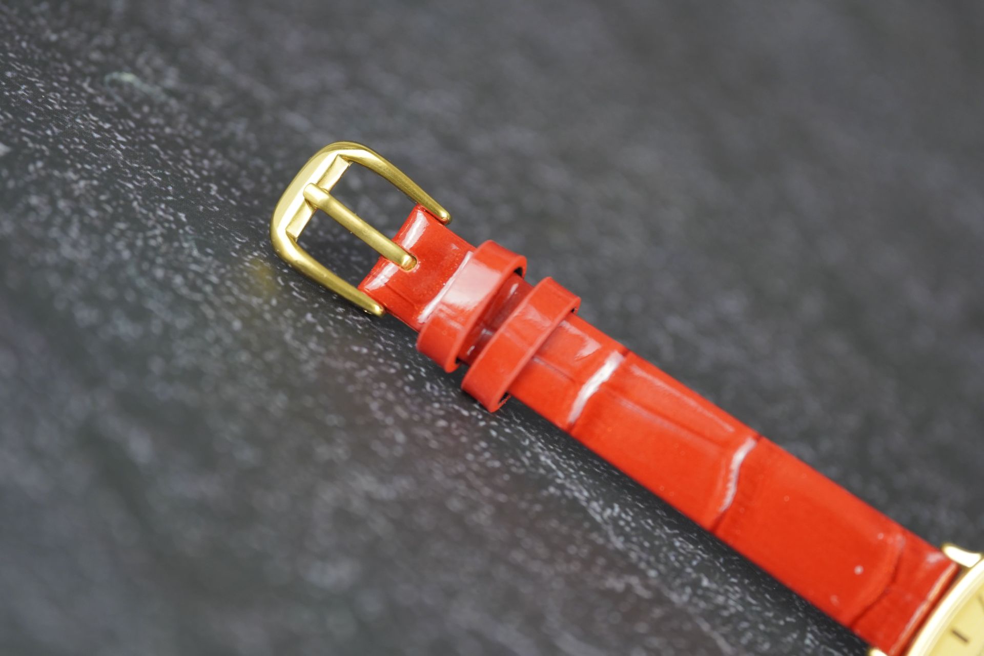 Découvrez l’élégance intemporelle avec cette montre Longines pour femme, un modèle Quartz, réf. 153 7018. Son boîtier plaqué or de 21.6mm de diamètre et de seulement 4.9mm d’épaisseur offre une silhouette délicate au poignet. Animée par un mouvement Quartz fiable, elle assure une précision remarquable. Le bracelet en cuir rouge, bien que non original, apporte une touche de couleur vive, complété par une boucle ardillon non originale.