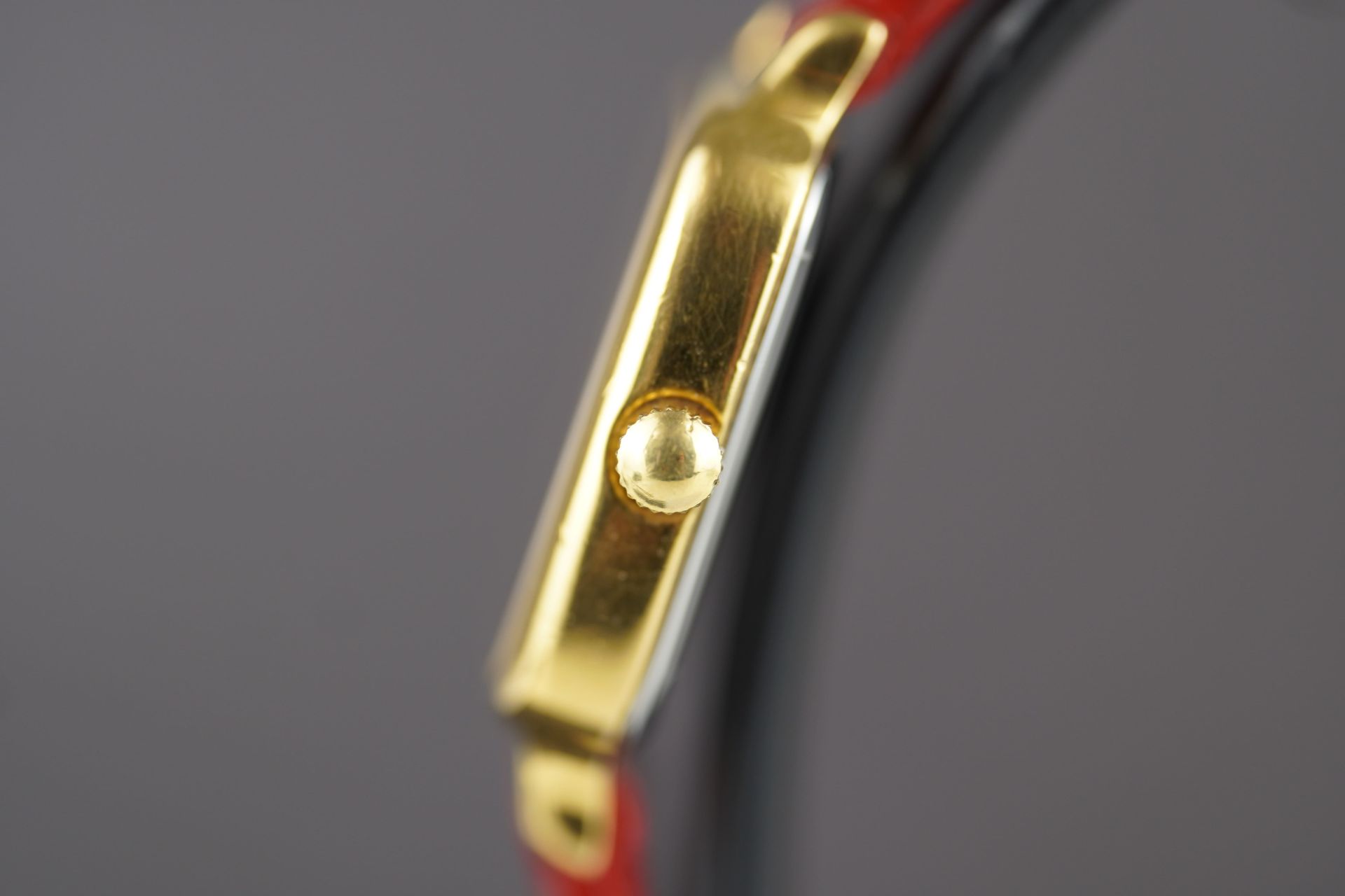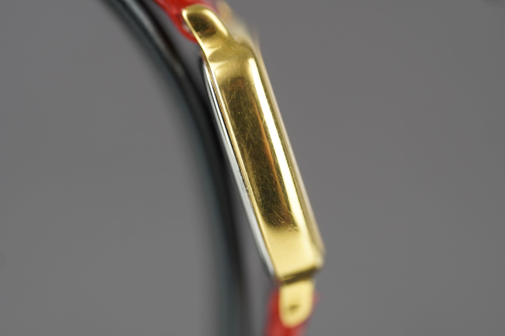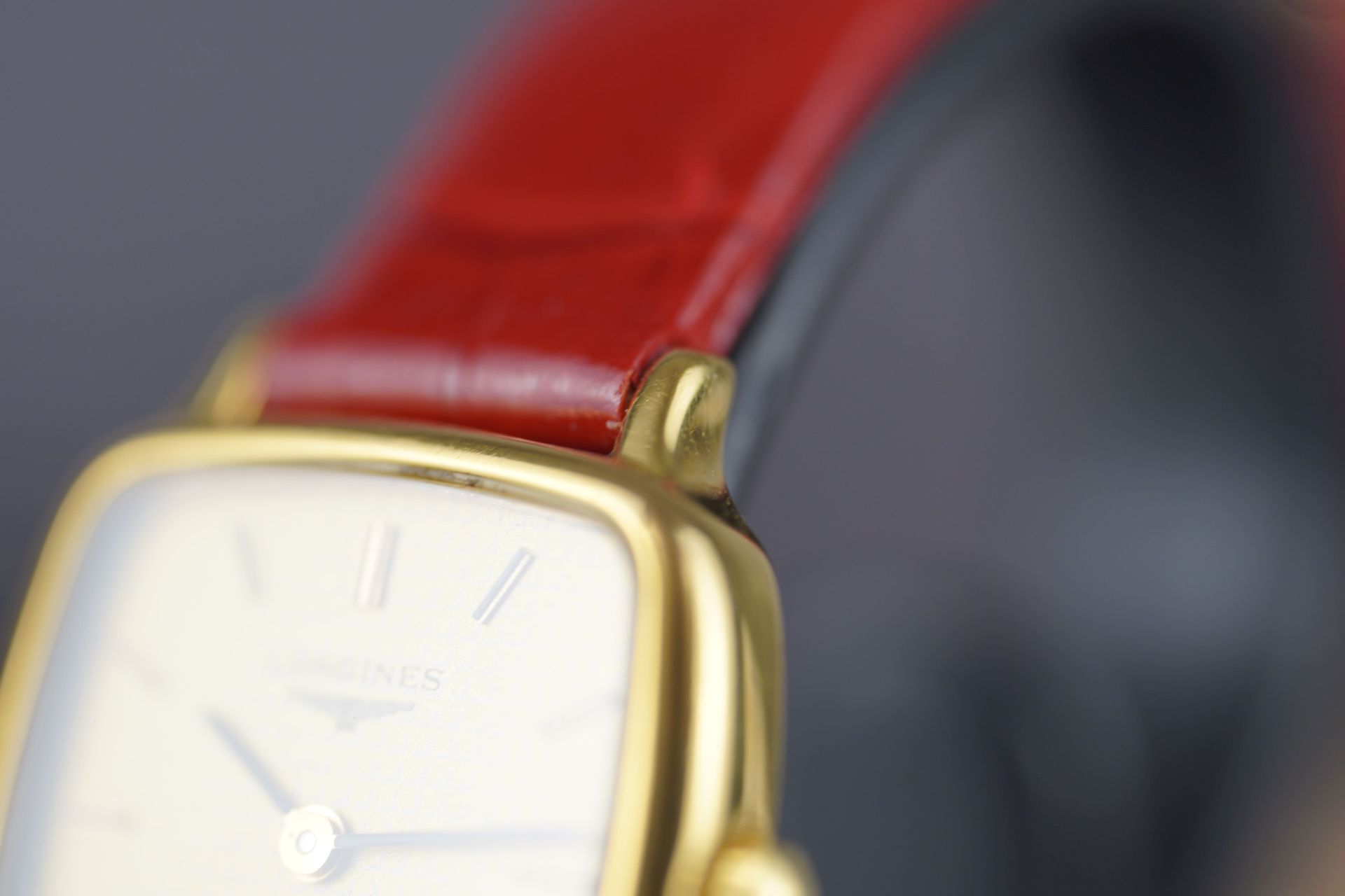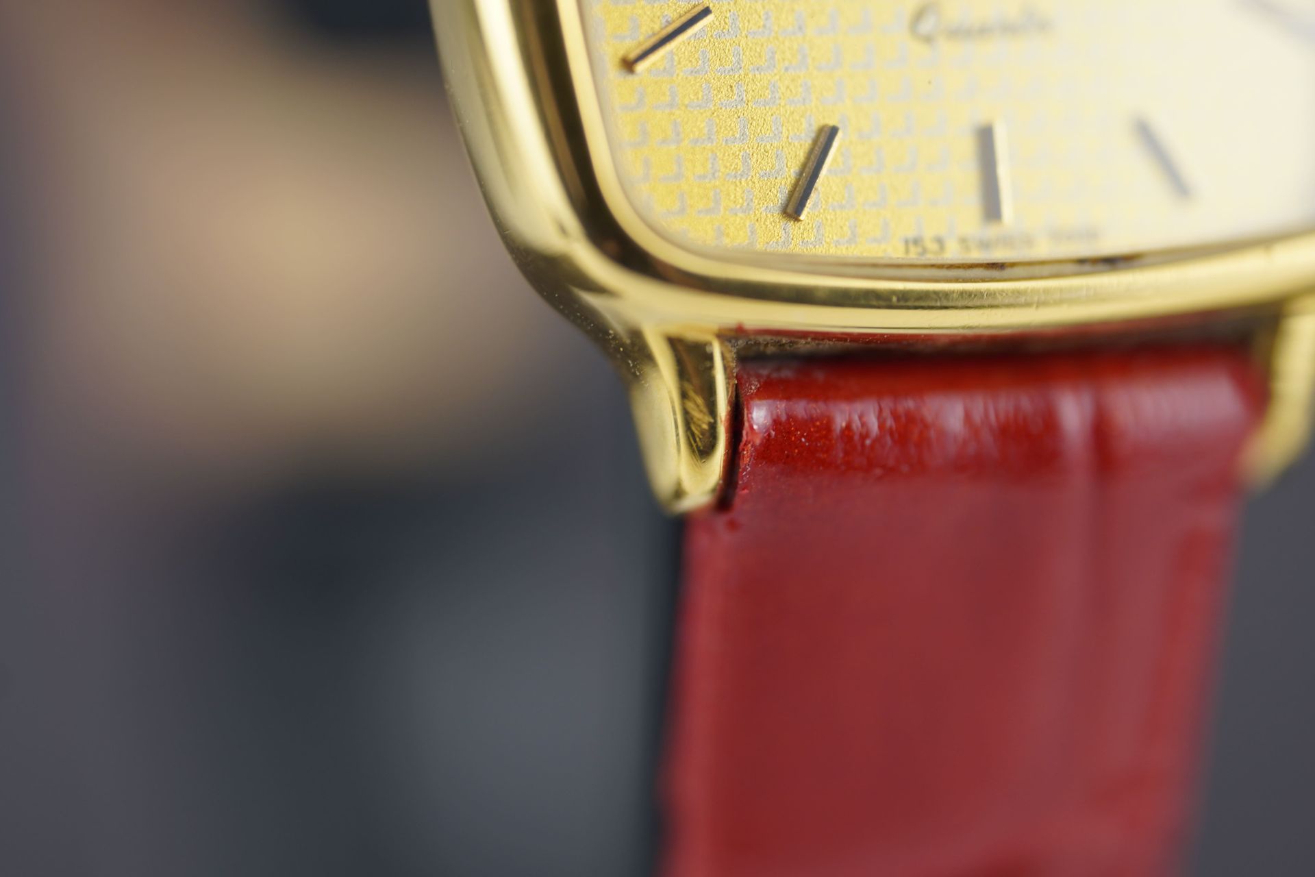 Découvrez l’élégance intemporelle avec cette montre Longines pour femme, un modèle Quartz, réf. 153 7018. Son boîtier plaqué or de 21.6mm de diamètre et de seulement 4.9mm d’épaisseur offre une silhouette délicate au poignet. Animée par un mouvement Quartz fiable, elle assure une précision remarquable. Le bracelet en cuir rouge, bien que non original, apporte une touche de couleur vive, complété par une boucle ardillon non originale.