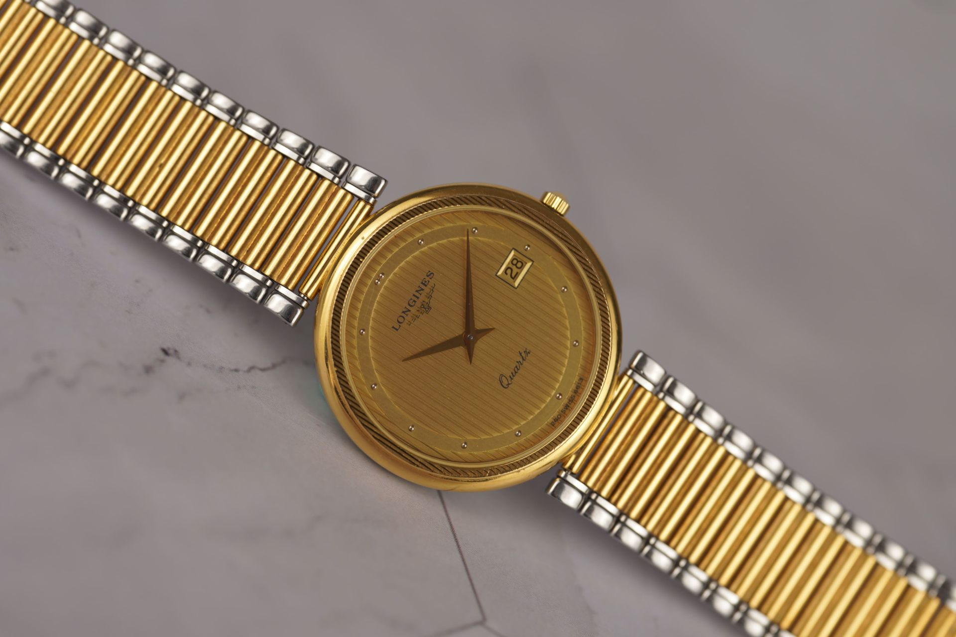 Découvrez l’élégance intemporelle avec cette montre Longines unisexe, référence commerciale 240 6613. Son boîtier plaqué or de 30mm de diamètre et d’une finesse remarquable de 4.5mm d’épaisseur abrite un mouvement à Quartz précis. Le bracelet original en acier bicolore, mêlant or et acier, se prolonge par une boucle fermoir bijoux également originale, assurant un porté raffiné. Étanche jusqu’à 3 ATM, cette pièce est une alliance parfaite de style et de fonctionnalité. Livrée seule, elle bénéficie d’une garantie de 12 mois.