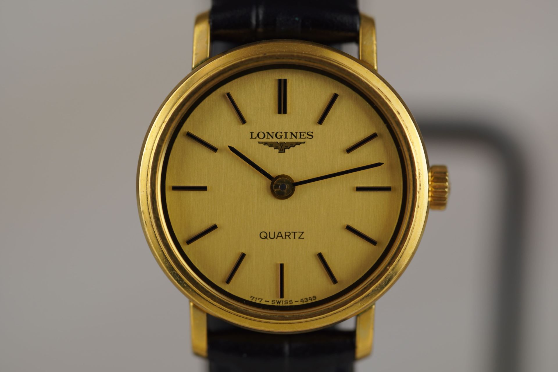 Découvrez l’élégance intemporelle avec cette montre Longines pour femme, Référence commerciale 717 4349. Son boîtier plaqué or de 23mm de diamètre et 6.6mm d’épaisseur abrite un mouvement Quartz précis. Le cadran, d’une sobriété raffinée, est complété par un bracelet en cuir noir non-original, assorti d’une boucle ardillon également non-originale.