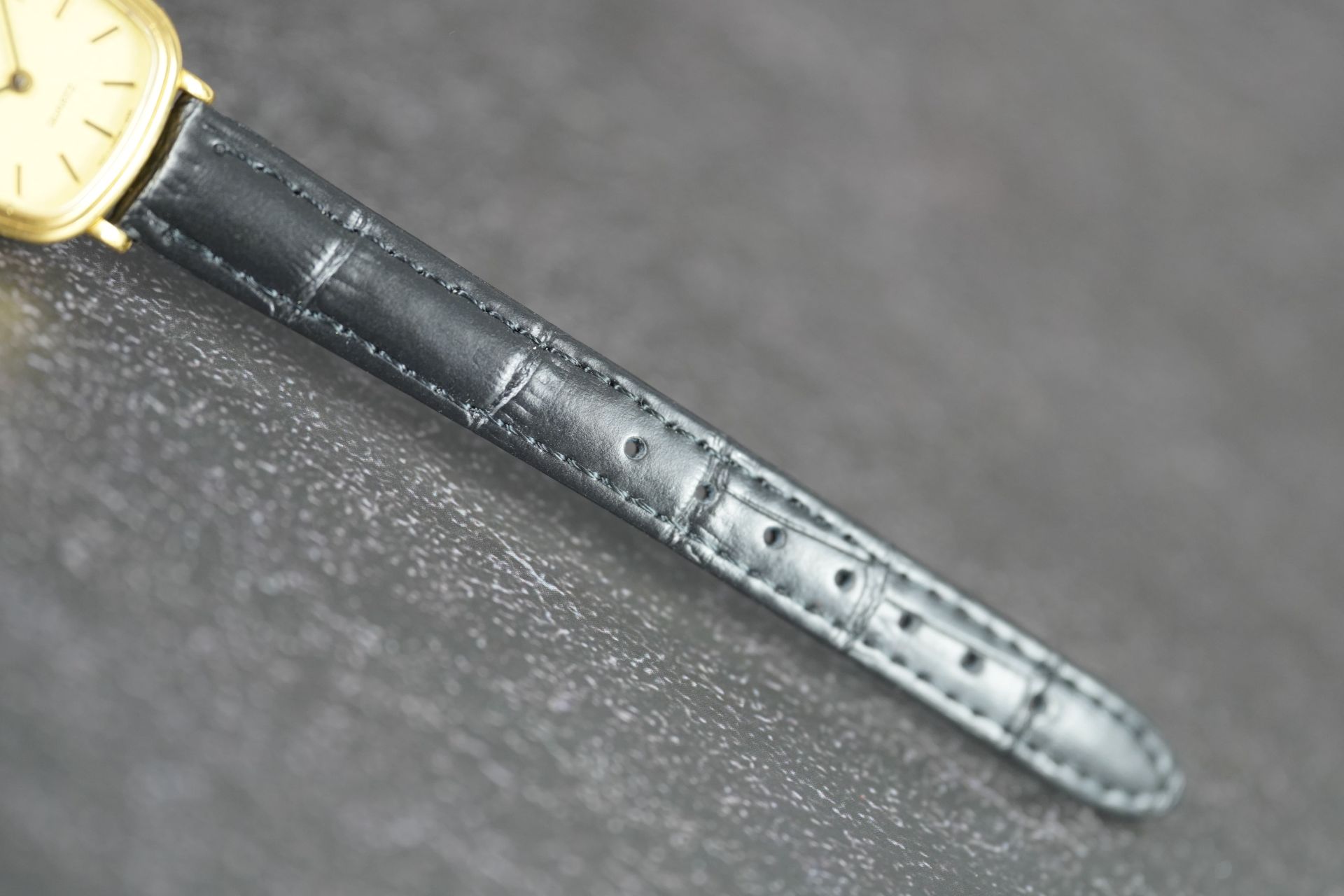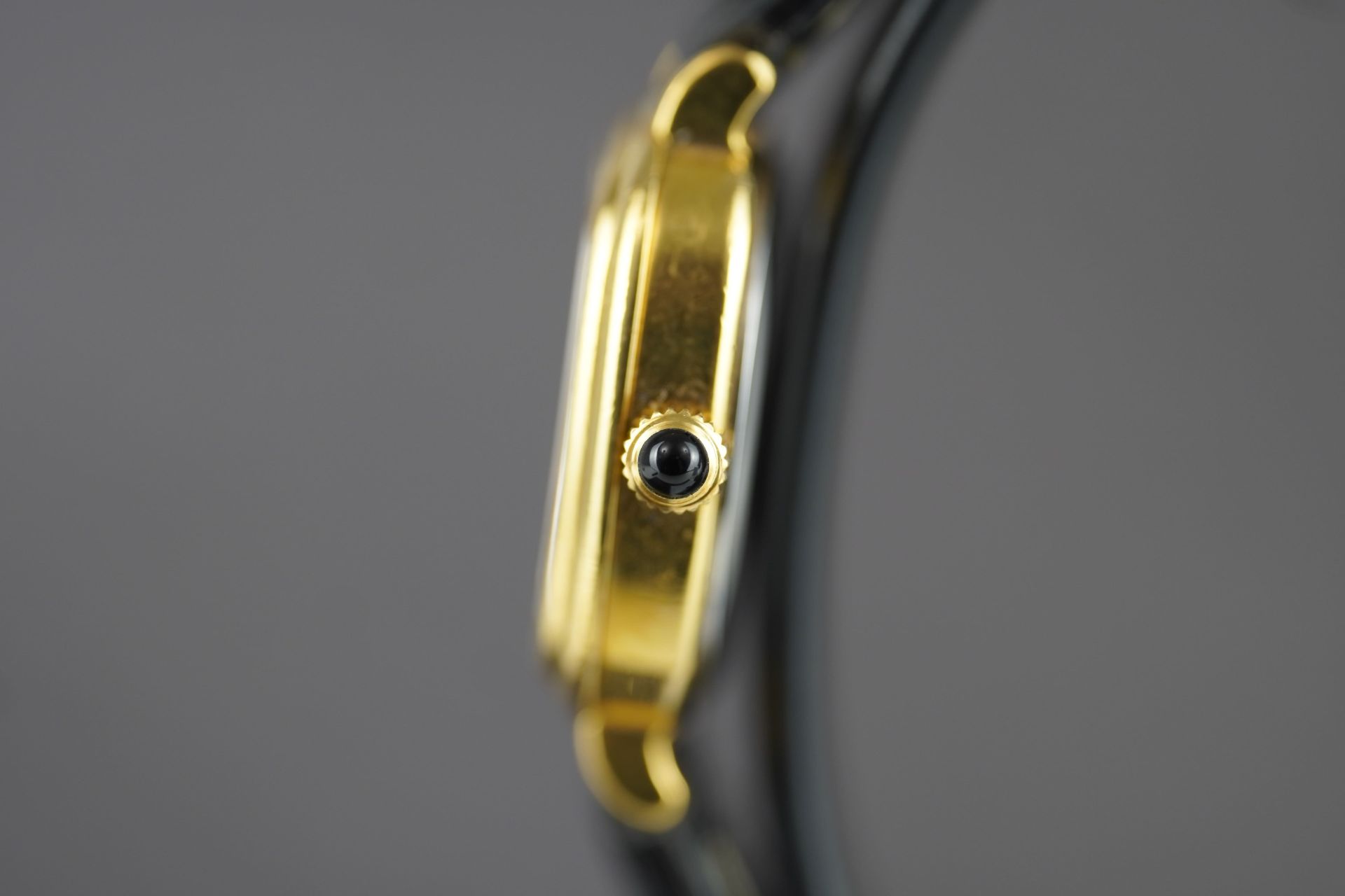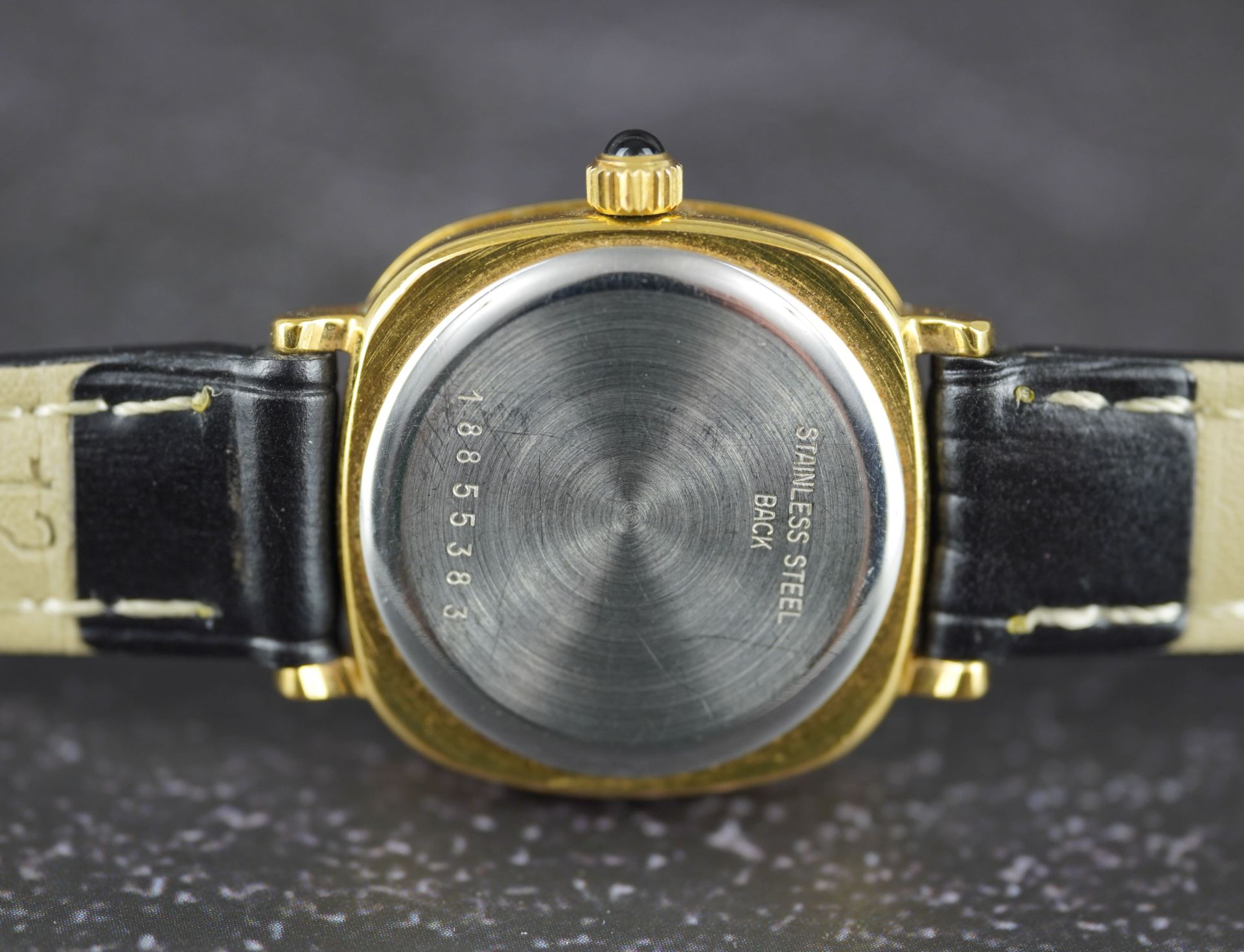 Découvrez l’élégance intemporelle avec cette montre Longines Quartz, référence commerciale 717 4351. Conçue pour la femme moderne, elle abrite un mouvement Quartz précis au cœur d’un boîtier raffiné en plaqué or de 23 mm de diamètre et de 6.7 mm d’épaisseur. Son allure classique est complétée par un bracelet en cuir noir non-original, sécurisé par une boucle ardillon également non-originale, offrant un beau contraste. Elle bénéficie d’une garantie de 12 mois.