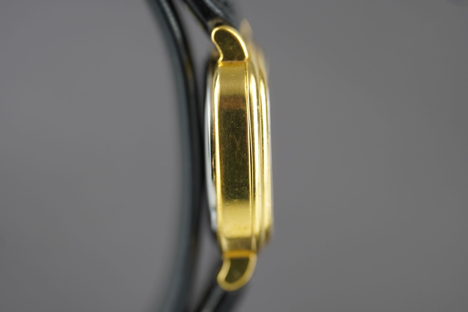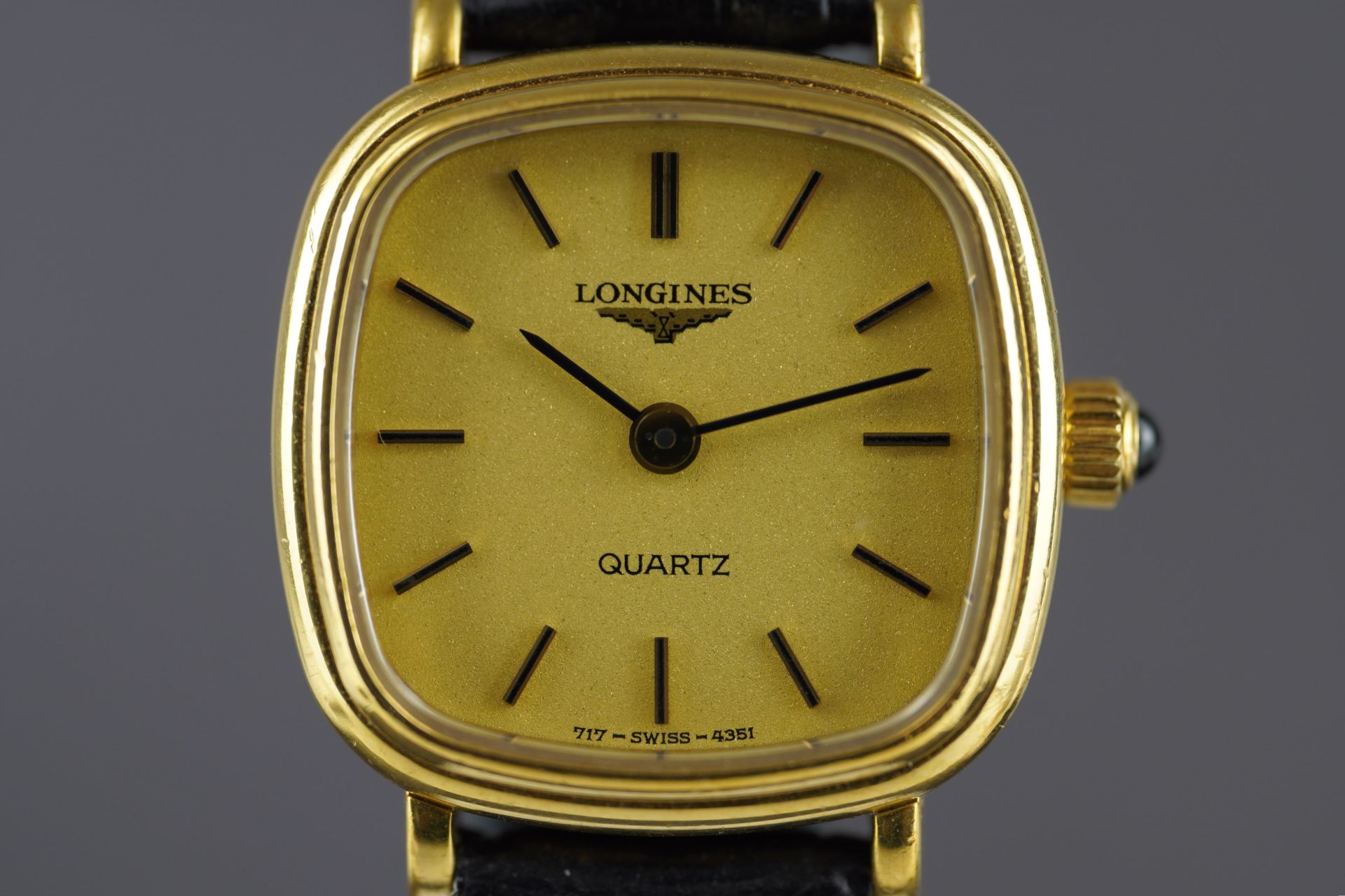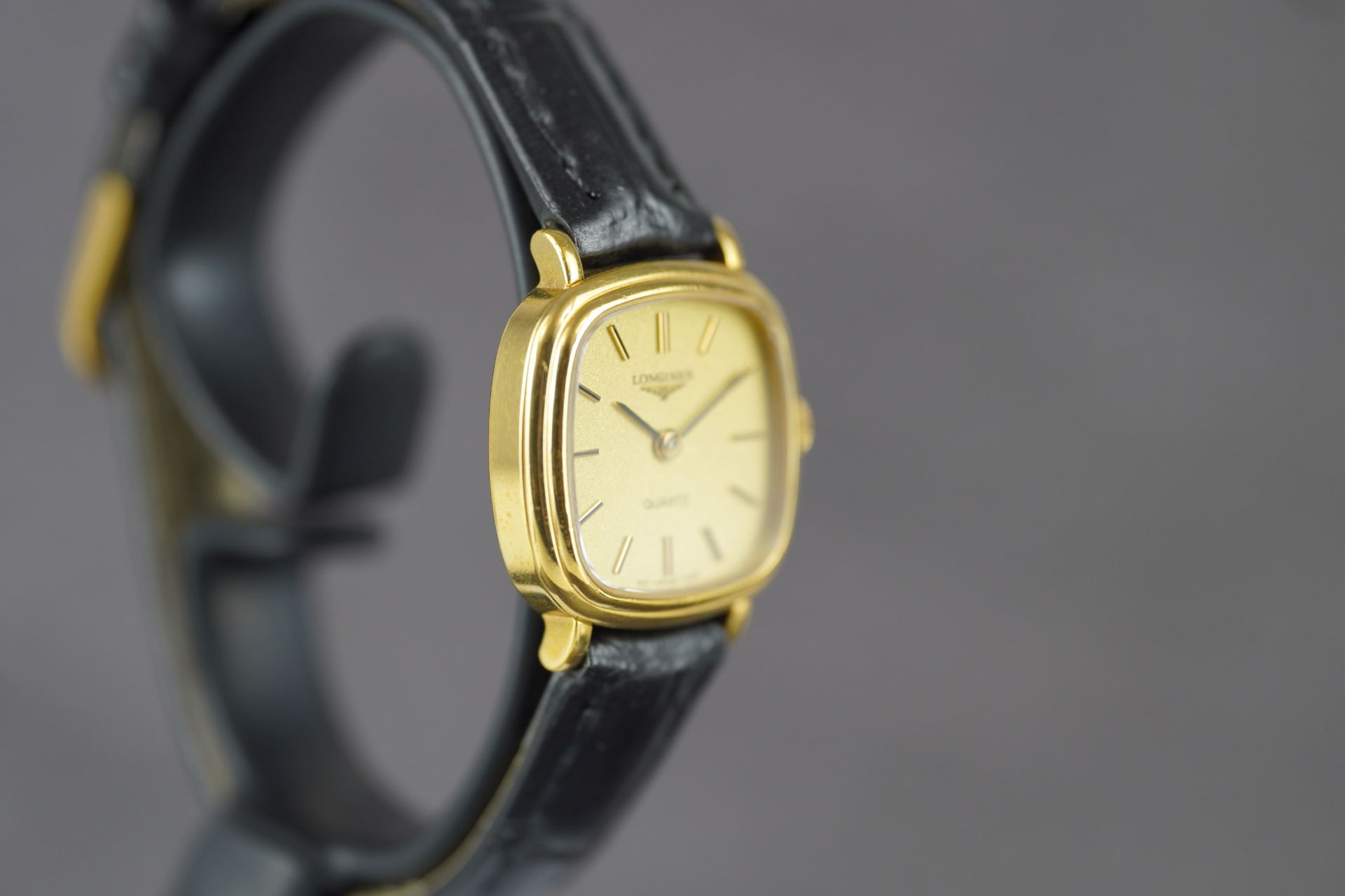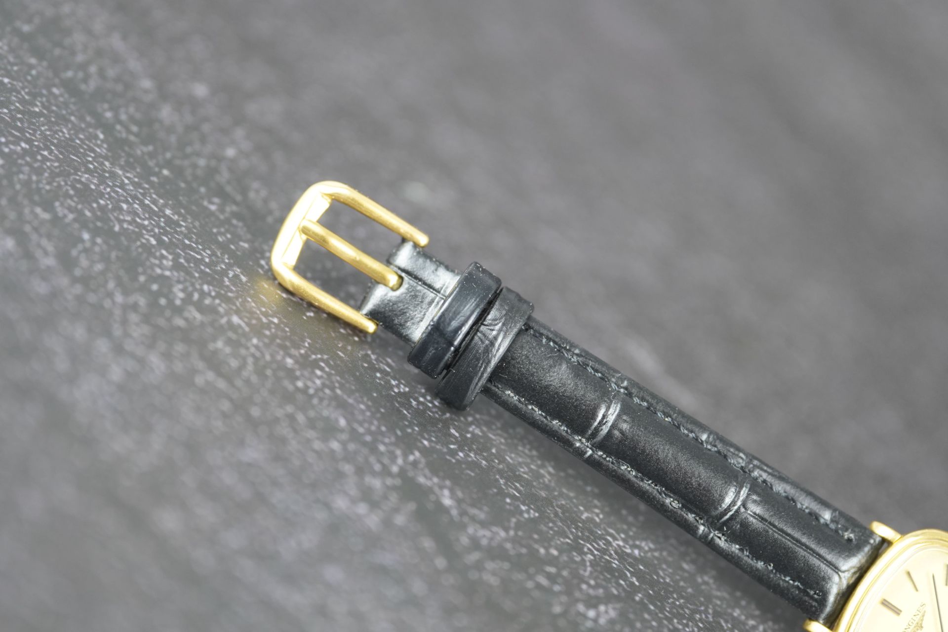 Découvrez l’élégance intemporelle avec cette montre Longines Quartz, référence commerciale 717 4351. Conçue pour la femme moderne, elle abrite un mouvement Quartz précis au cœur d’un boîtier raffiné en plaqué or de 23 mm de diamètre et de 6.7 mm d’épaisseur. Son allure classique est complétée par un bracelet en cuir noir non-original, sécurisé par une boucle ardillon également non-originale, offrant un beau contraste. Elle bénéficie d’une garantie de 12 mois.