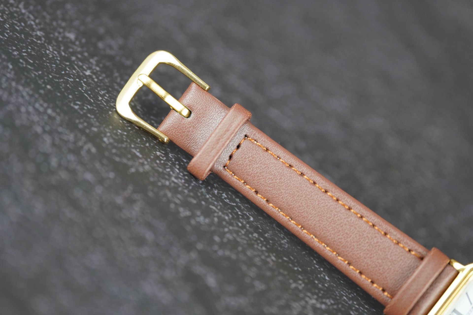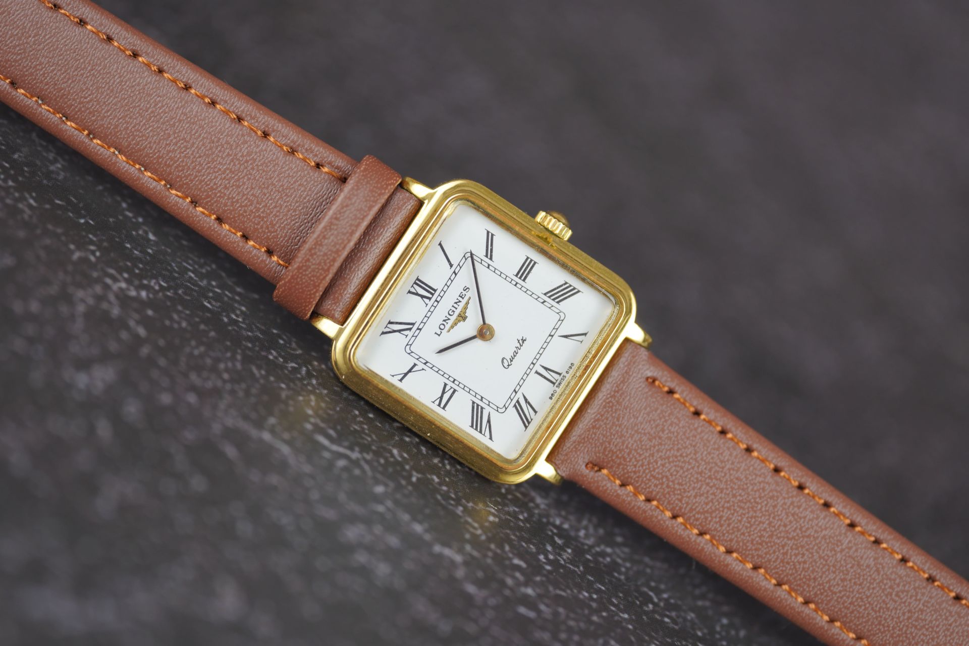 Découvrez la Longines Carré (Réf. 960 6198), une montre-bracelet féminine alliant discrétion et raffinement. Son boîtier carré plaqué or de 23.3mm, d’une fine épaisseur de 5.6mm, encadre un mouvement à quartz d’une fiabilité éprouvée. Datant de 1969, cette pièce incarne l’élégance intemporelle propre à la manufacture. Elle est accompagnée d’un bracelet en cuir brun et d’une boucle ardillon, tous deux non originaux mais harmonieusement choisis. Proposée à la vente seule, cette Longines est dans un bon état et bénéficie d’une garantie de 12 mois.