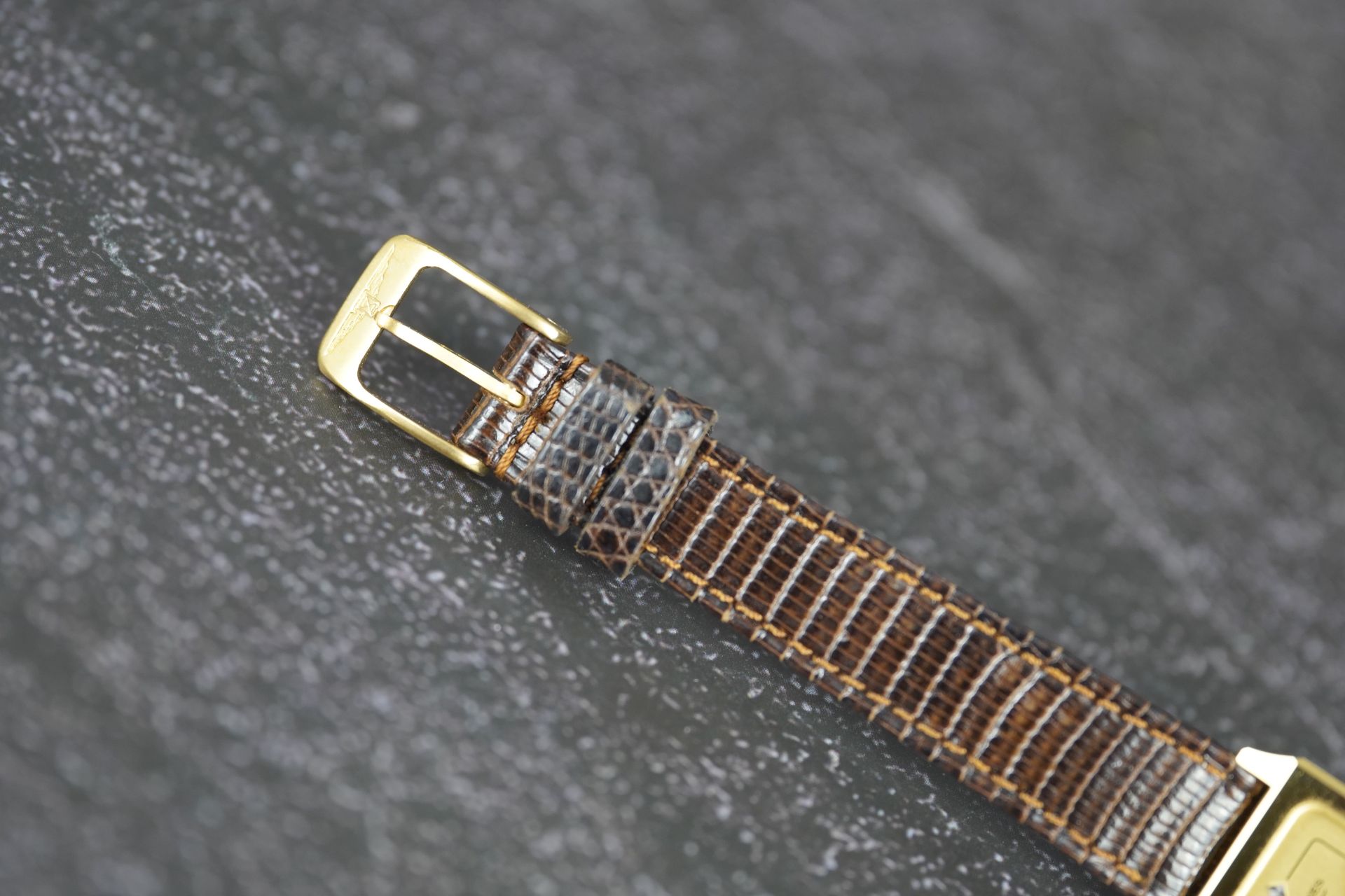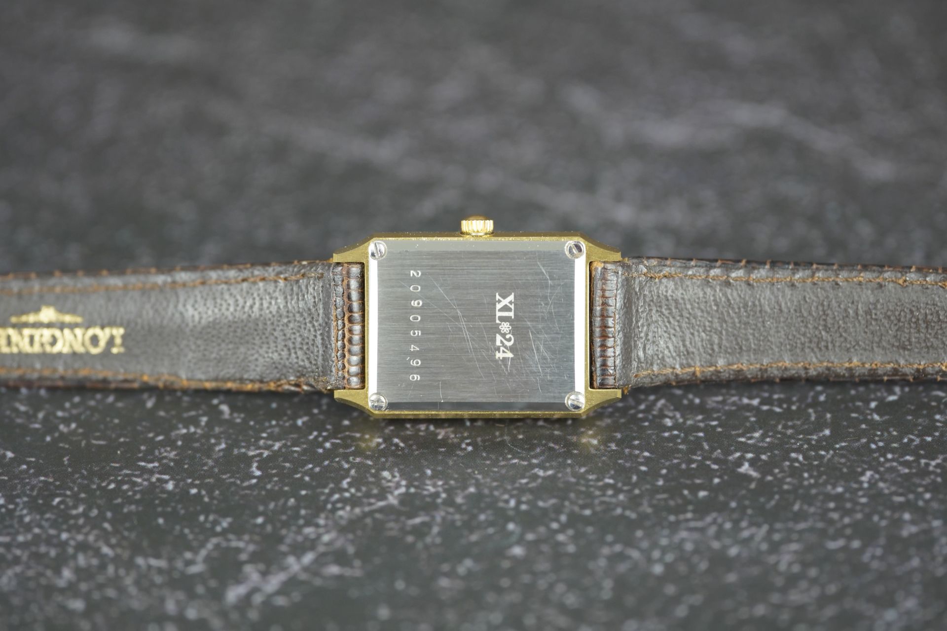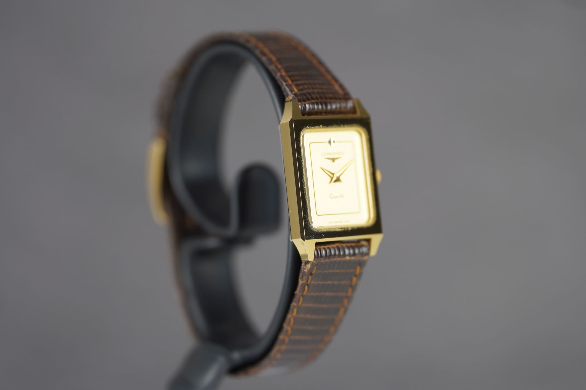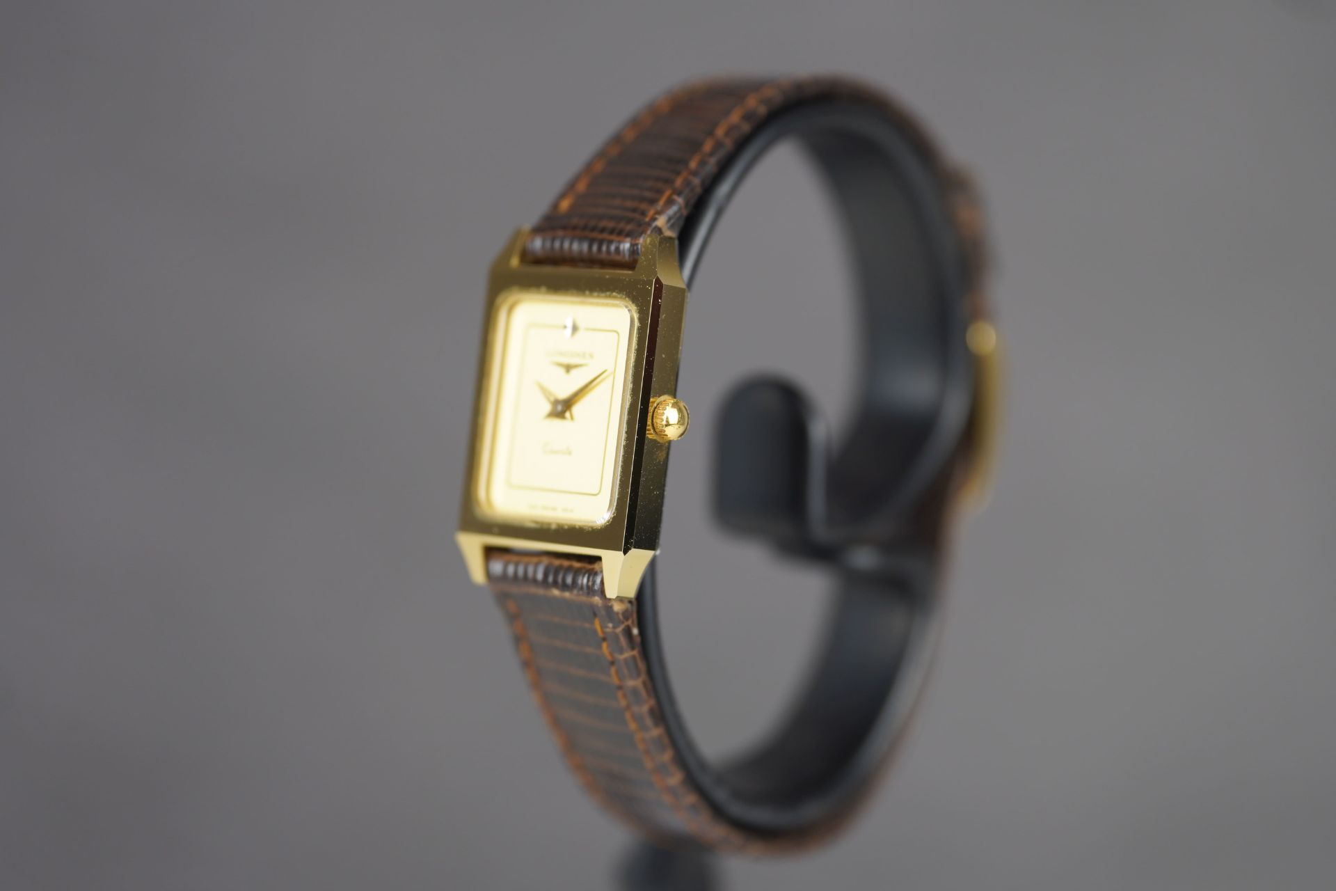 Découvrez l’élégance intemporelle avec cette montre Longines Tank XL, référence commerciale 962 6519. Arborant un boîtier plaqué or de 17.6mm de diamètre et une fine épaisseur de 5.1mm, elle épouse délicatement le poignet féminin. Son mouvement à Quartz garantit une précision fiable. Le bracelet en cuir bordeaux, original et parfaitement assorti, est sécurisé par une boucle ardillon également d’origine.
