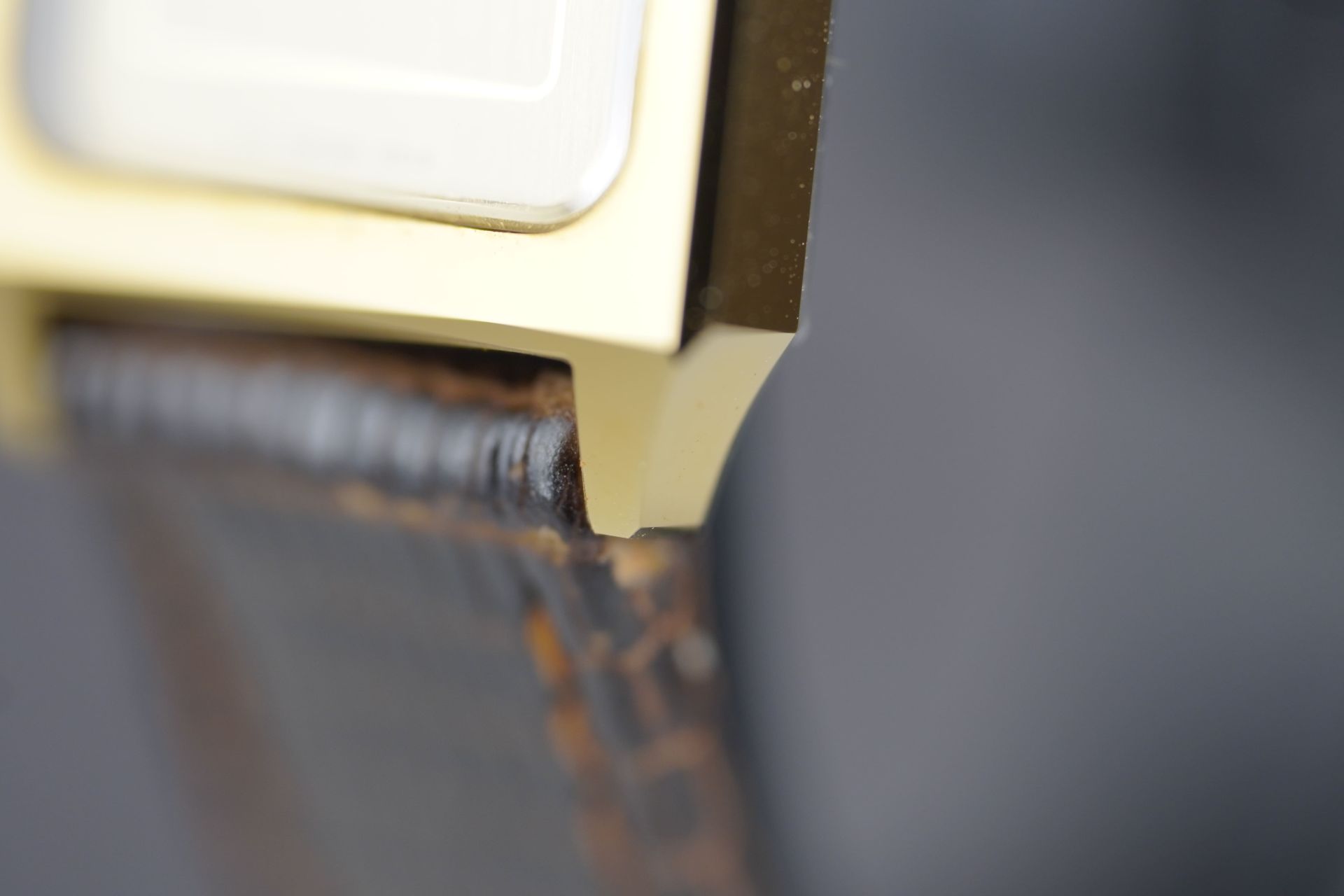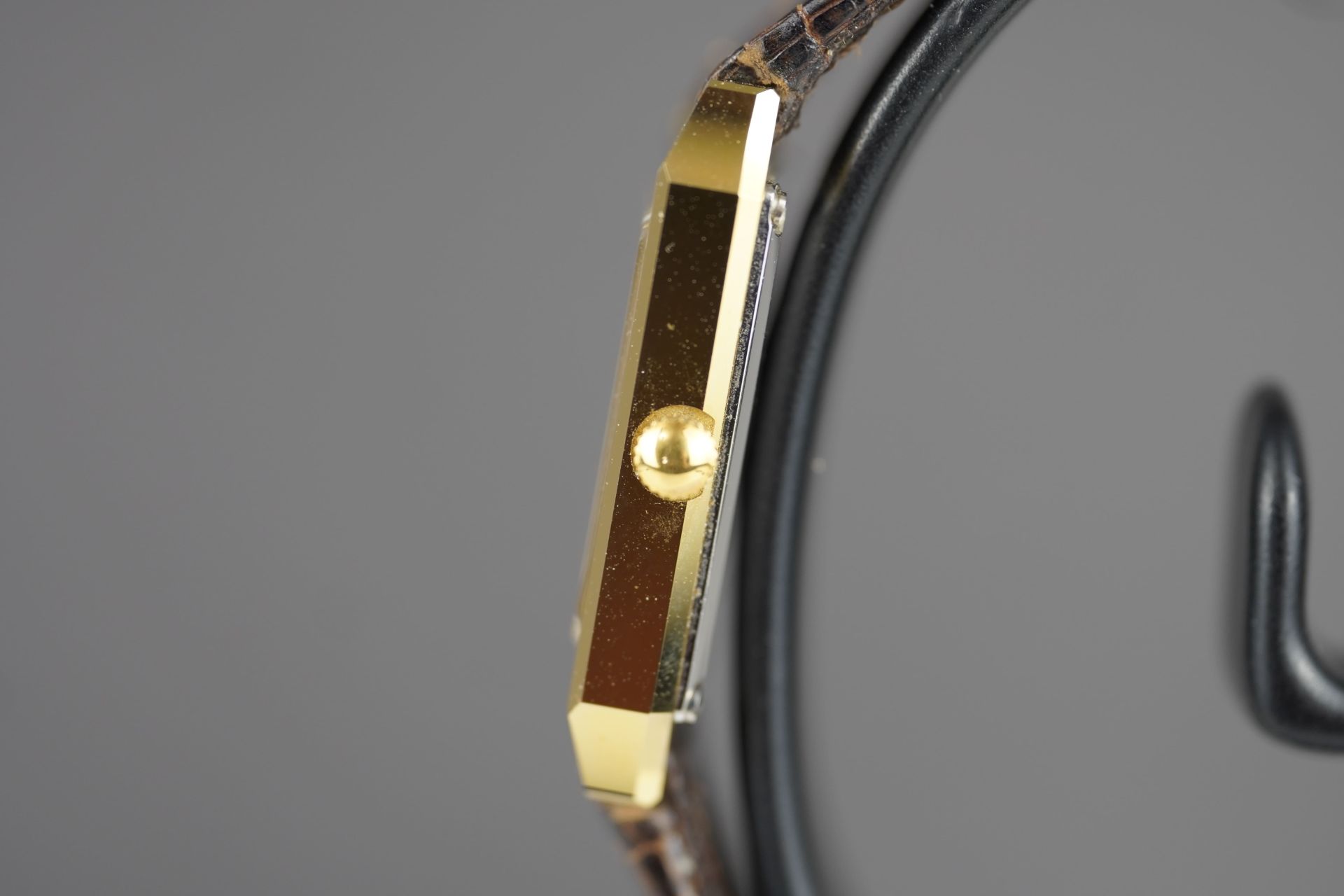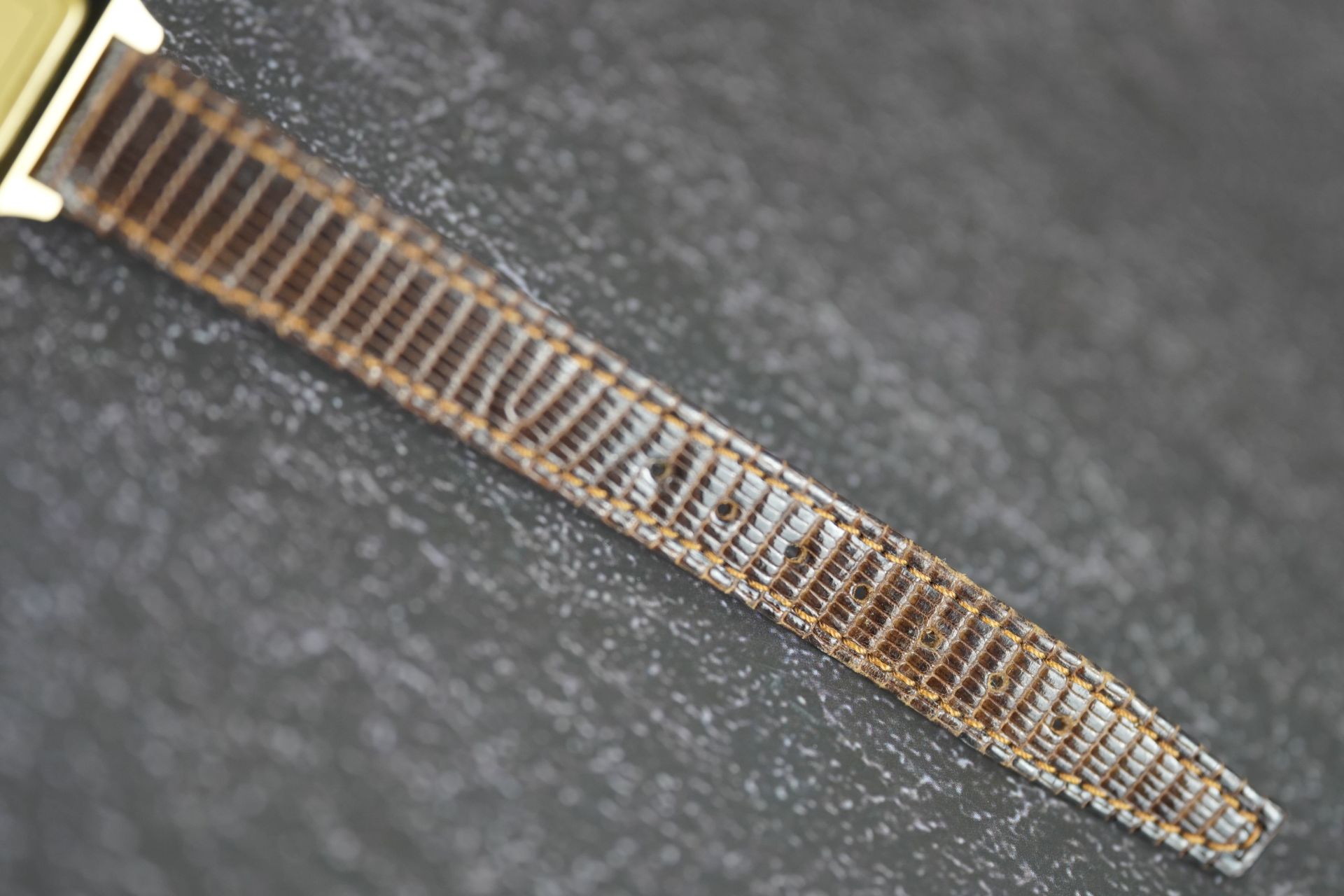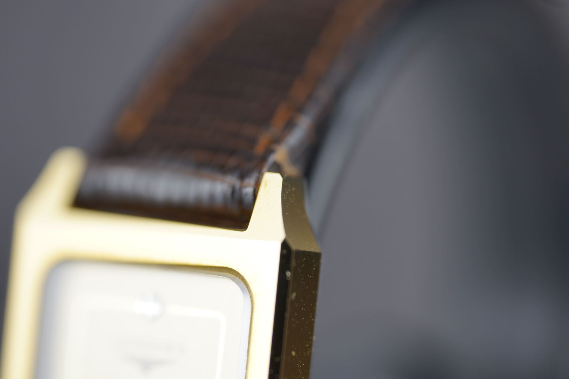 Découvrez l’élégance intemporelle avec cette montre Longines Tank XL, référence commerciale 962 6519. Arborant un boîtier plaqué or de 17.6mm de diamètre et une fine épaisseur de 5.1mm, elle épouse délicatement le poignet féminin. Son mouvement à Quartz garantit une précision fiable. Le bracelet en cuir bordeaux, original et parfaitement assorti, est sécurisé par une boucle ardillon également d’origine.