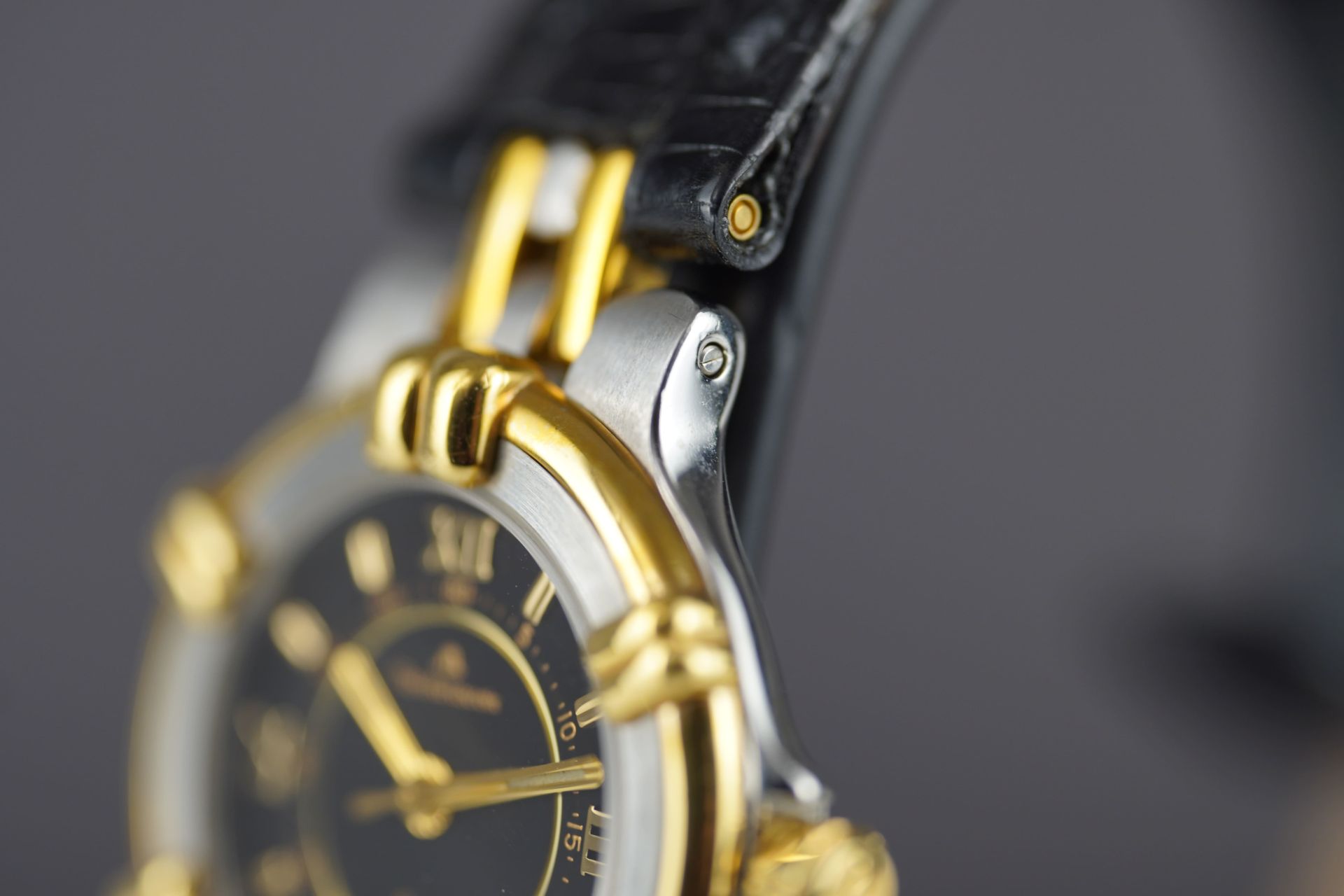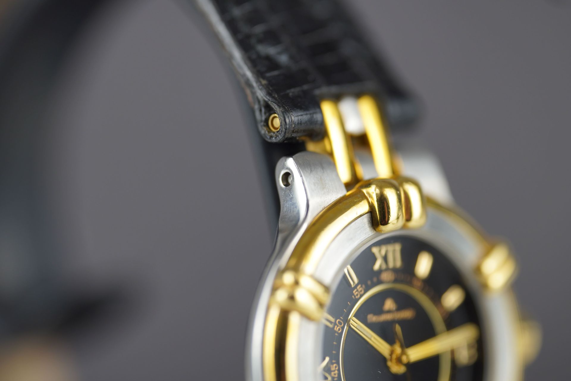 Découvrez la Maurice Lacroix Calypso, un modèle féminin d’une élégance intemporelle. Son boîtier en acier de 26mm de diamètre et 6mm d’épaisseur abrite un mouvement à Quartz, garantissant une précision fiable. Le bracelet en cuir noir d’origine s’associe harmonieusement à sa boucle ardillon également originale, offrant confort et style. Cette montre, en bon état, est étanche jusqu’à 10 ATM. Livrée seule, elle bénéficie d’une garantie de 12 mois.