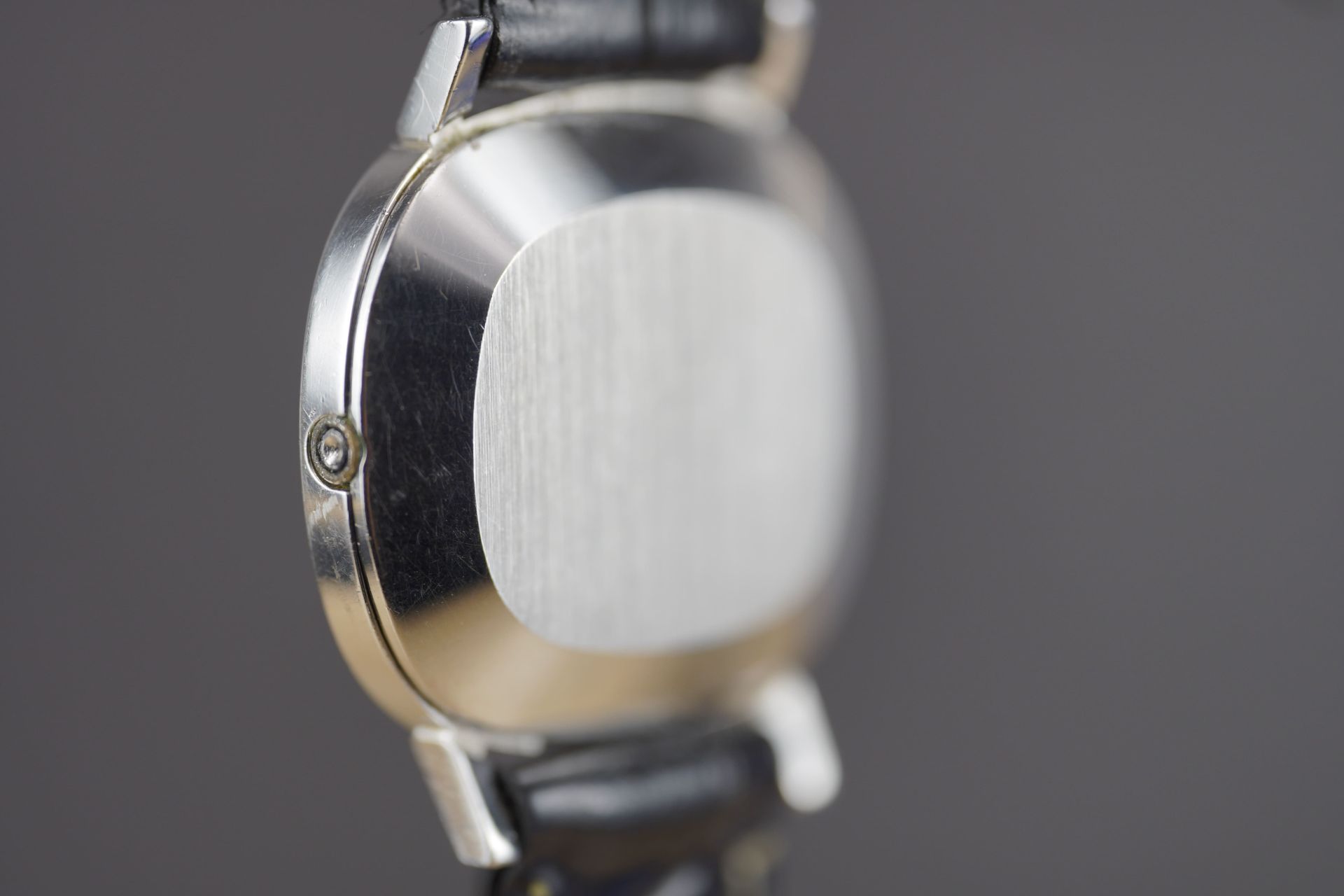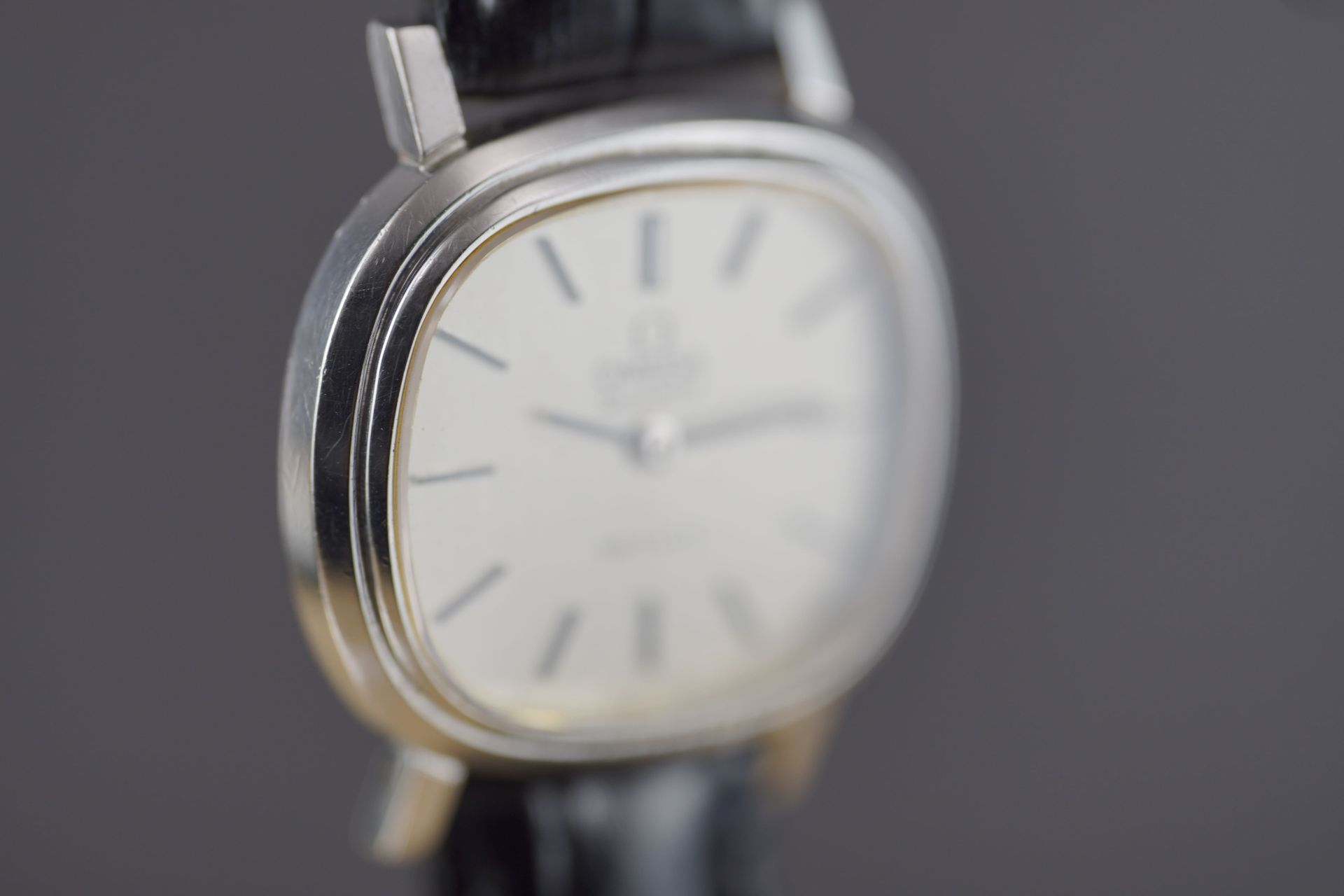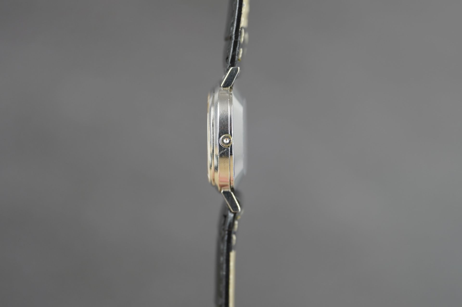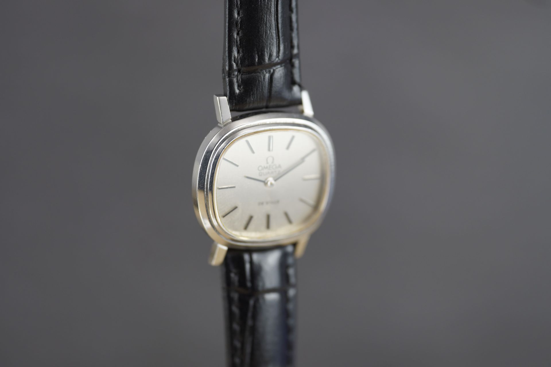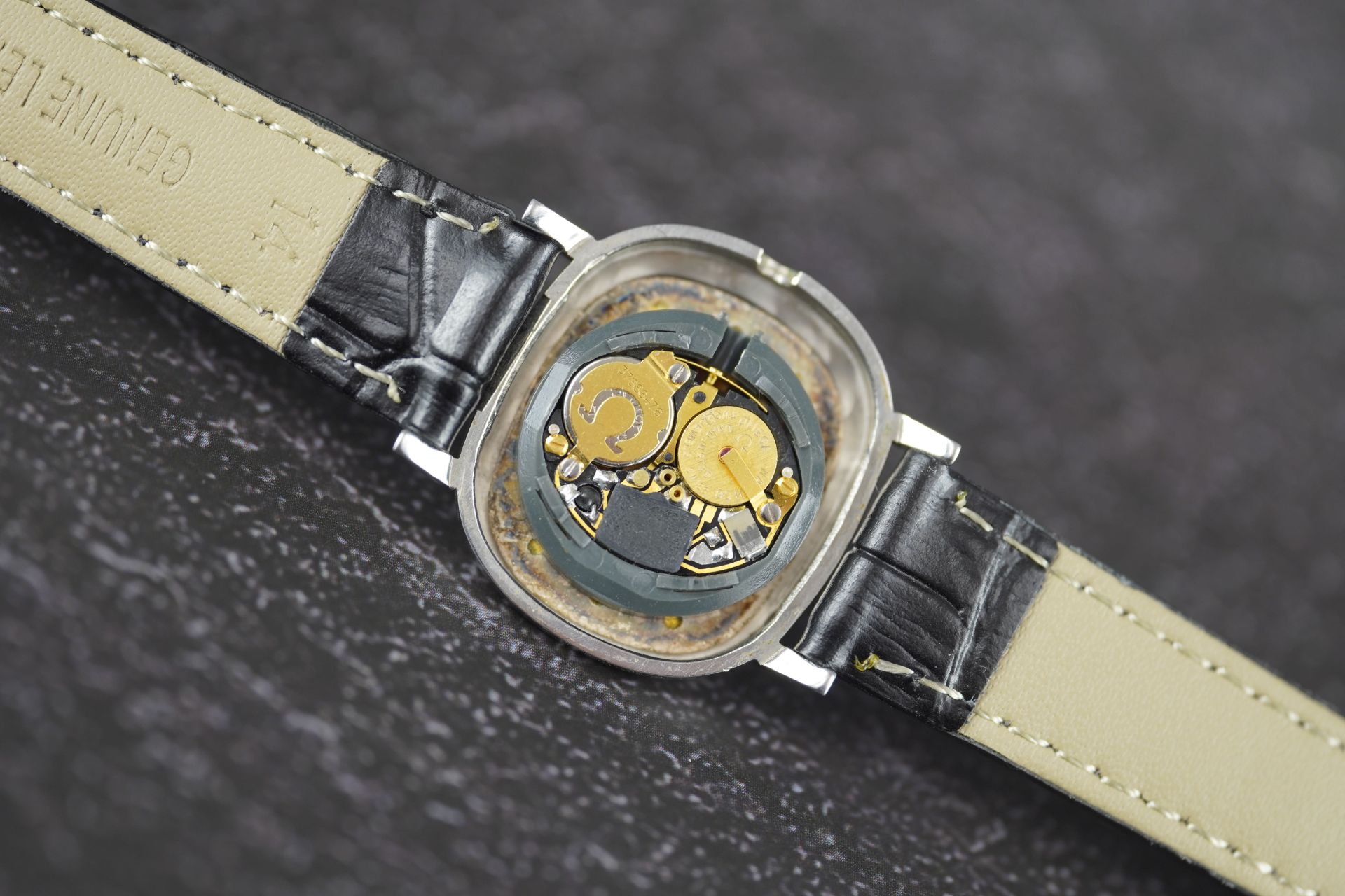Découvrez cette charmante Omega De Ville, référence commerciale 591.0020, une pièce emblématique de 1973. Ce modèle femme combine l’élégance intemporelle d’un boîtier en acier de 26.3mm de diamètre et 7.1mm d’épaisseur avec la précision d’un mouvement à quartz fiable. Le bracelet en cuir noir, bien que non original, s’harmonise parfaitement avec la boucle ardillon non originale. L’état général de la montre est bon. Une garantie de 12 mois accompagne cette montre.