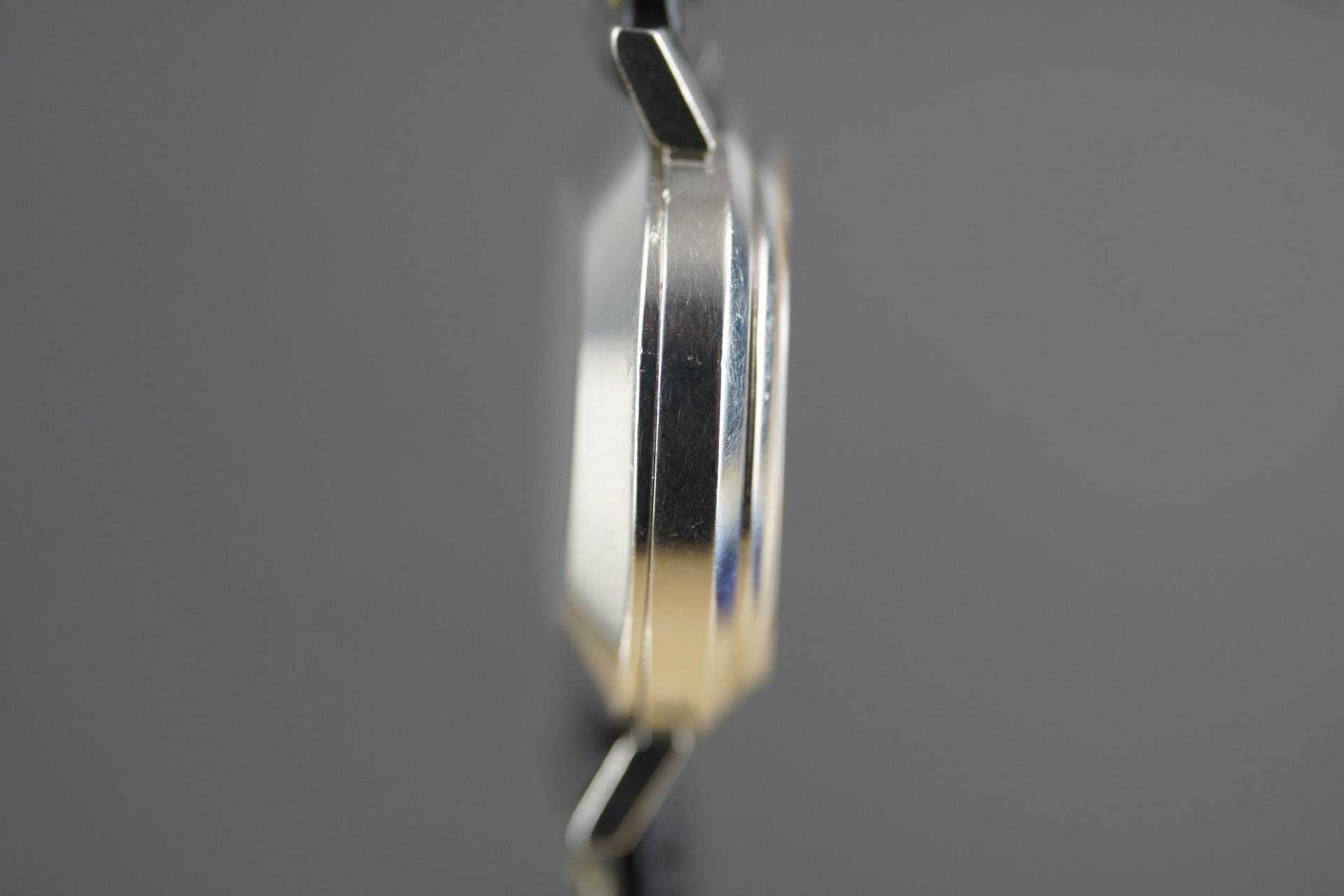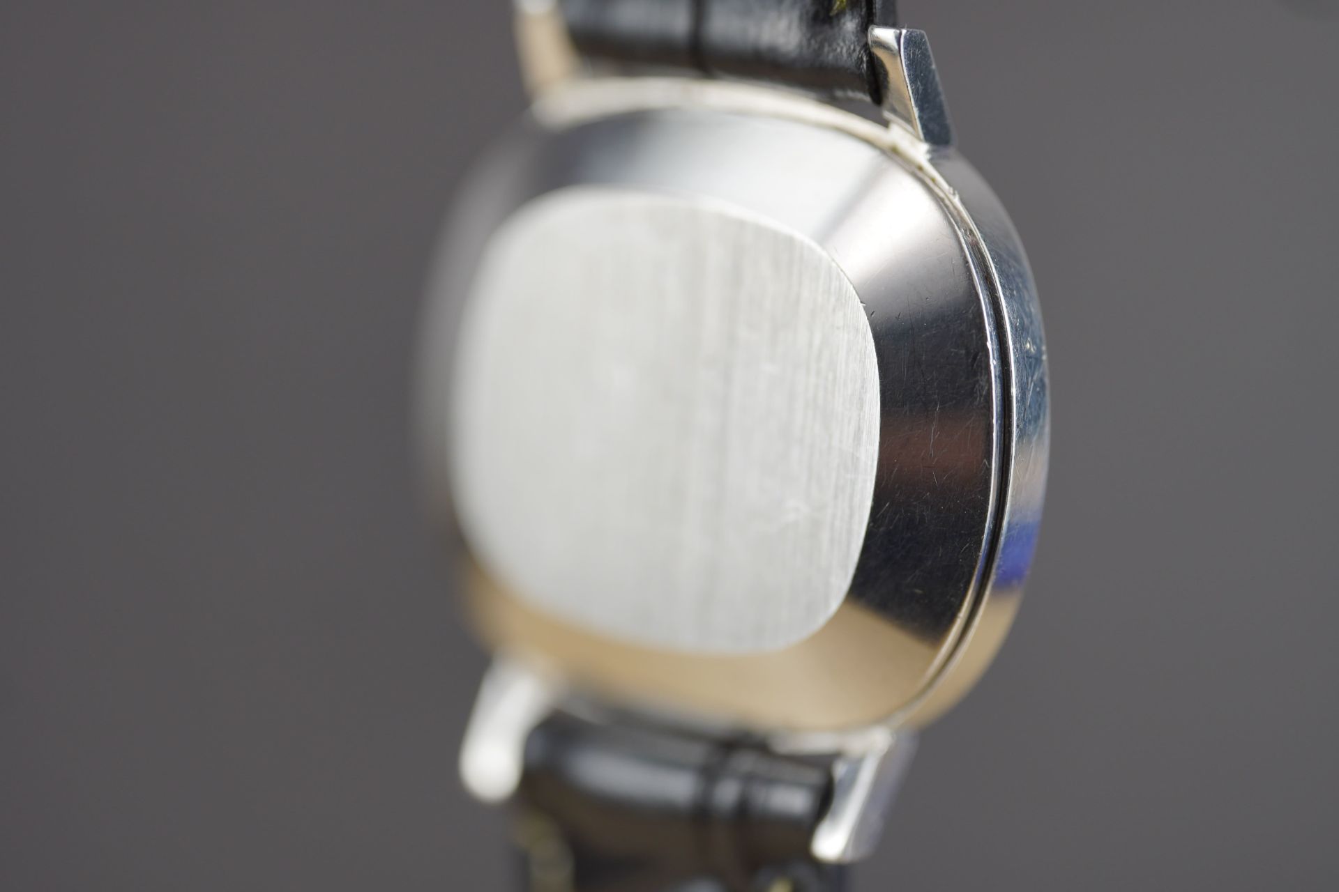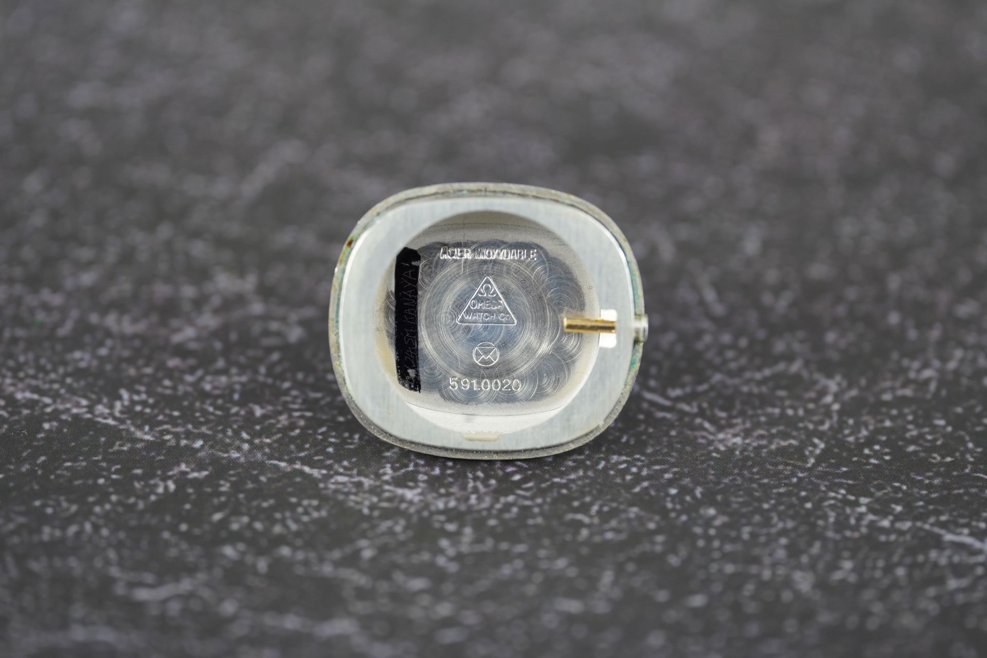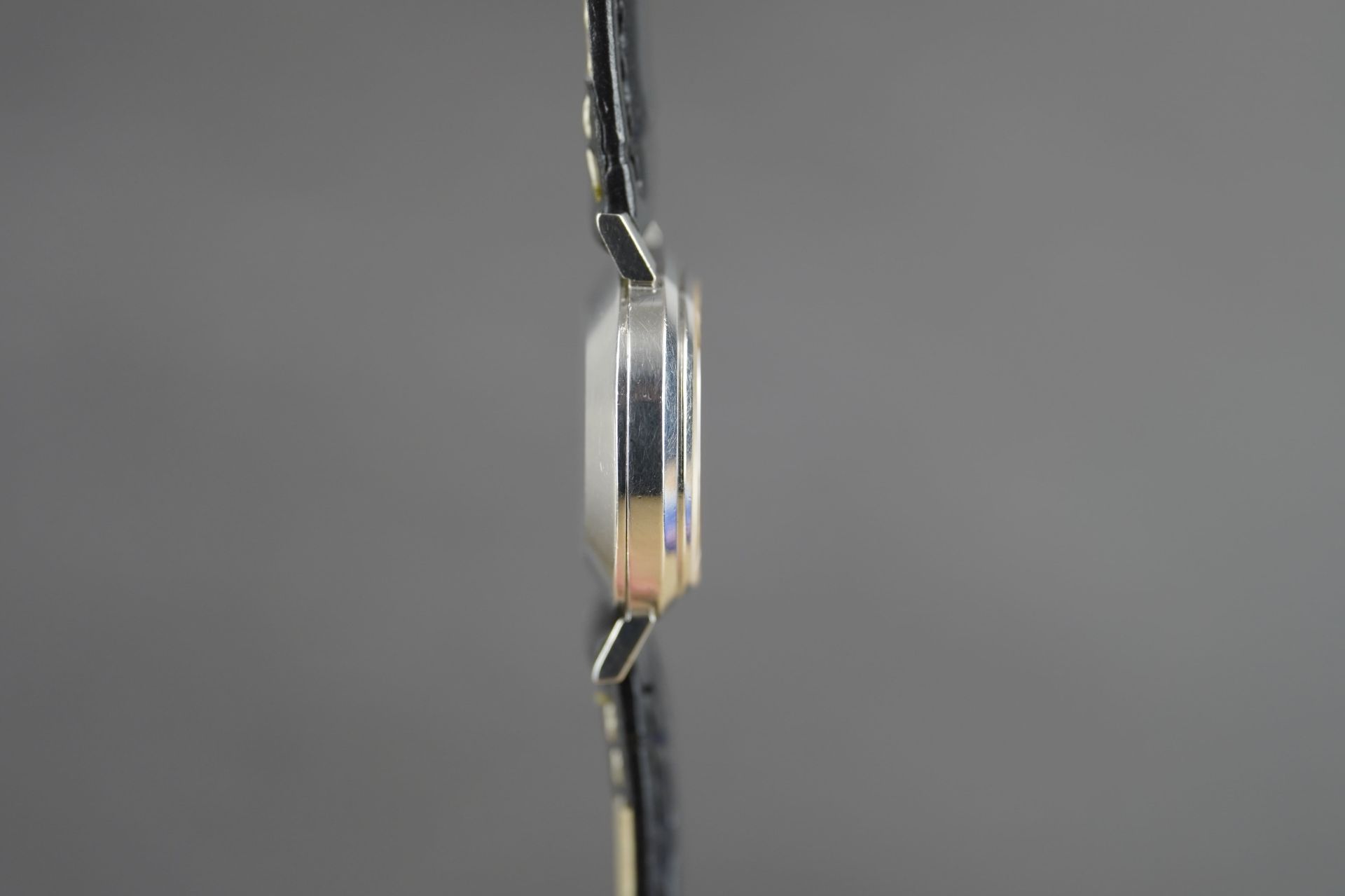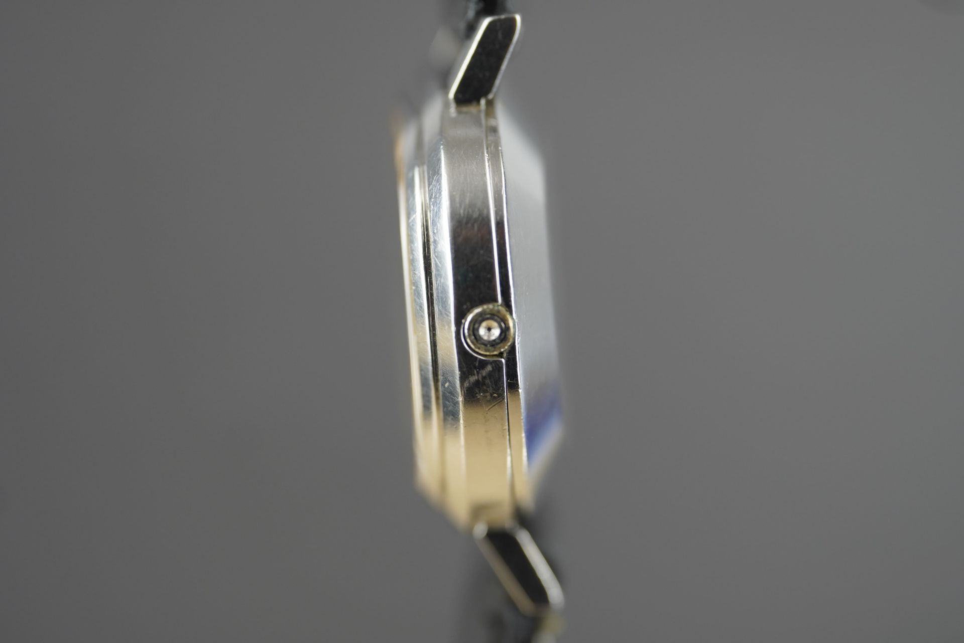 Découvrez cette charmante Omega De Ville, référence commerciale 591.0020, une pièce emblématique de 1973. Ce modèle femme combine l’élégance intemporelle d’un boîtier en acier de 26.3mm de diamètre et 7.1mm d’épaisseur avec la précision d’un mouvement à quartz fiable. Le bracelet en cuir noir, bien que non original, s’harmonise parfaitement avec la boucle ardillon non originale. L’état général de la montre est bon. Une garantie de 12 mois accompagne cette montre.