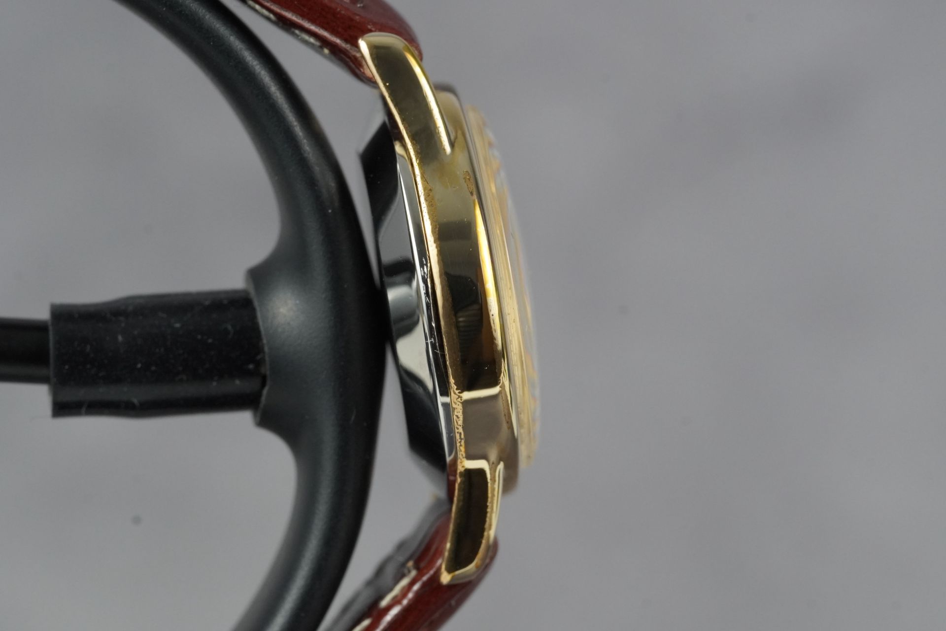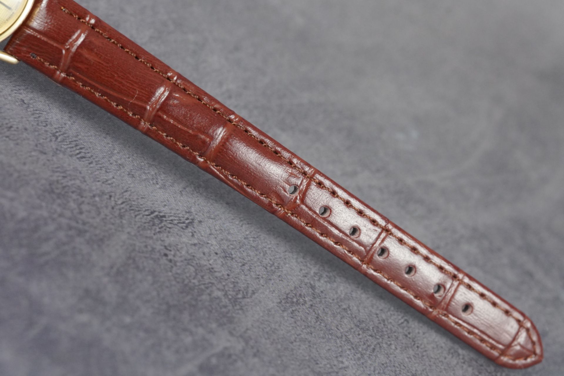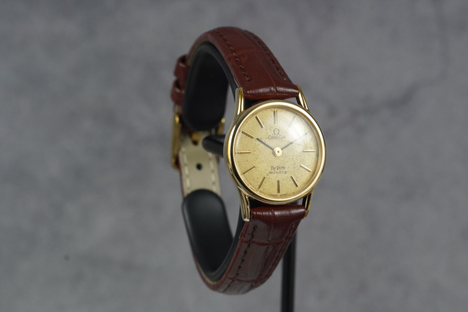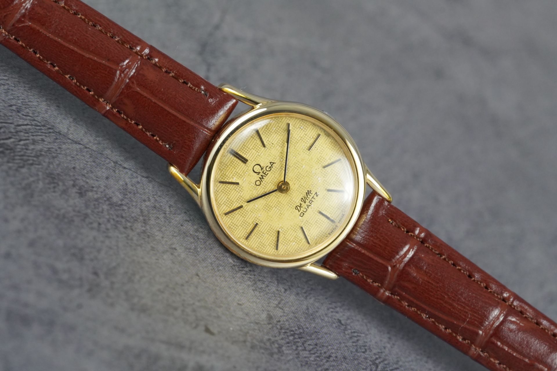 Découvrez l’élégance intemporelle avec cette montre Omega De Ville pour femme, référence commerciale 591.0082. Datant de 1980 et en très bon état, elle incarne le charme discret de l’horlogerie classique. Son boîtier plaqué or de 23.4mm de diamètre et 8mm d’épaisseur abrite un mouvement à Quartz précis. Le cadran est sublimé par un bracelet en cuir brun non-original, sécurisé par une boucle ardillon, également non-originale. Cette pièce historique est livrée seule. Une garantie de 12 mois accompagne cette montre.