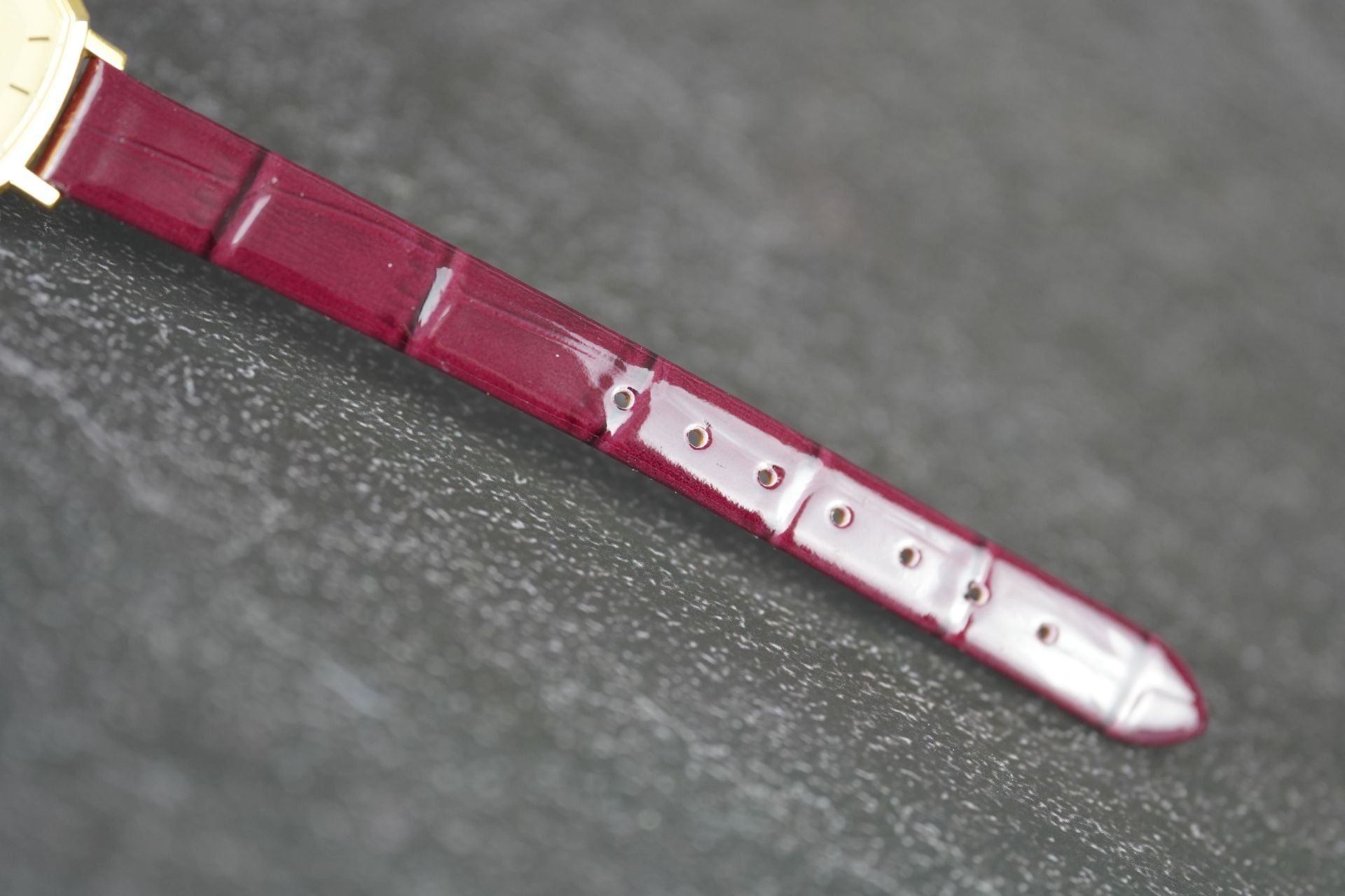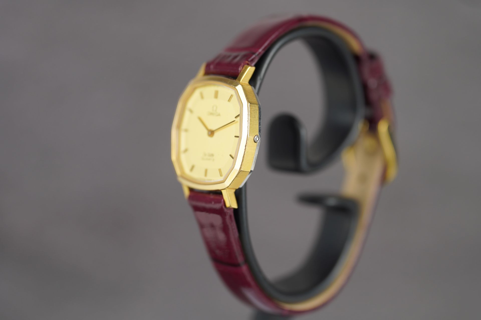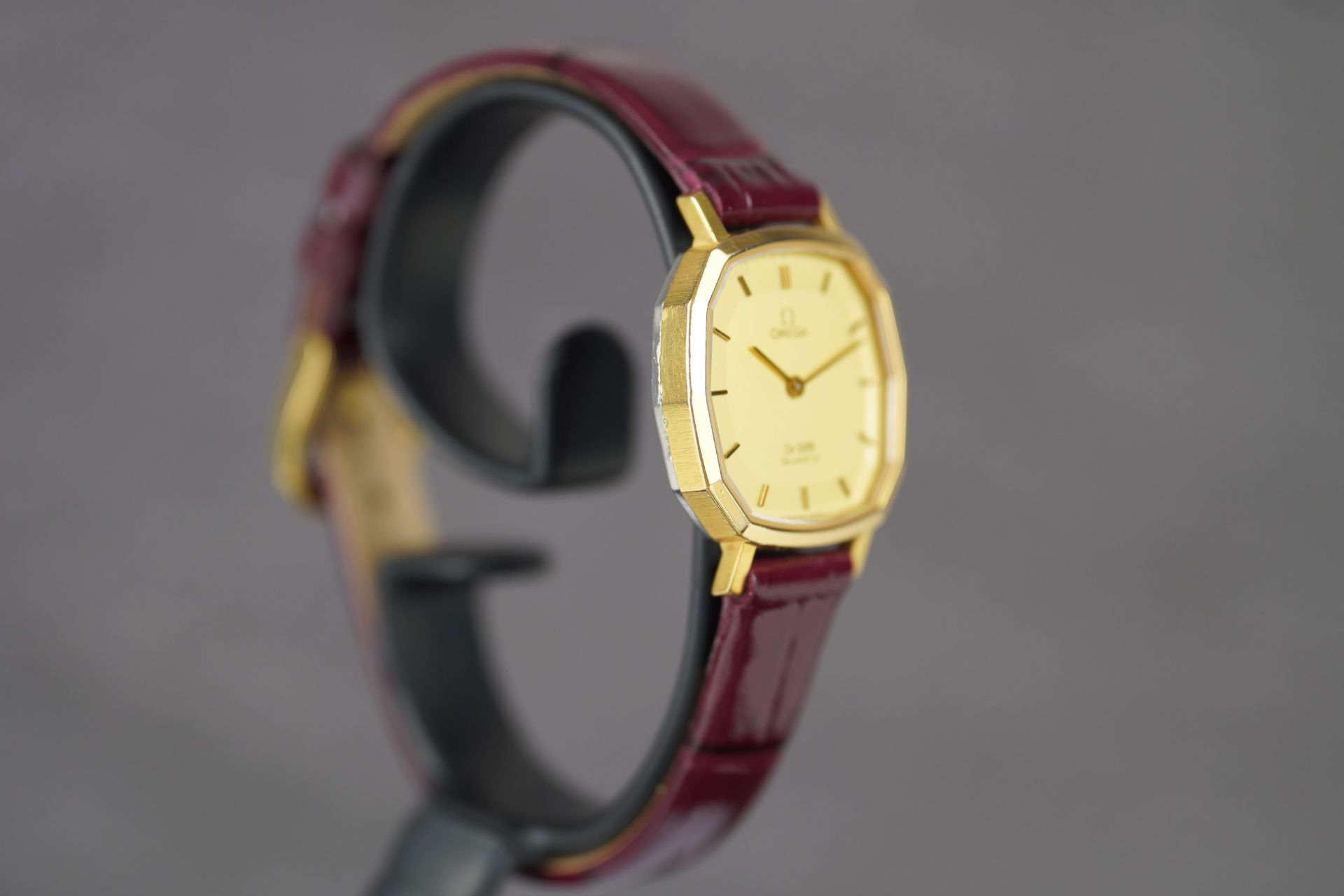 Sublimez votre poignet avec cette montre Omega De Ville pour femme, une pièce intemporelle de référence 5910103. Datant de 1980, cette élégante montre est animée par un mouvement Quartz fiable. Son boîtier plaqué or de 23.8mm de diamètre et 5.1mm d’épaisseur offre un profil délicat et sophistiqué. Le cadran est complété par un bracelet en cuir bordeaux non-original et une boucle ardillon non-originale, ajoutant une touche de couleur et de personnalité. Cette pièce, en bon état, est livrée seule et bénéficie d’une garantie d’un an, vous assurant tranquillité d’esprit.