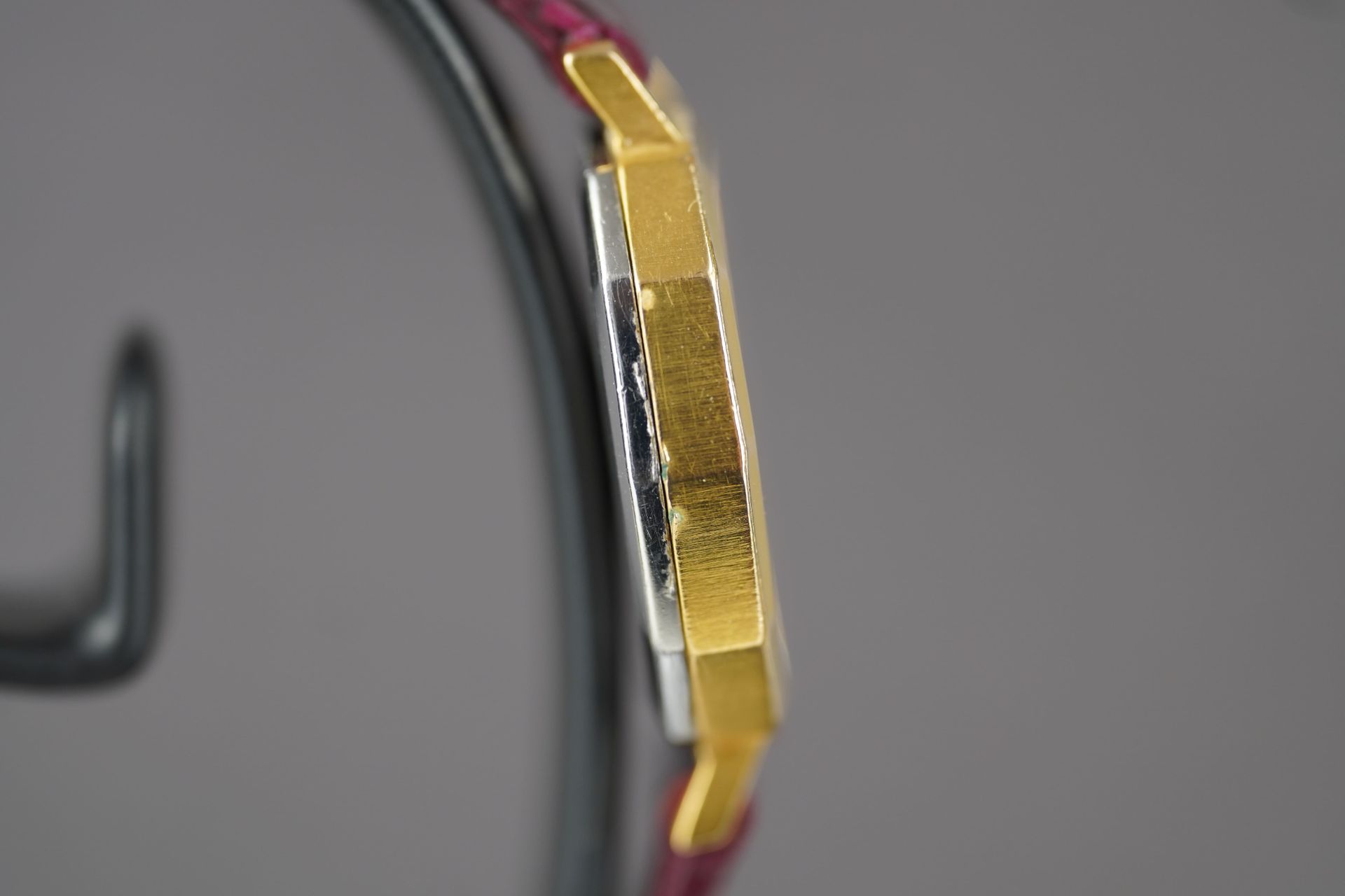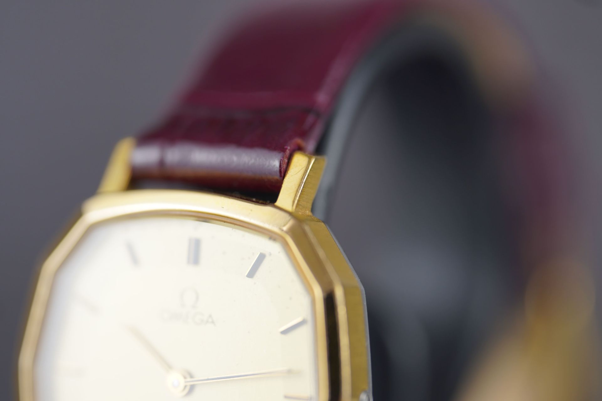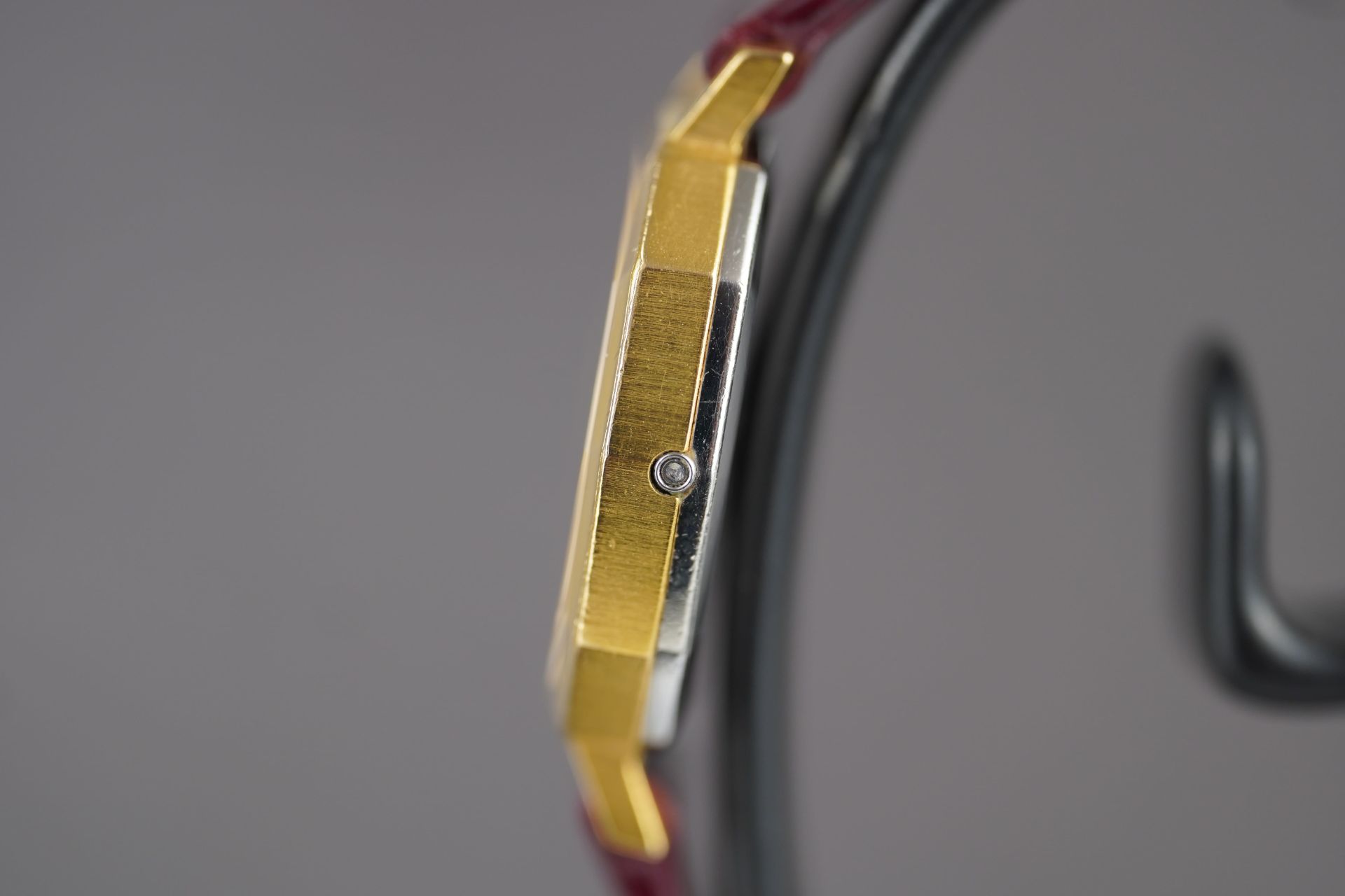Sublimez votre poignet avec cette montre Omega De Ville pour femme, une pièce intemporelle de référence 5910103. Datant de 1980, cette élégante montre est animée par un mouvement Quartz fiable. Son boîtier plaqué or de 23.8mm de diamètre et 5.1mm d’épaisseur offre un profil délicat et sophistiqué. Le cadran est complété par un bracelet en cuir bordeaux non-original et une boucle ardillon non-originale, ajoutant une touche de couleur et de personnalité. Cette pièce, en bon état, est livrée seule et bénéficie d’une garantie d’un an, vous assurant tranquillité d’esprit.