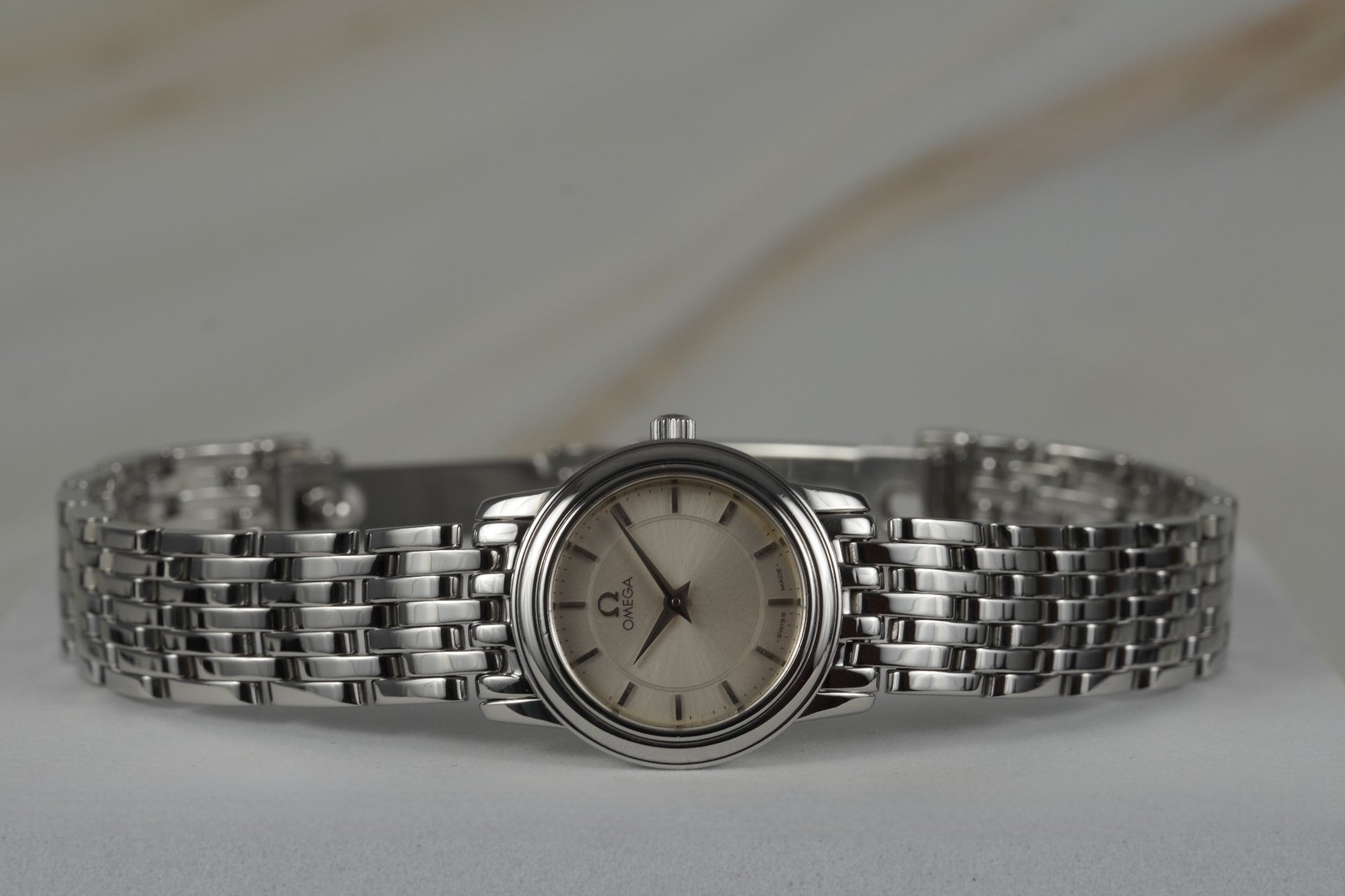 Découvrez l’élégance intemporelle avec cette montre Omega De Ville Prestige (Réf. 4570.31) pour femme, une pièce raffinée de 1994. Son boîtier en acier de 22mm de diamètre et 5.7mm d’épaisseur abrite un mouvement à Quartz précis. Le bracelet et la boucle déployante, tous deux en acier d’origine, s’harmonisent parfaitement pour un look distingué. Cette montre, présentée en très bon état, est une véritable icône de discrétion et de sophistication. Elle est idéale pour la femme moderne en quête d’un accessoire classique et fiable. Ce modèle, livré seul, bénéficie d’une garantie de 12 mois.