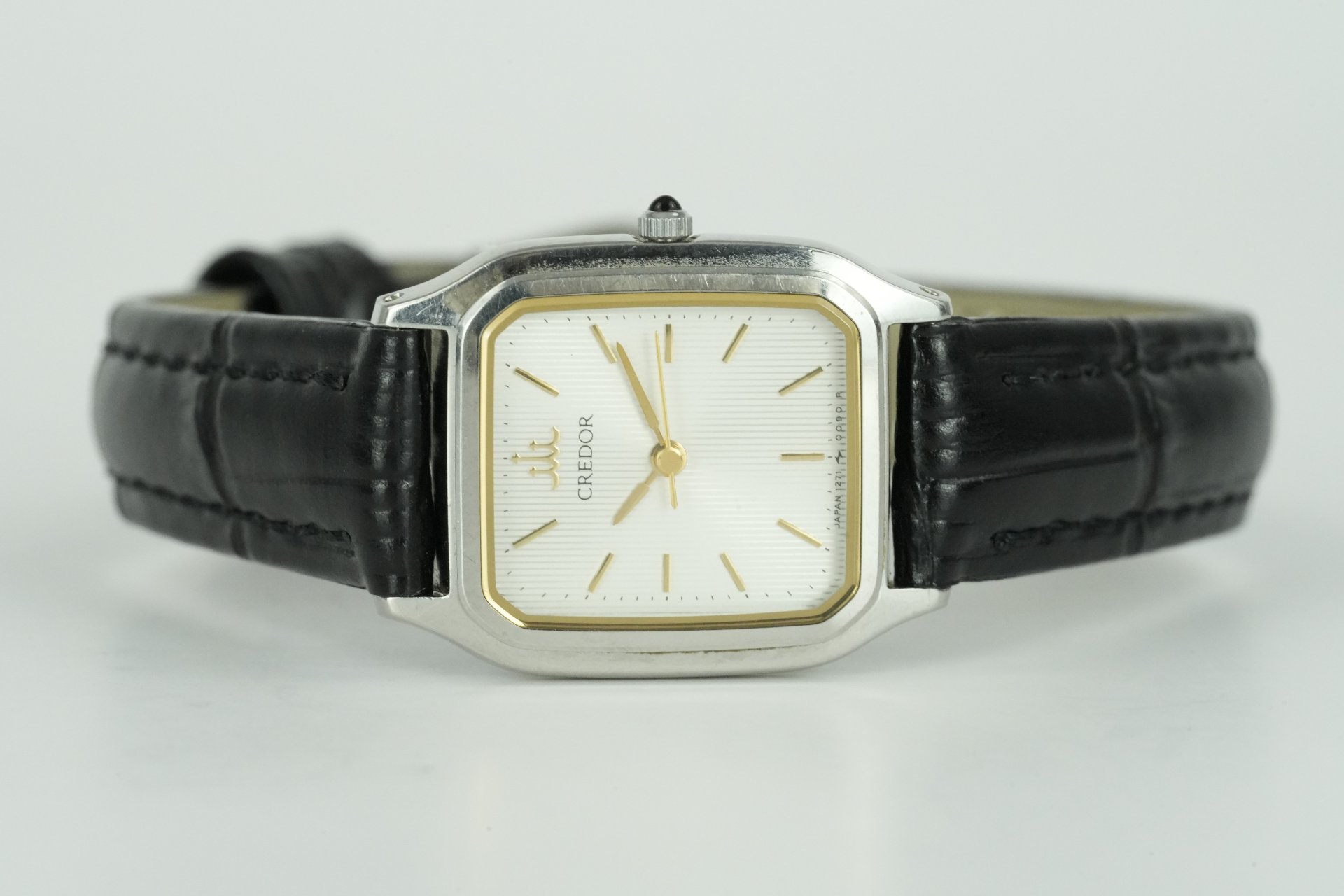Découvrez l’élégance intemporelle de cette montre Seiko Credor « Tonneau » (Réf. 1271-5020, TOT-10215). Conçue pour la femme exigeante, elle arbore un boîtier tonneau en acier de 20.5mm de diamètre et une finesse remarquable de 4.8mm. Son mouvement à Quartz assure une précision fiable. Le bracelet en cuir noir non-original, agrémenté d’une boucle ardillon également non-originale, offre un contraste délicat. Cette pièce, livrée seule, est en bon état et bénéficie d’une garantie de 12 mois.