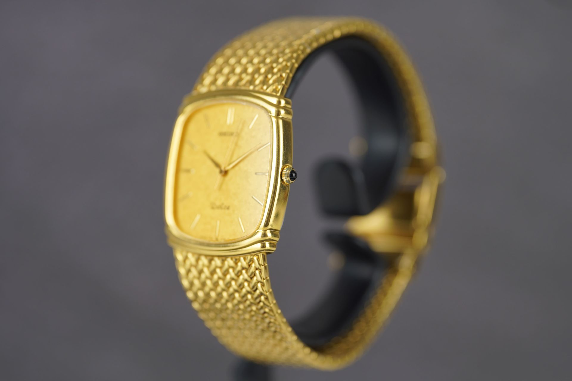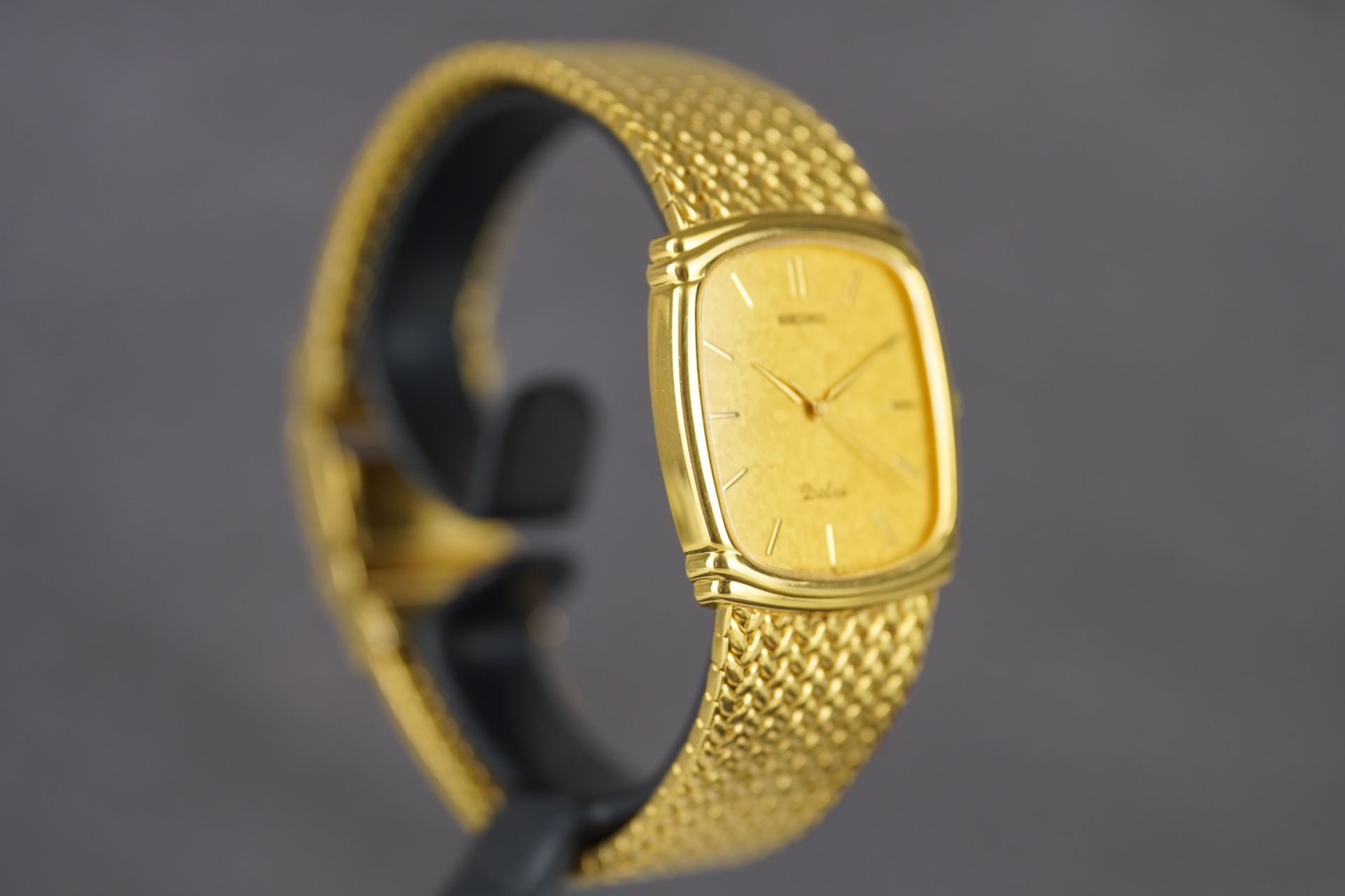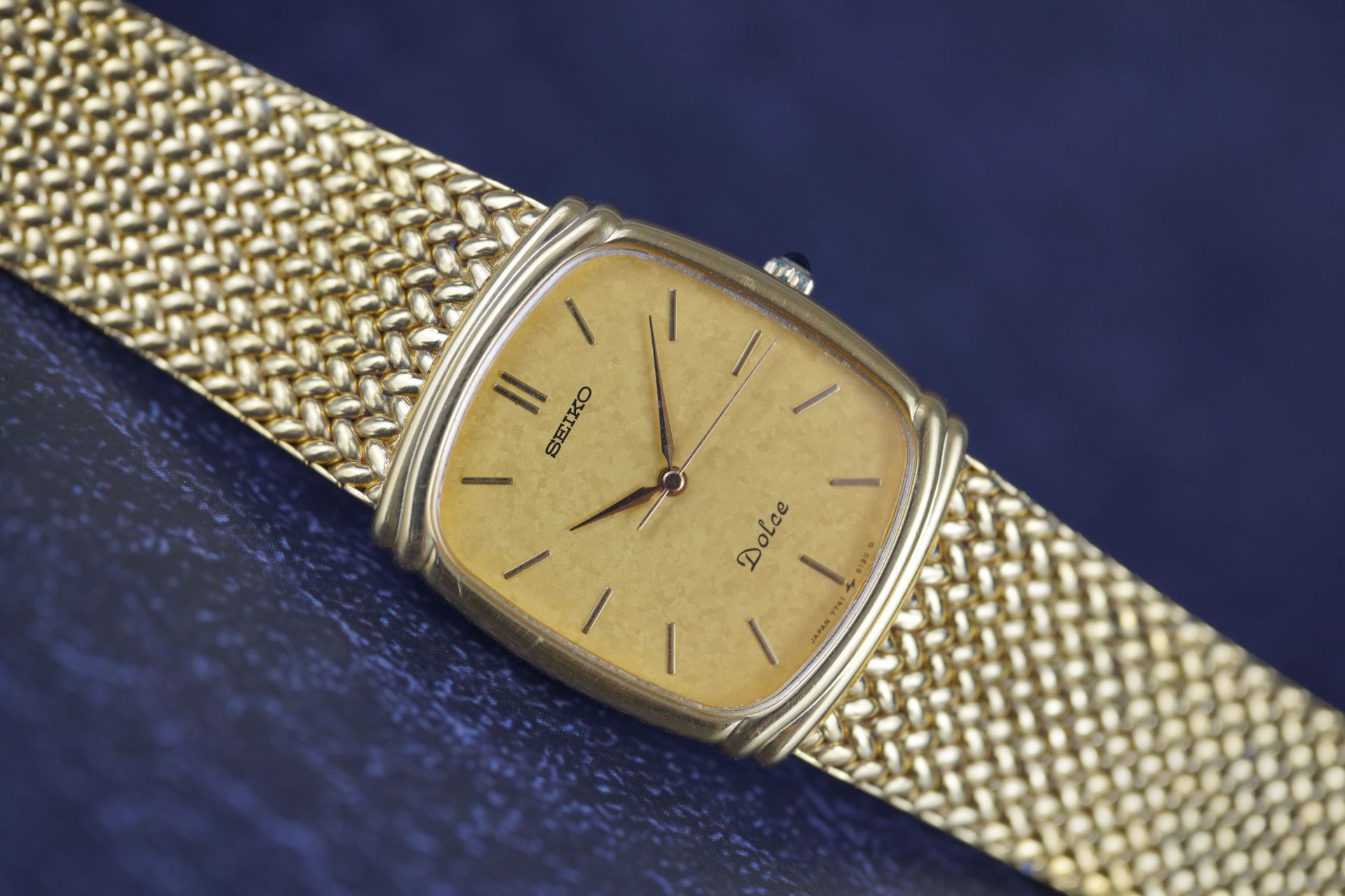 Explorez l’élégance intemporelle de cette montre Seiko Dolce pour femme, référence commerciale 7741-5110. Son boîtier en acier de 26.3mm de diamètre et 4.7mm d’épaisseur abrite un mouvement Quartz précis, pour une finesse remarquable au poignet. Le bracelet en acier, original à la montre, s’harmonise parfaitement avec sa boucle également d’origine, un fermoir bijoux qui ajoute une touche de raffinement. Datant de 1991, cette pièce en bon état est livrée seule et bénéficie d’une garantie de 12 mois.